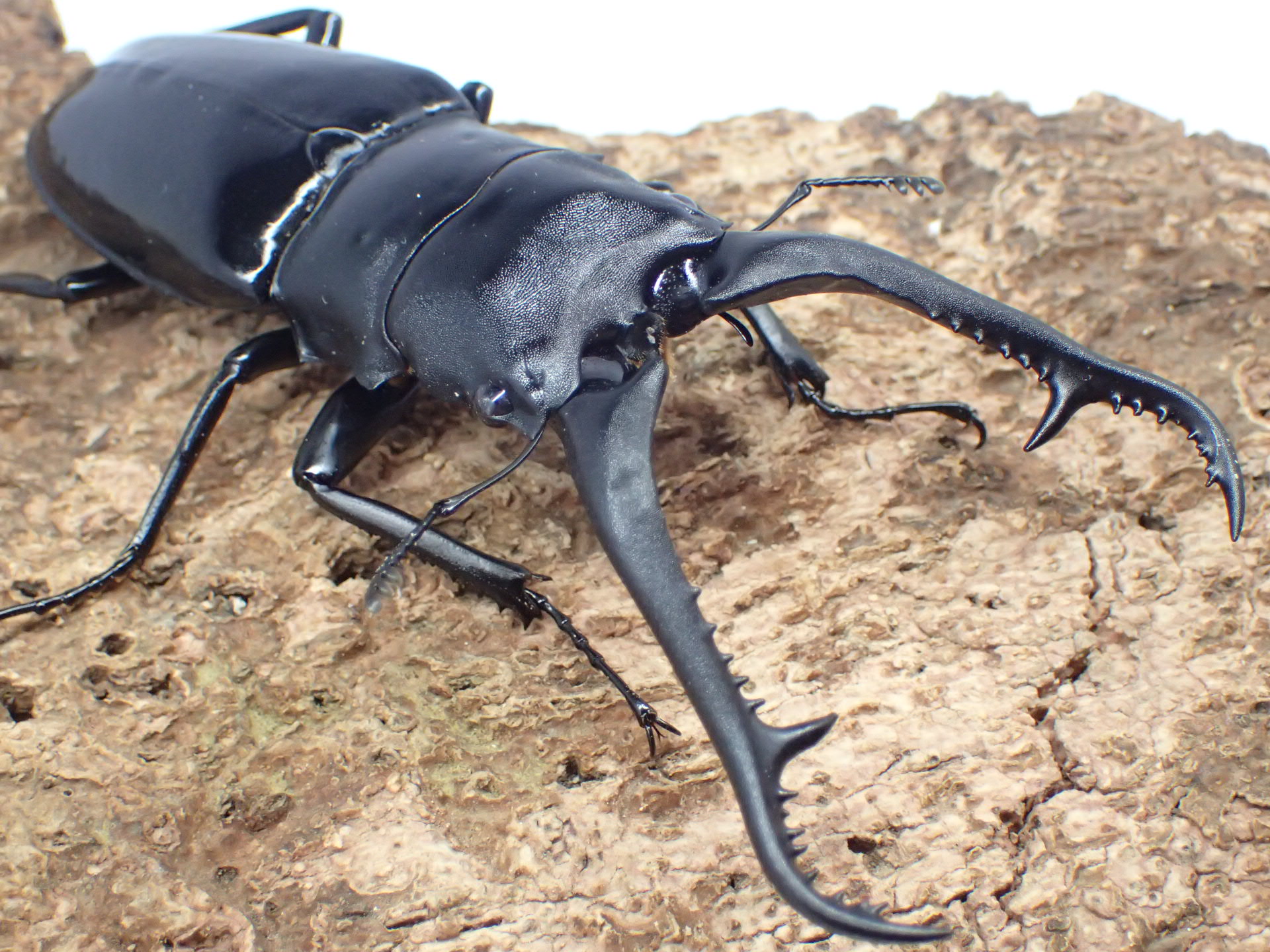 ギラファ(giraffa)とは「キリン(giraffe)」に由来し、長い大アゴが特徴的で、世界最大のクワガタとして知られる人気のノコギリクワガタです。