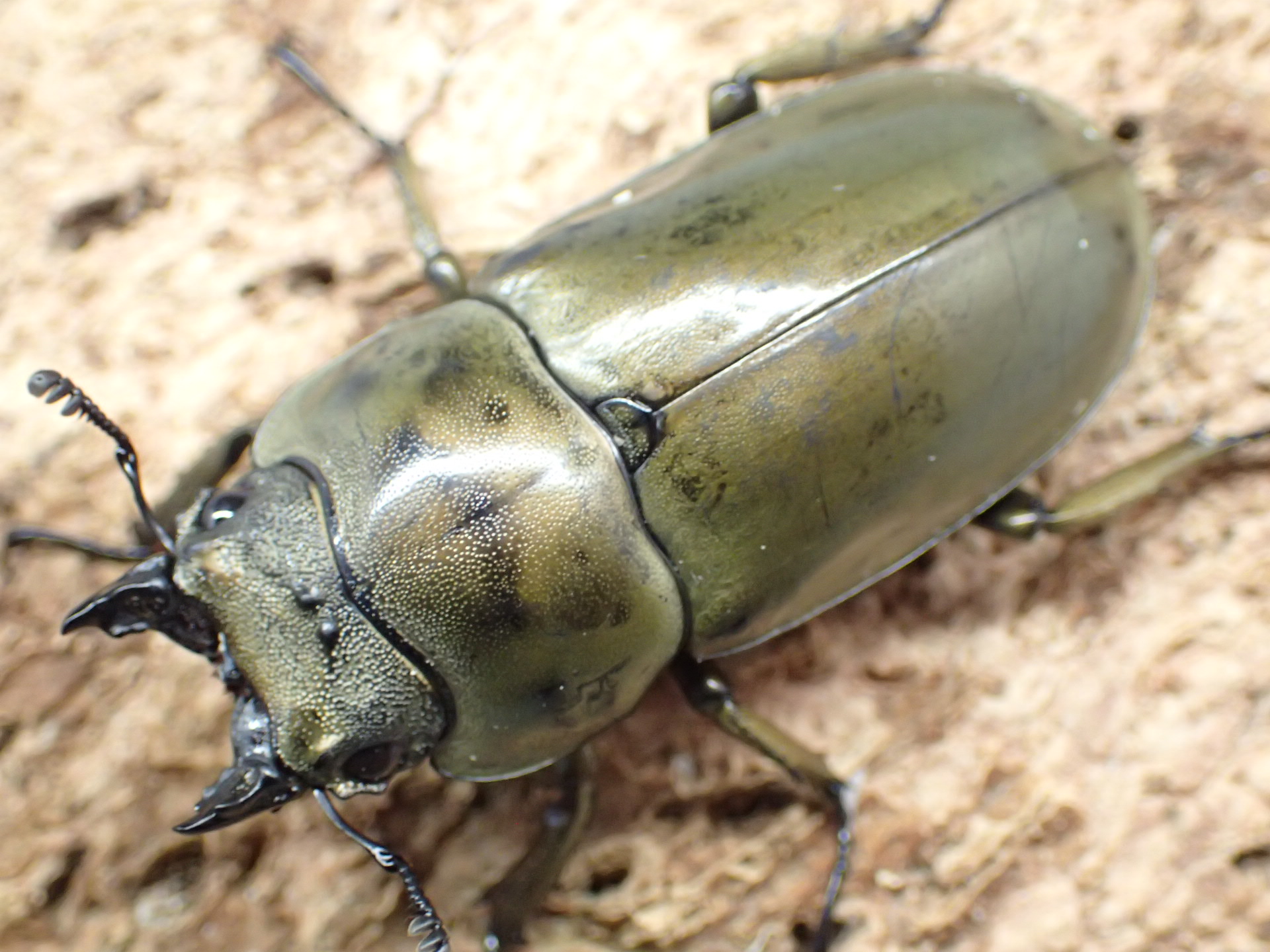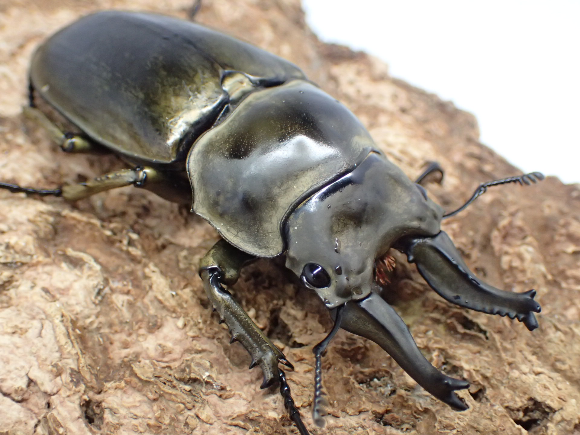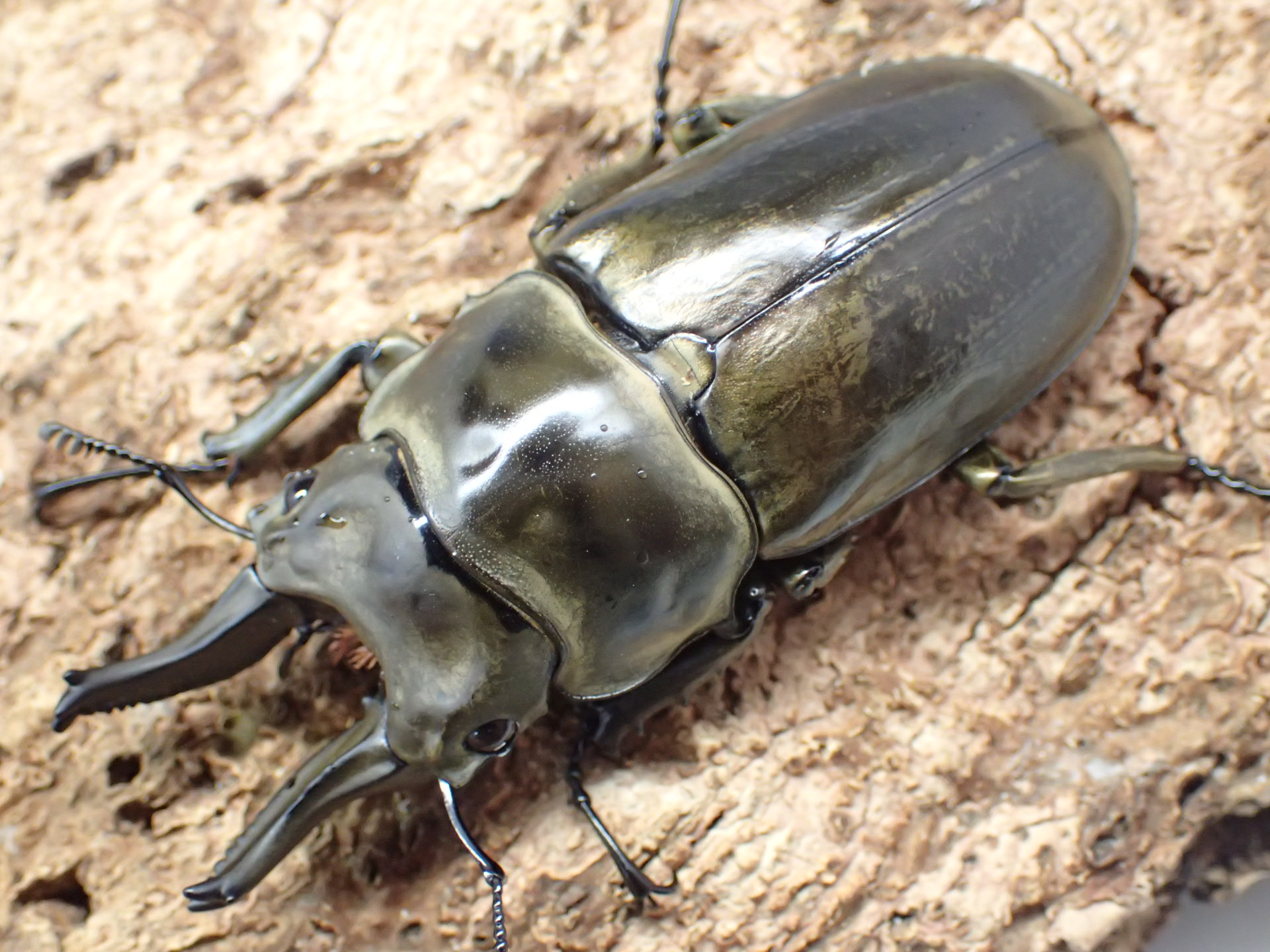 オウゴンオニクワガタの基準種で、名前の通り金色に輝く美しい姿をしています。
