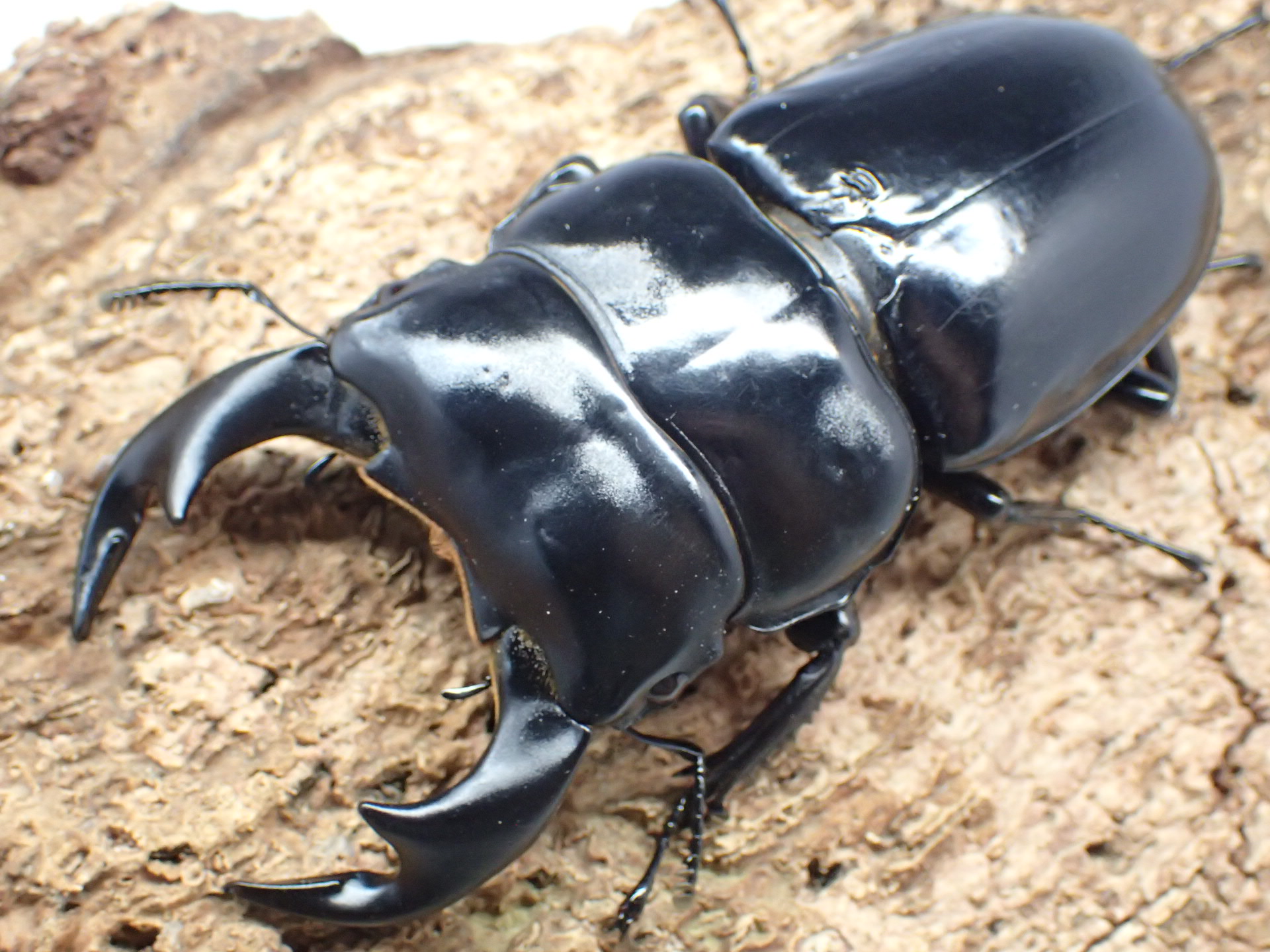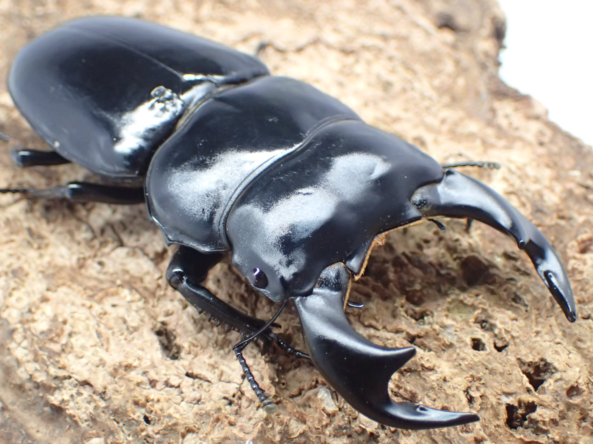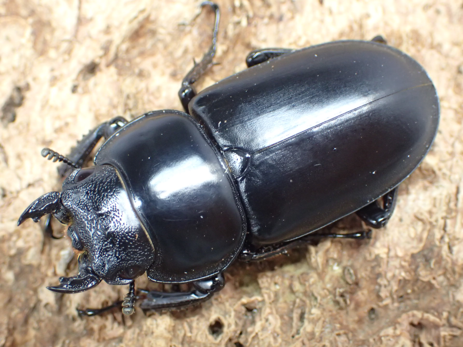 体が幅広く光沢があり、大アゴは太短く、「く」の字に屈曲します。