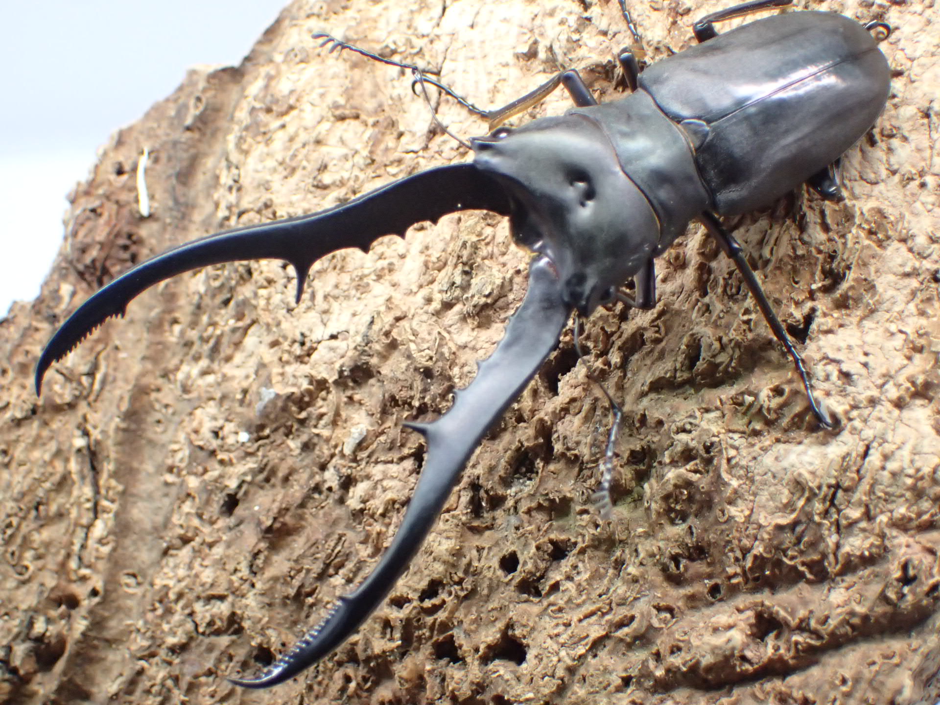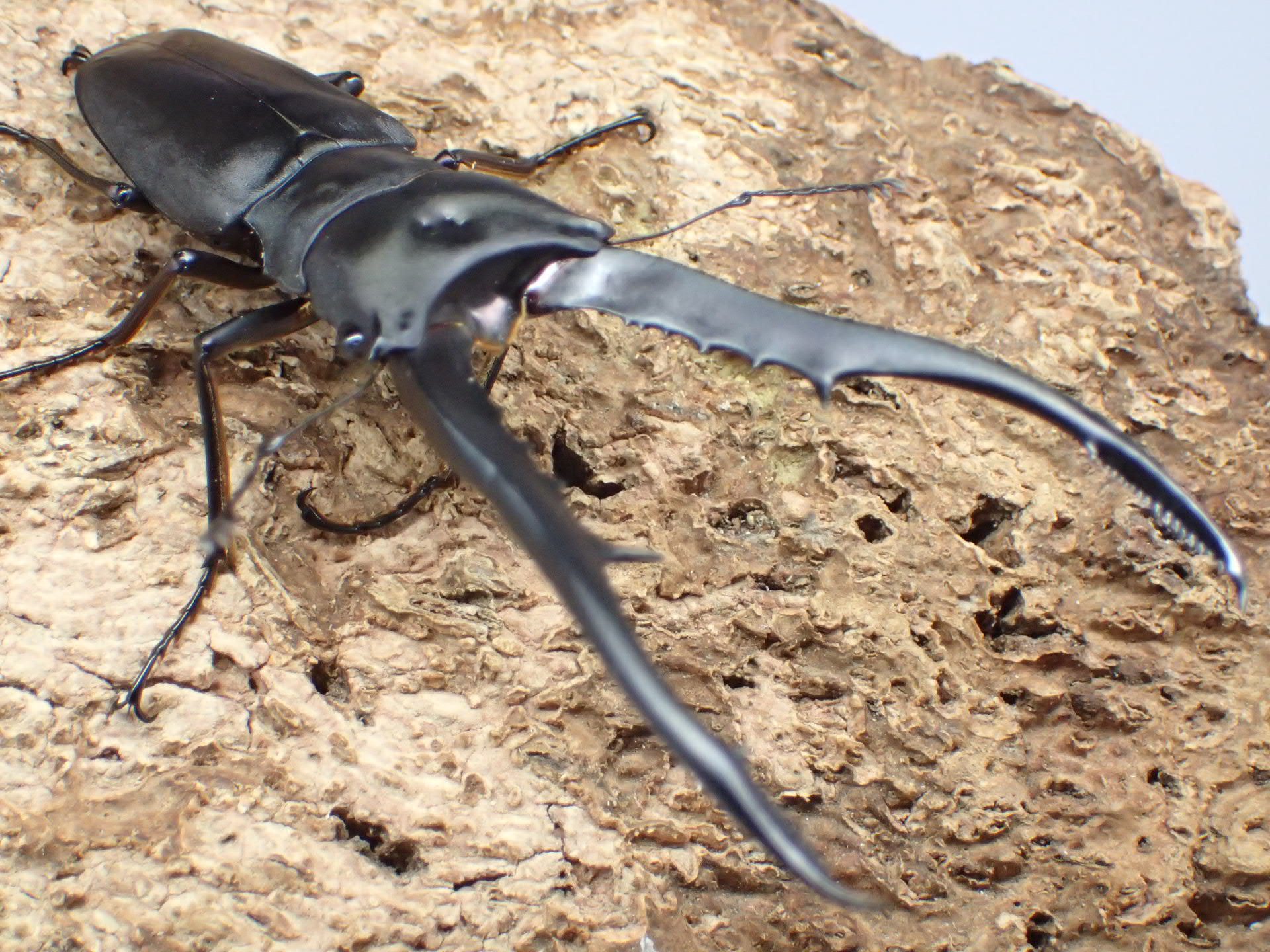 (大アゴが体より長くなる種類は世界のクワガタの中でもメタリフェルホソアカクワガタとコガシラクワガタの2種類のみと言われています。)