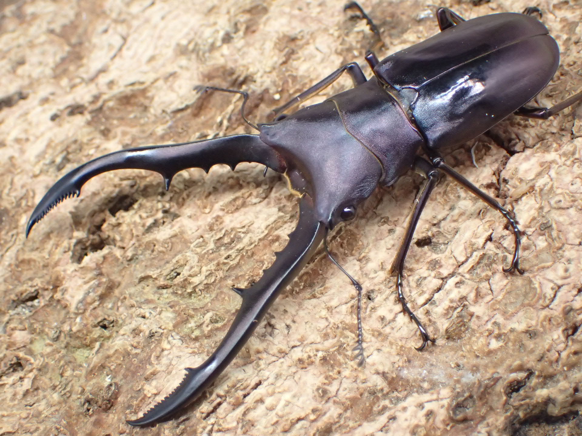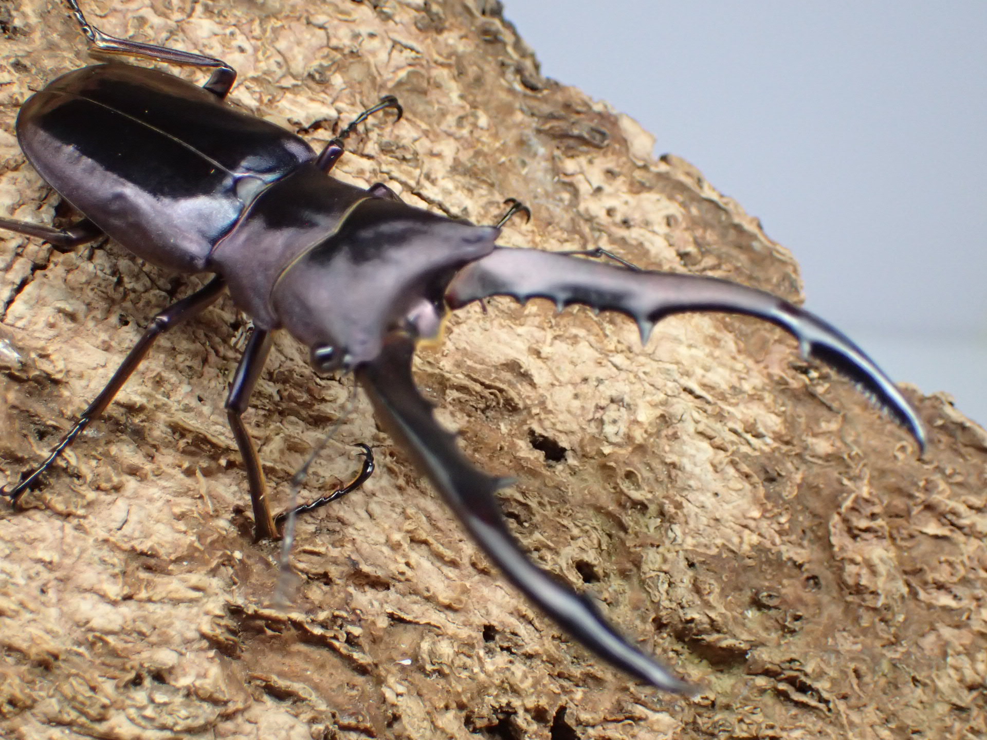 (大アゴが体より長くなる種類は世界のクワガタの中でもメタリフェルホソアカクワガタとコガシラクワガタの2種類のみと言われています。)