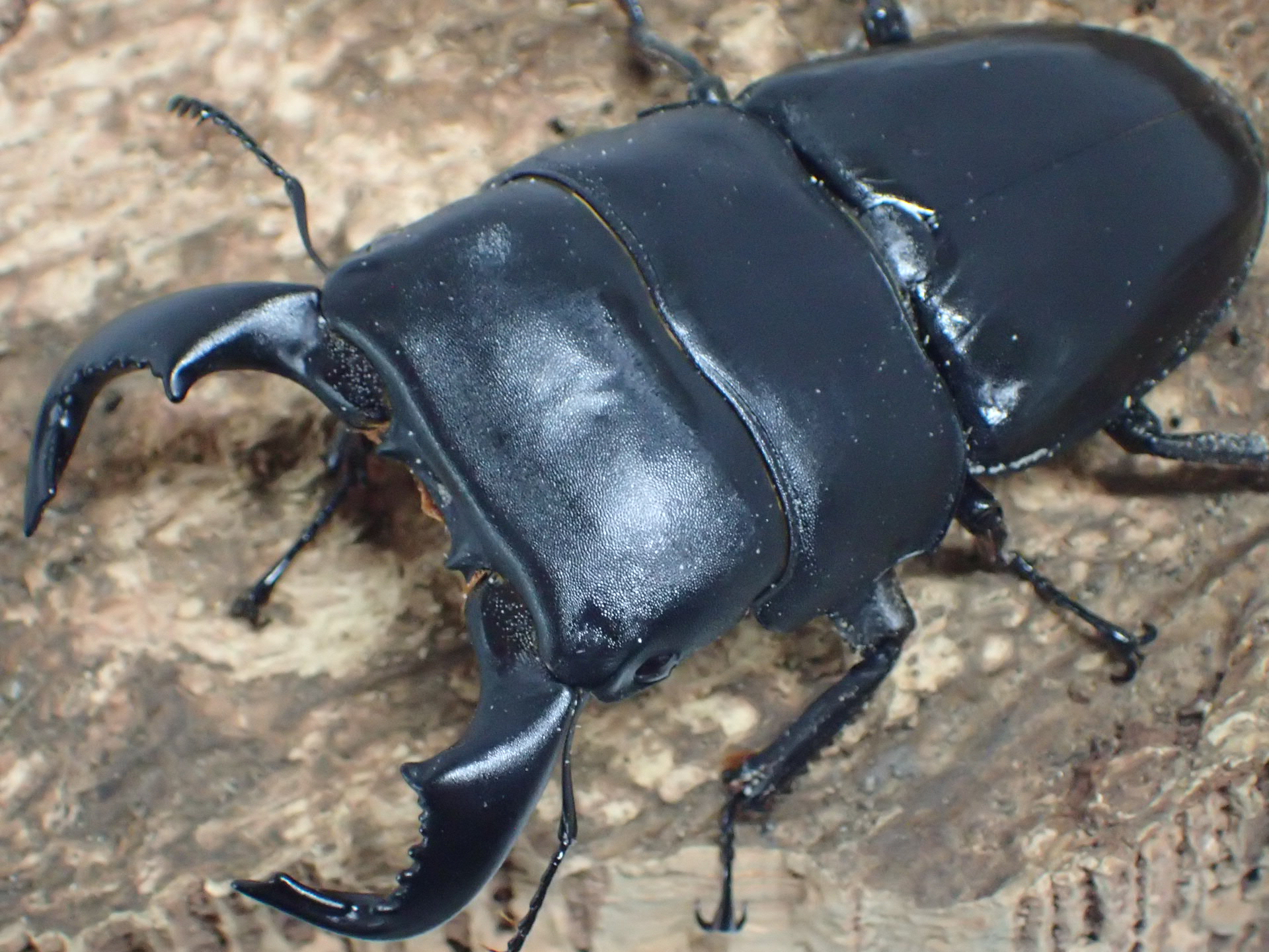 太いボディと、先端で強く湾曲した、たくましい大アゴが人気のクワガタです。