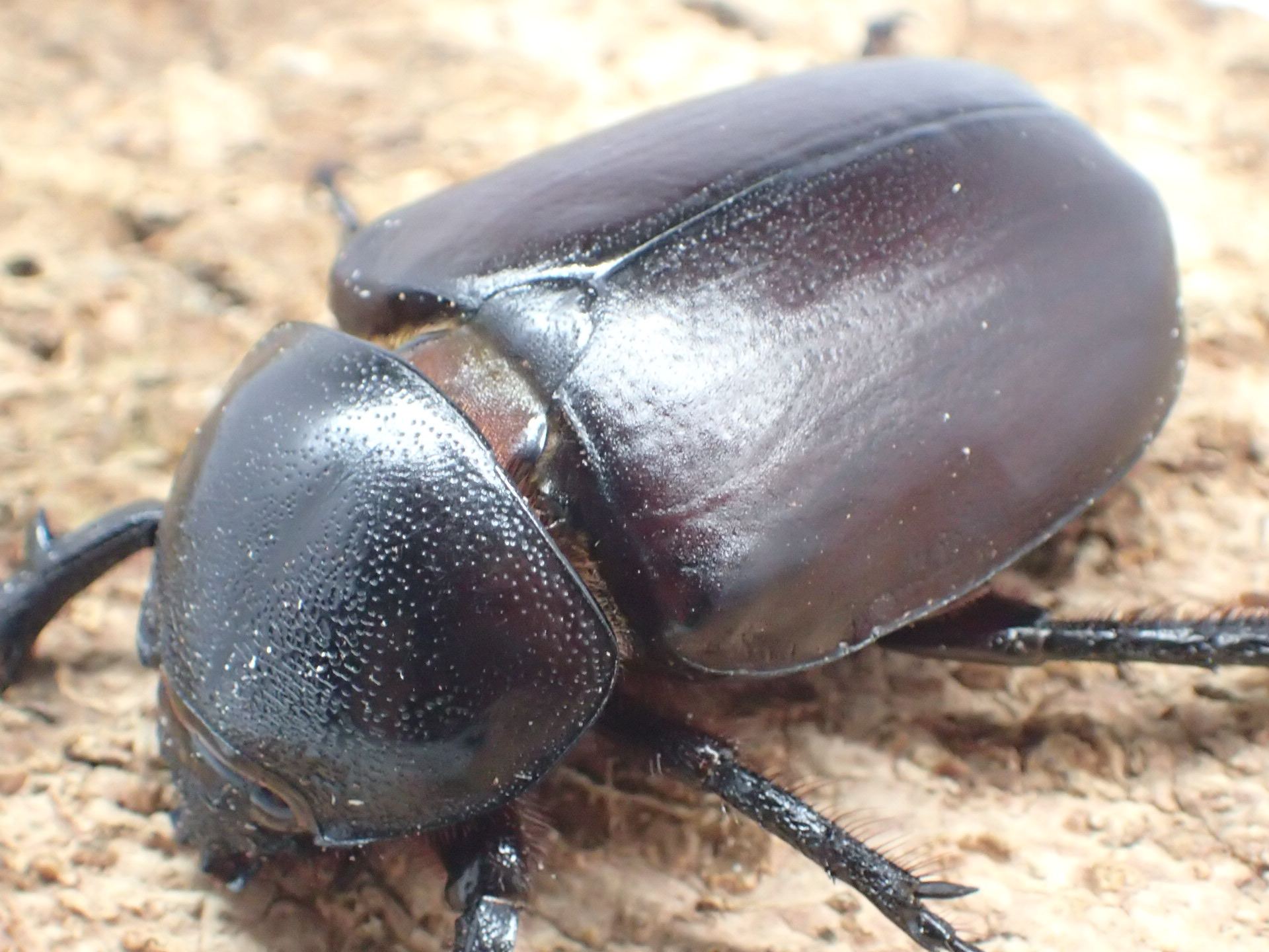 雌雄ともに上翅は濃いアズキ色で、鈍い光沢を持ちます。