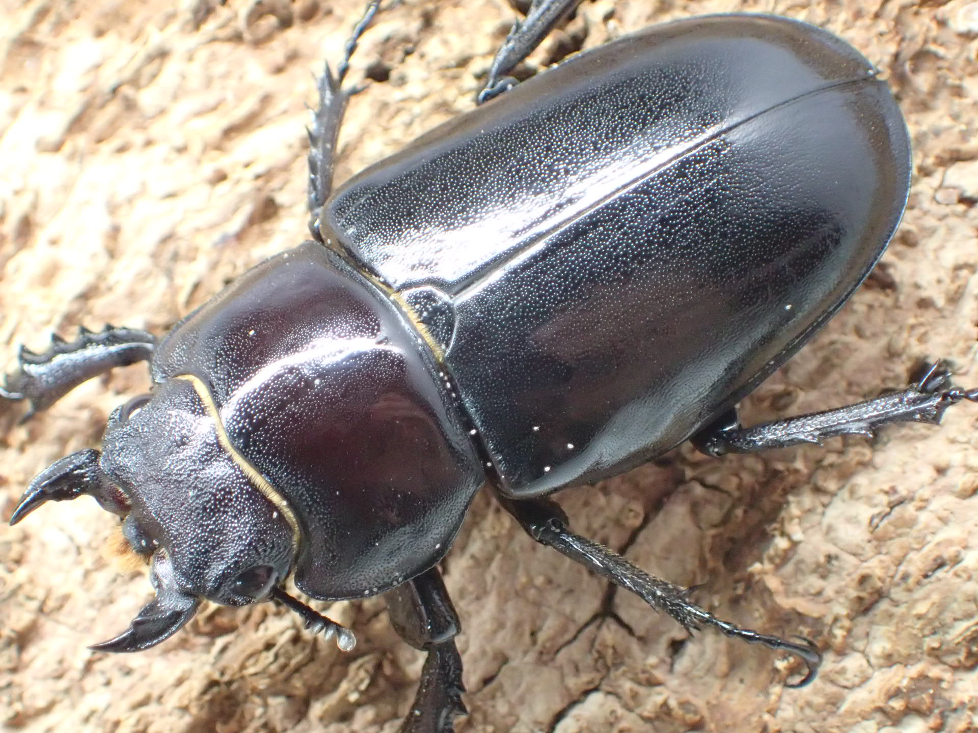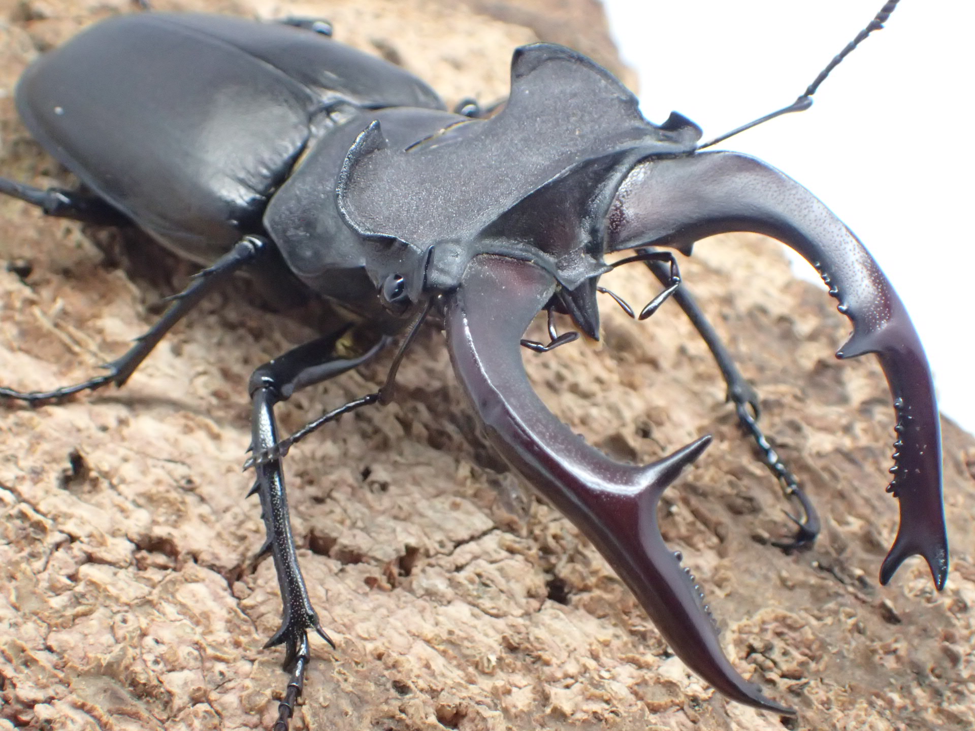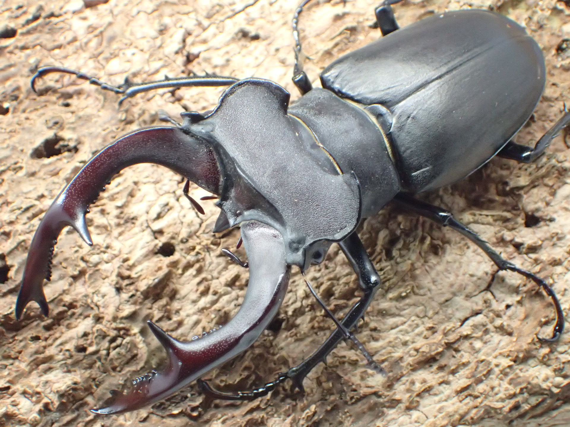 原名亜種(Lucanus cervus cervus)に比べ体がやや細長く、大アゴが前方に伸び先端のフタマタが狭く鋭角に別れます。