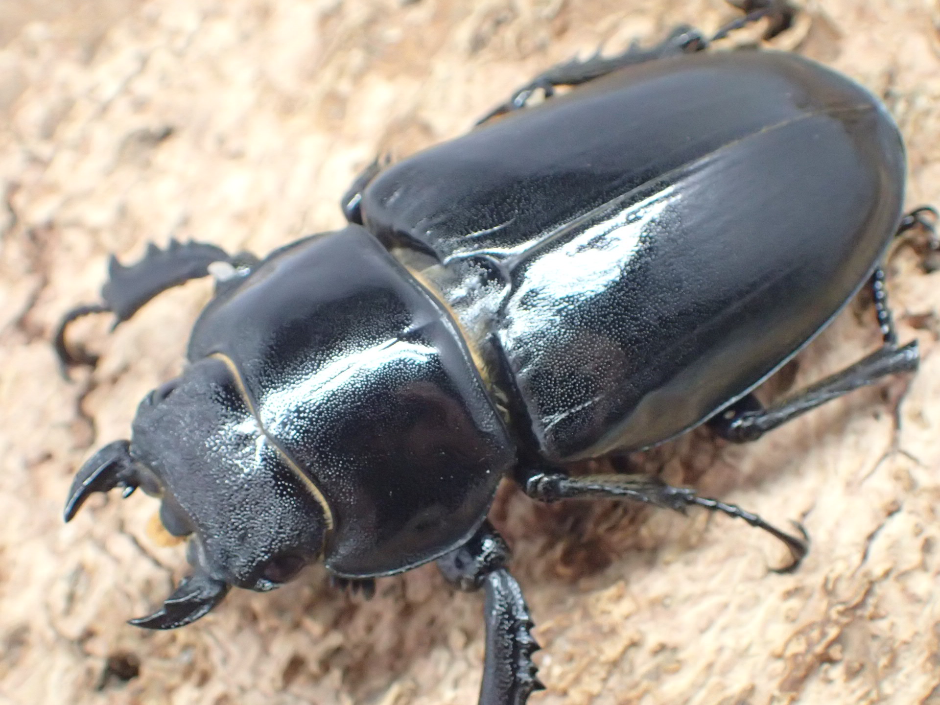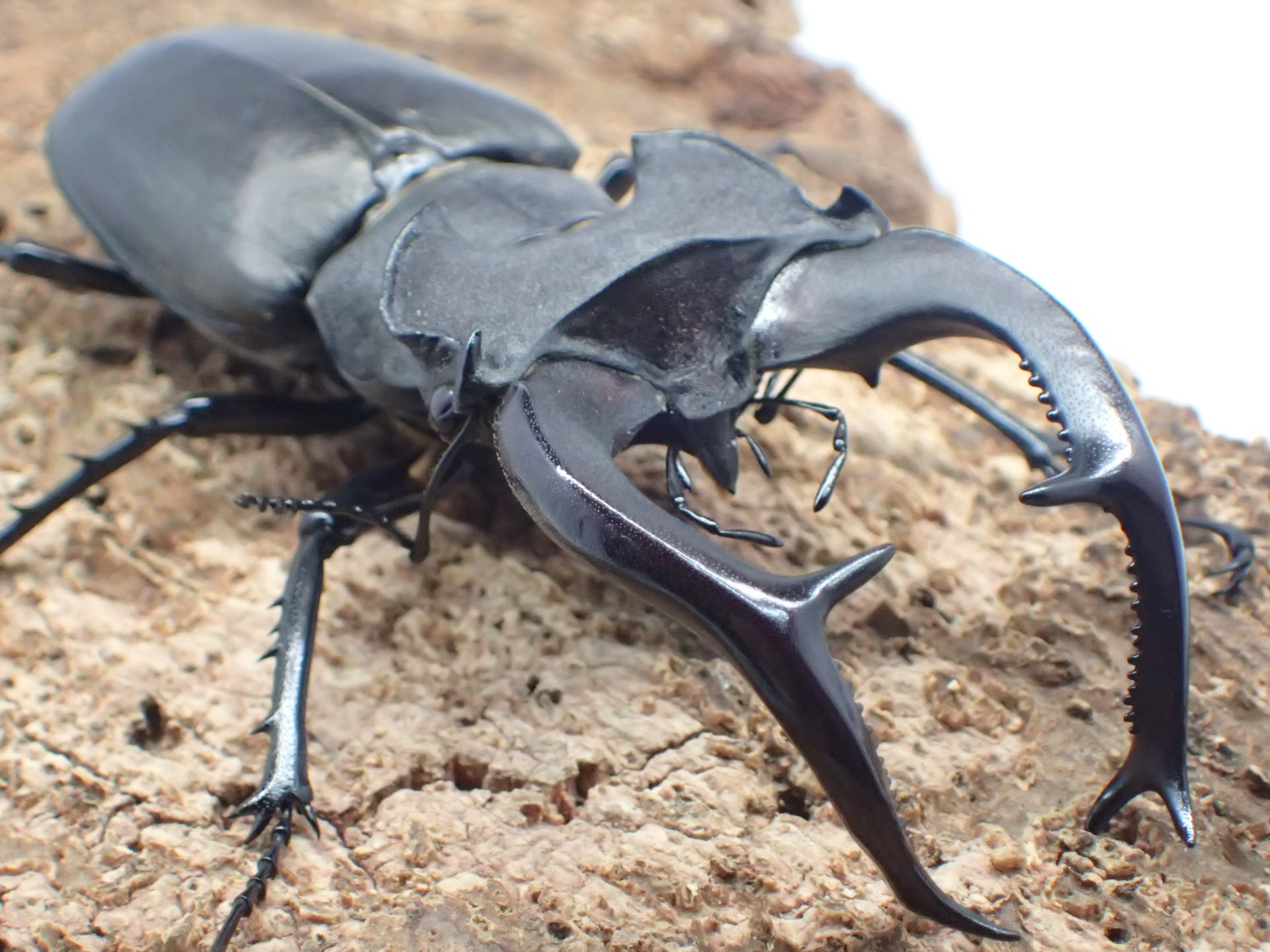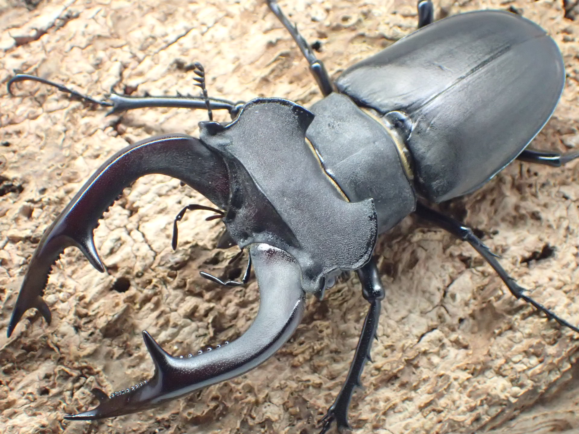 原名亜種(Lucanus cervus cervus)に比べ体がやや細長く、大アゴが前方に伸び先端のフタマタが狭く鋭角に別れます。