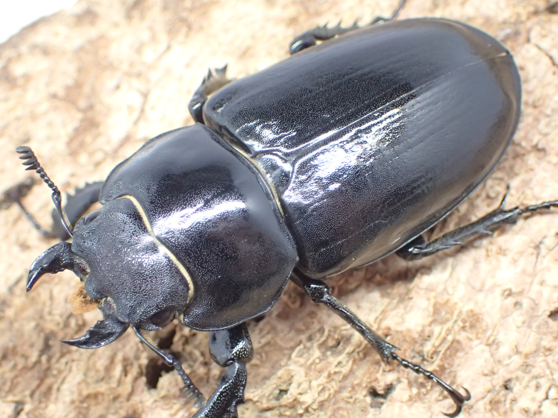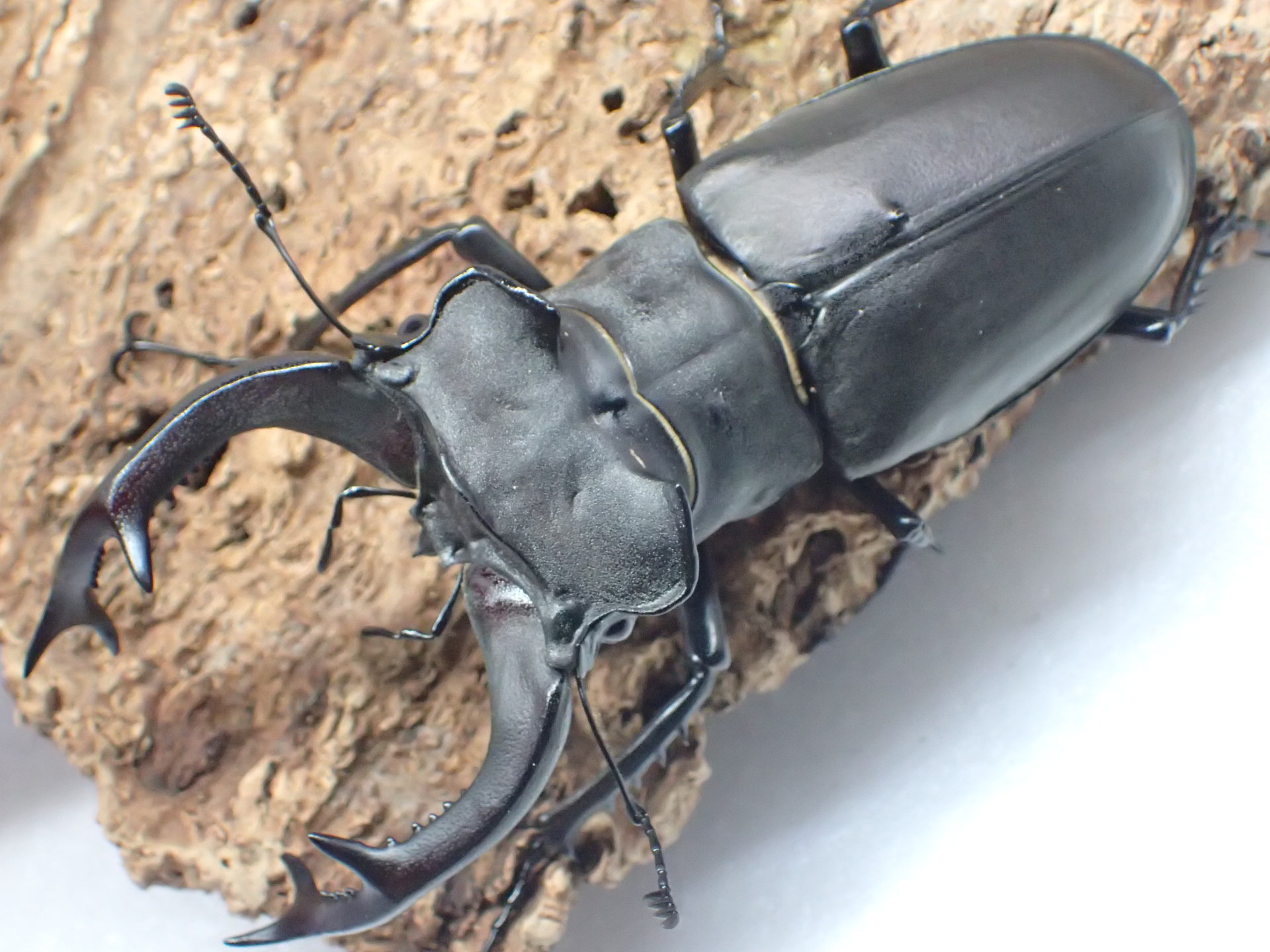 原名亜種(Lucanus cervus cervus)に比べ体がやや細長く、大アゴが前方に伸び先端のフタマタが狭く鋭角に別れます。