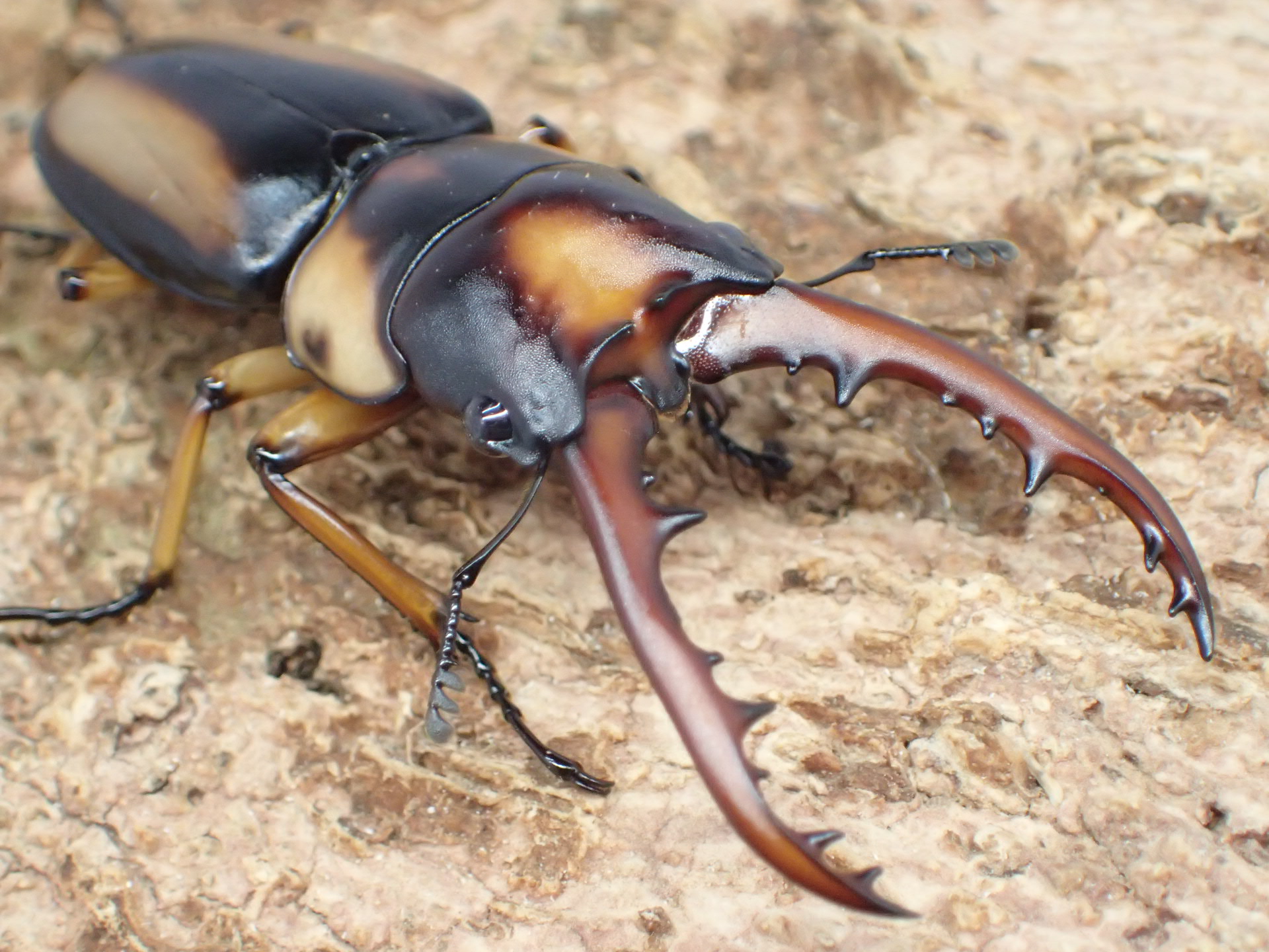 褐色と黒のノコギリ サバゲノコギリクワガタ