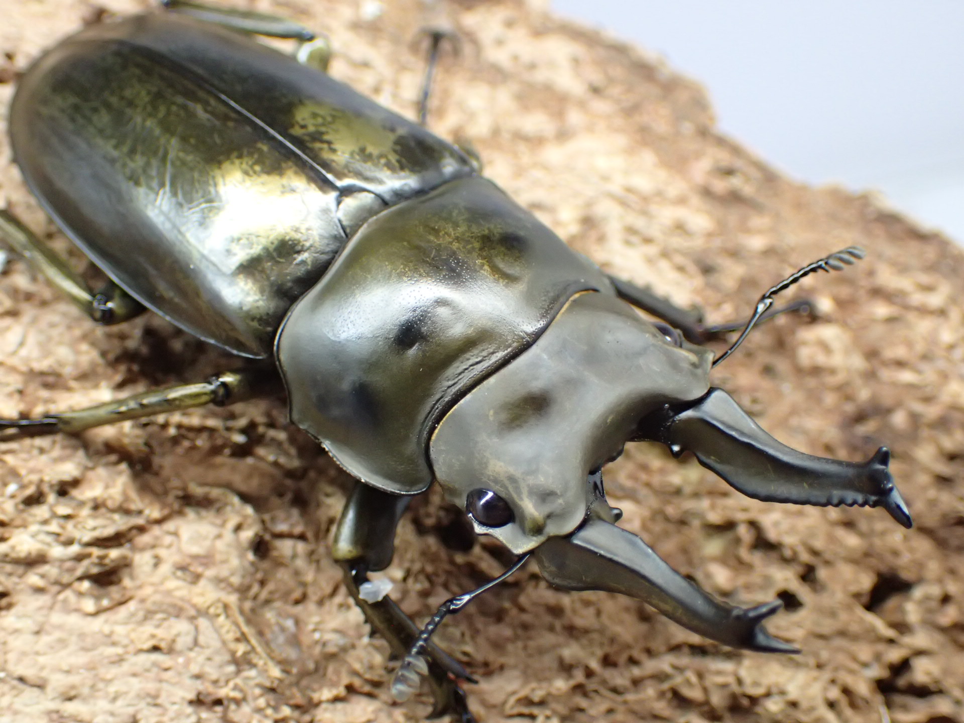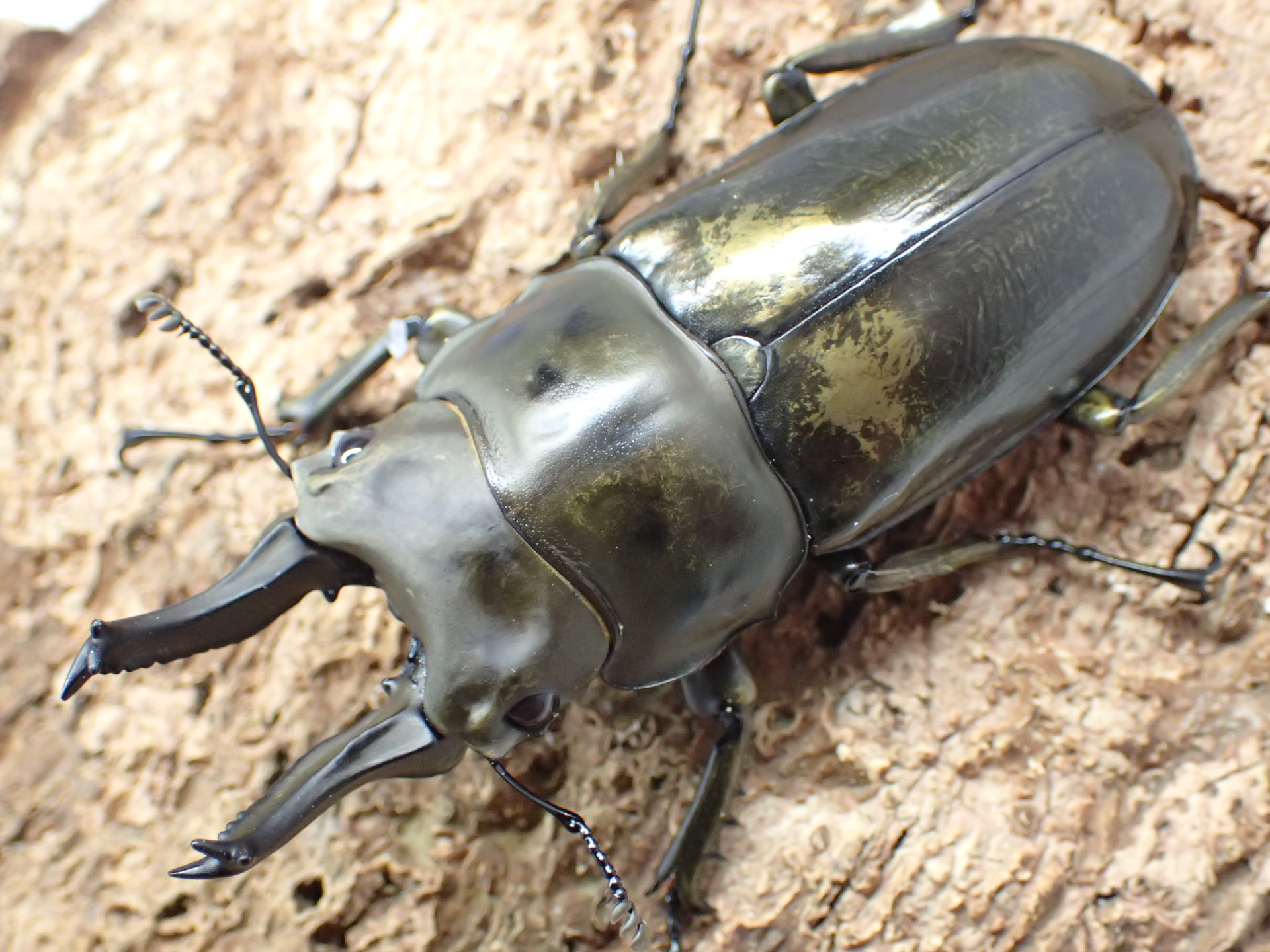 オウゴンオニクワガタの基準種で、名前の通り金色に輝く美しい姿をしています。