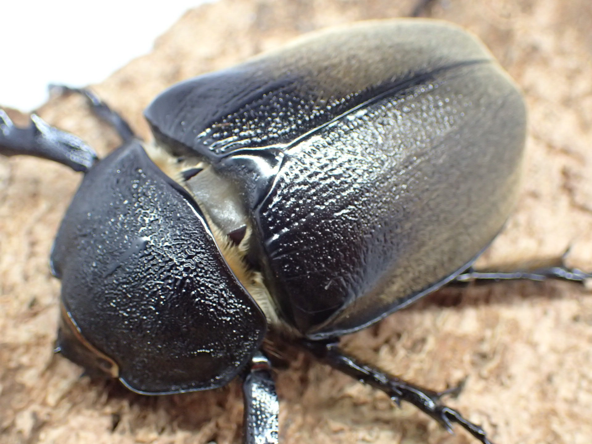 エレファスゾウカブトに似ていますが体はやや小さく、前胸背板前縁部の突起が真横に突出し、頭角は細長く、直線的で湾曲が弱く、上翅が縦に細長い傾向にあります。