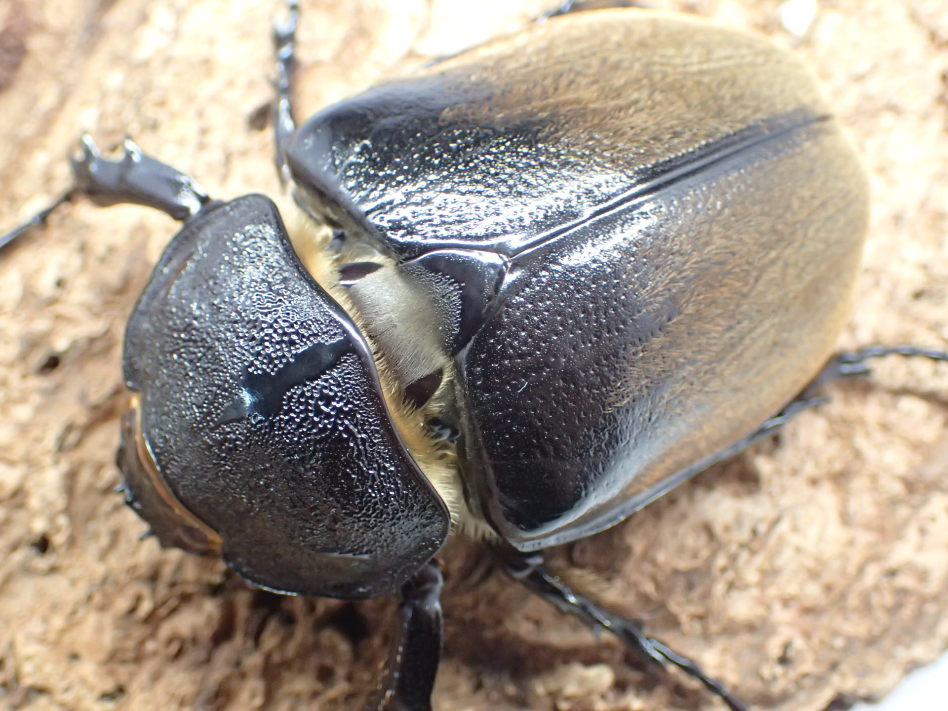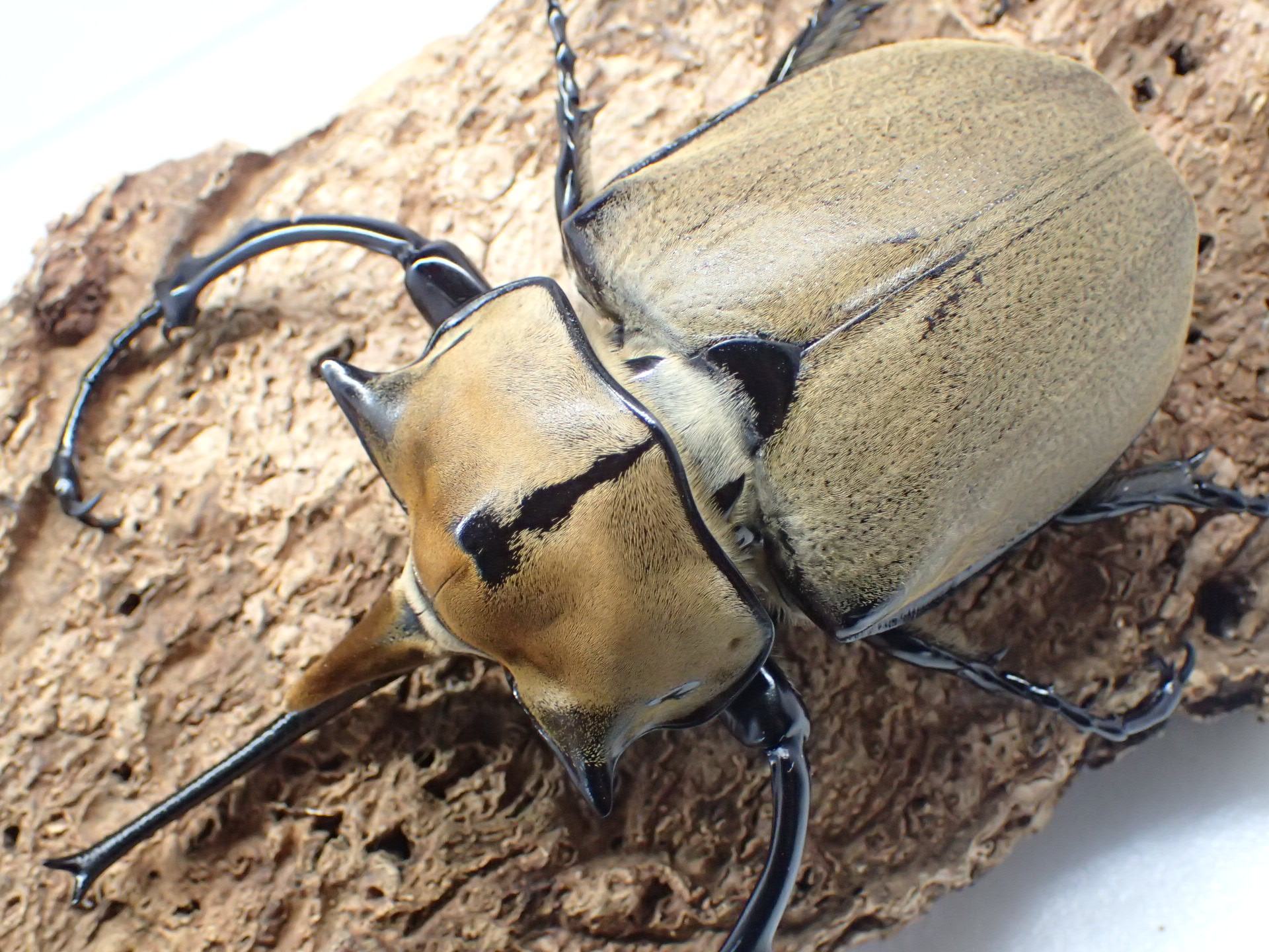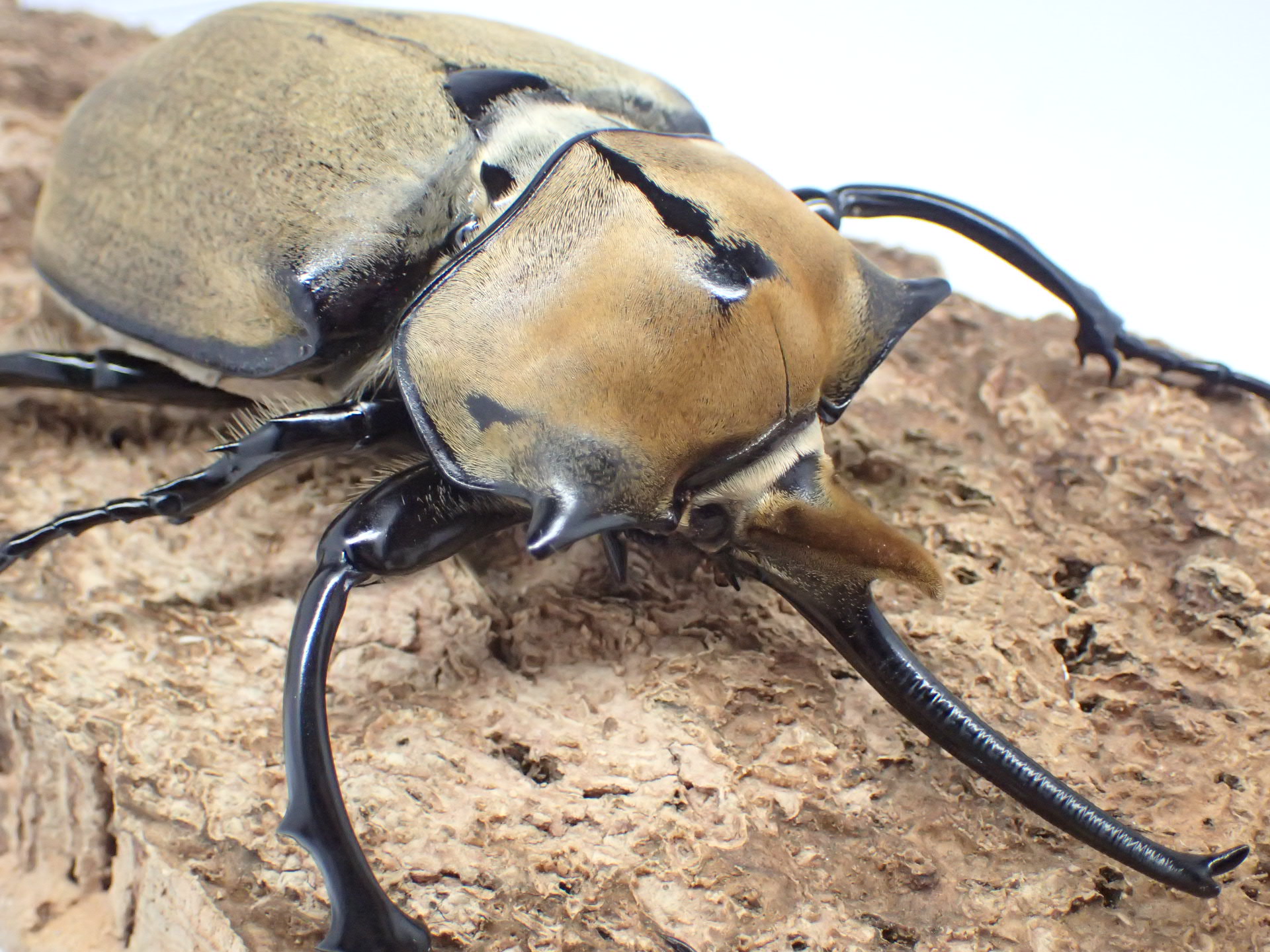 エレファスゾウカブトに似ていますが体はやや小さく、前胸背板前縁部の突起が真横に突出し、頭角は細長く、直線的で湾曲が弱く、上翅が縦に細長い傾向にあります。