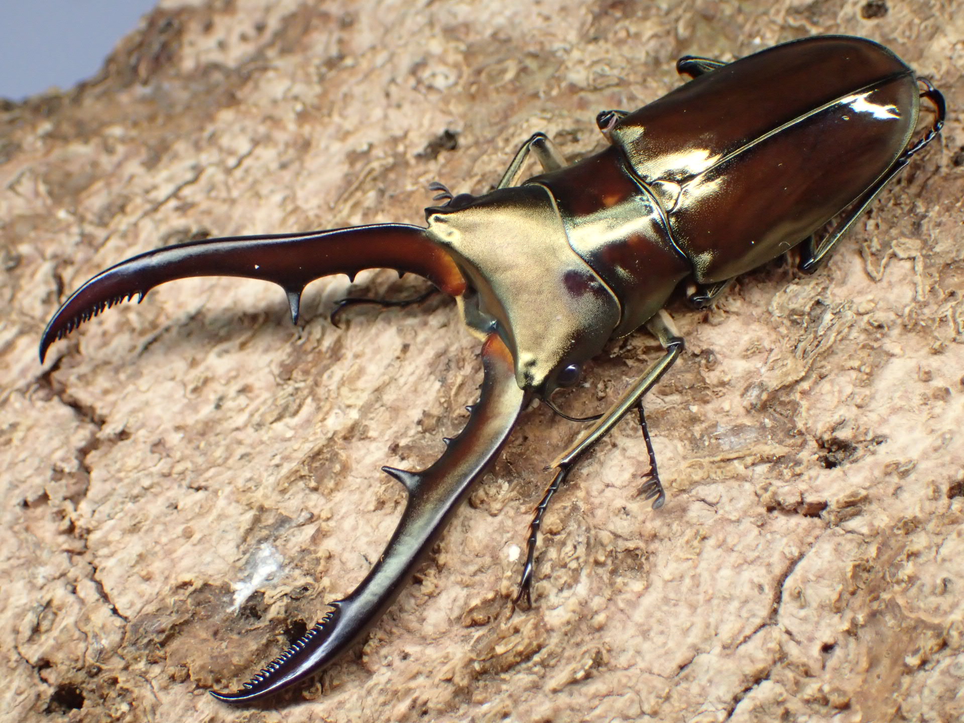 サンギール島の亜種sangirensisは原名亜種に比べ大アゴと体がやや細長く、体は褐色味がかった明るい銅色で、全亜種でもっとも光沢が強く、美しい姿をしています。