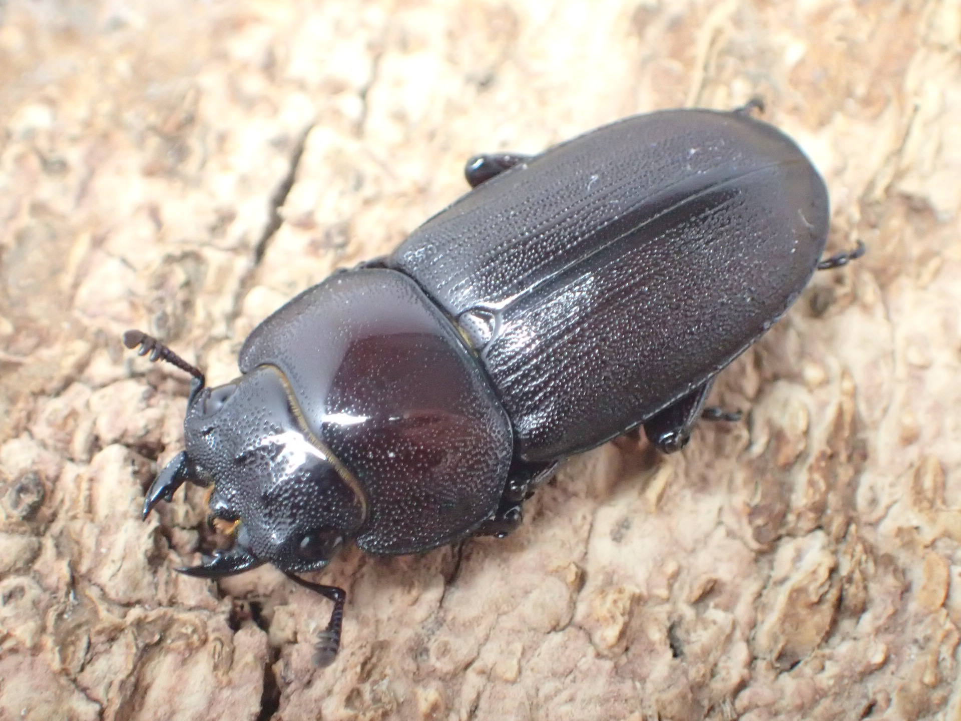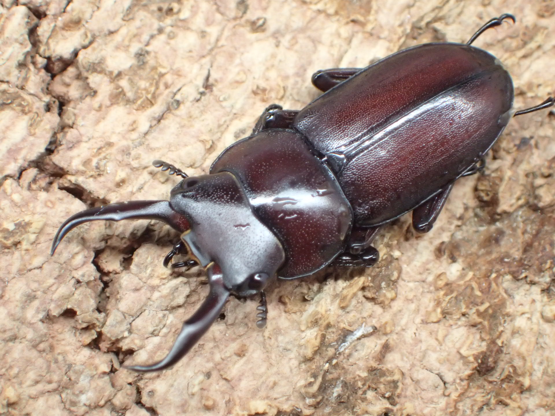 最も身近なクワガタである「コクワガタ」の八丈島亜種で、原名亜種に比べて褐色で鈍い光沢あり、大アゴ・体・脚はやや細長くなります。