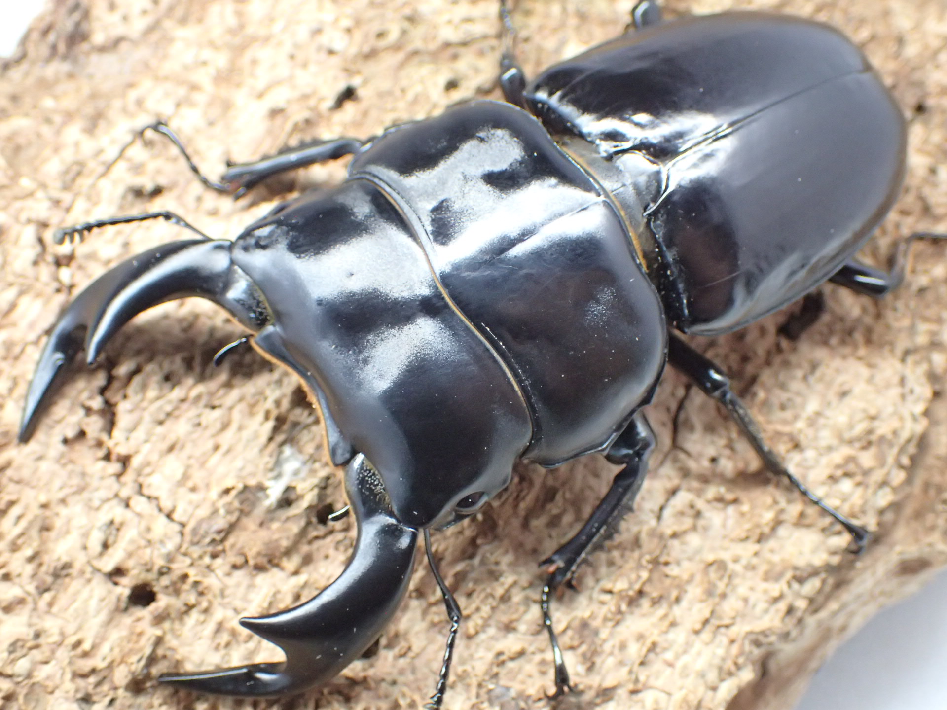 体が幅広く光沢があり、大アゴは太短く、「く」の字に屈曲します。