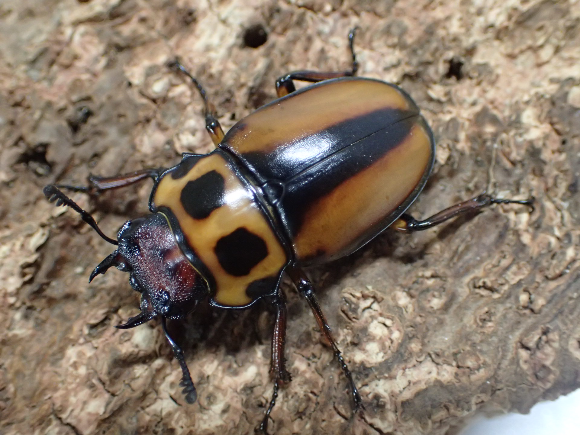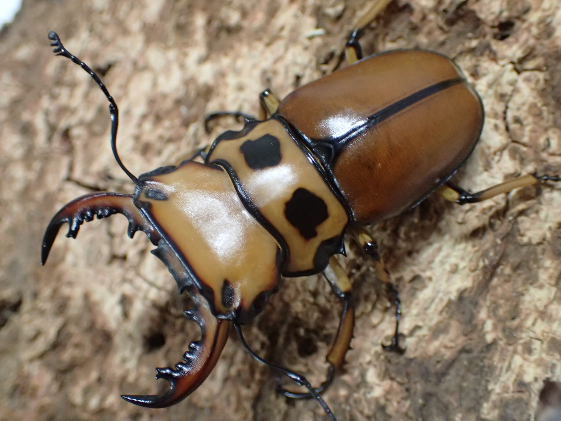 前頭部の特異な形状が「お面」を連想させることから「メンガタクワガタ」の和名を持ちます。
