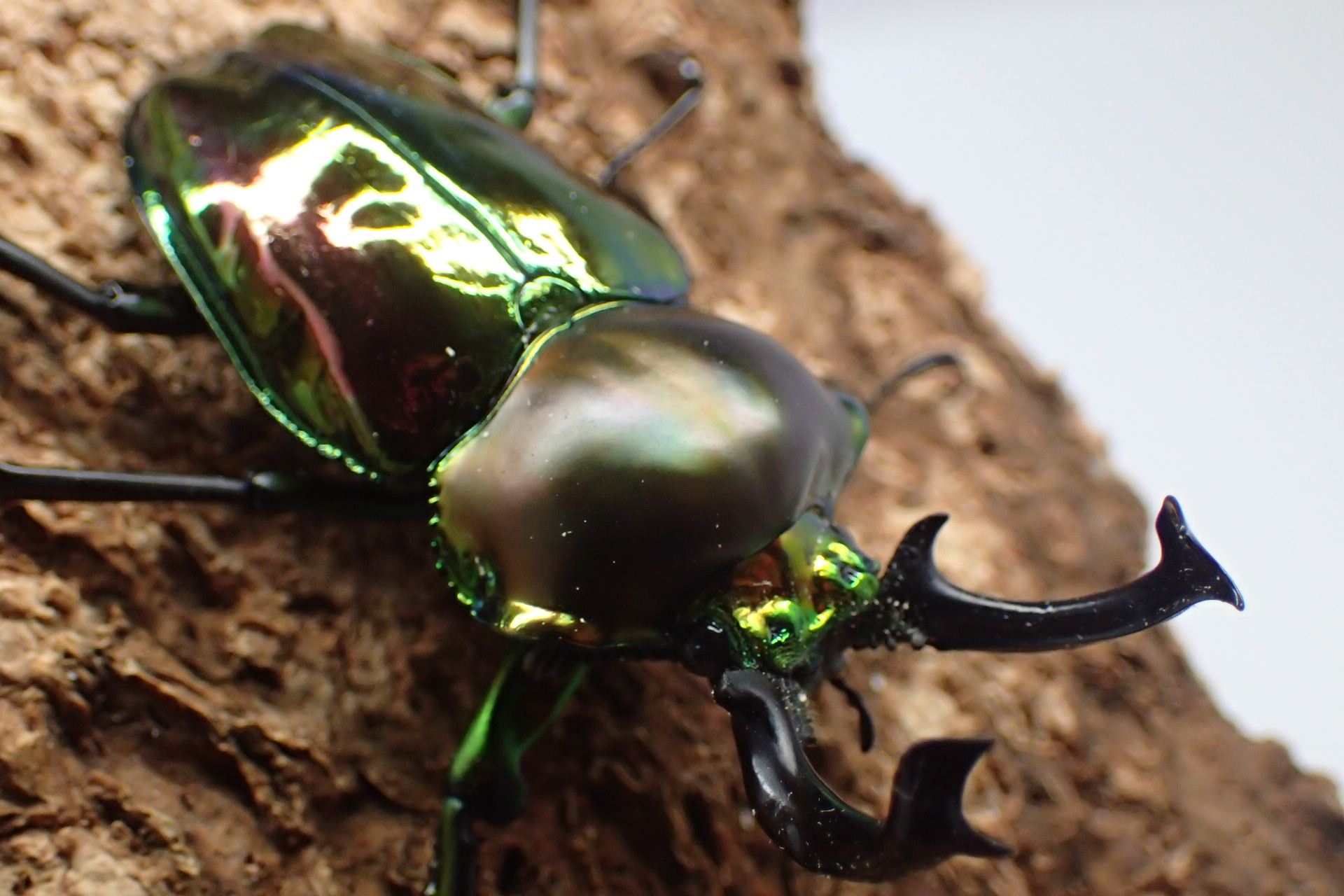 「世界で最も美しいクワガタ」として有名で、上翅には覗き込んだ自分の顔が映るほどの鏡のような強い金属光沢があり、赤や緑が入り混じる型から、緑色が強い型、赤色が強い個体など色彩変異があります。