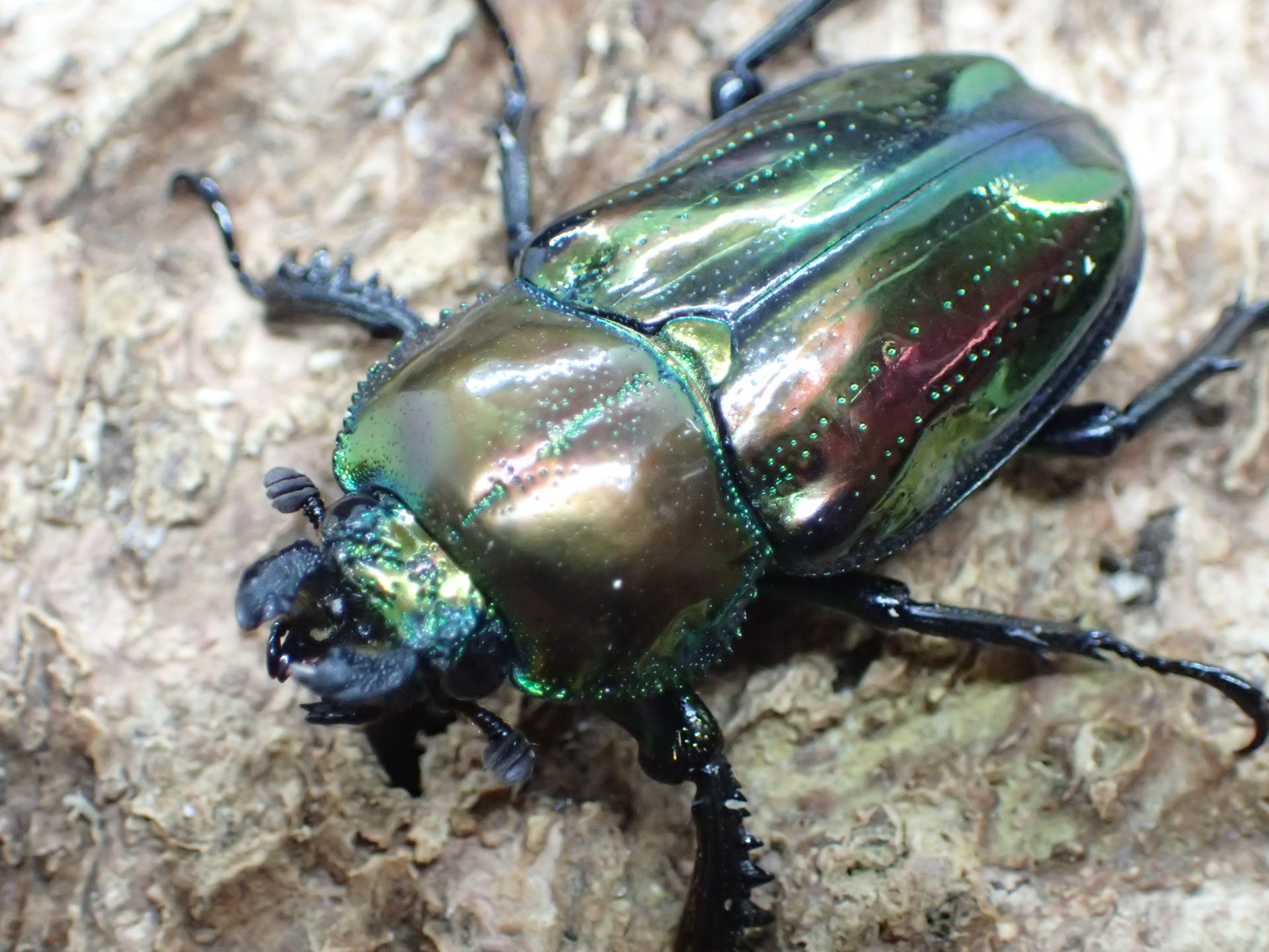 「世界で最も美しいクワガタ」として有名で、上翅には覗き込んだ自分の顔が映るほどの鏡のような強い金属光沢があり、赤や緑が入り混じる型から、緑色が強い型、赤色が強い個体など色彩変異があります。