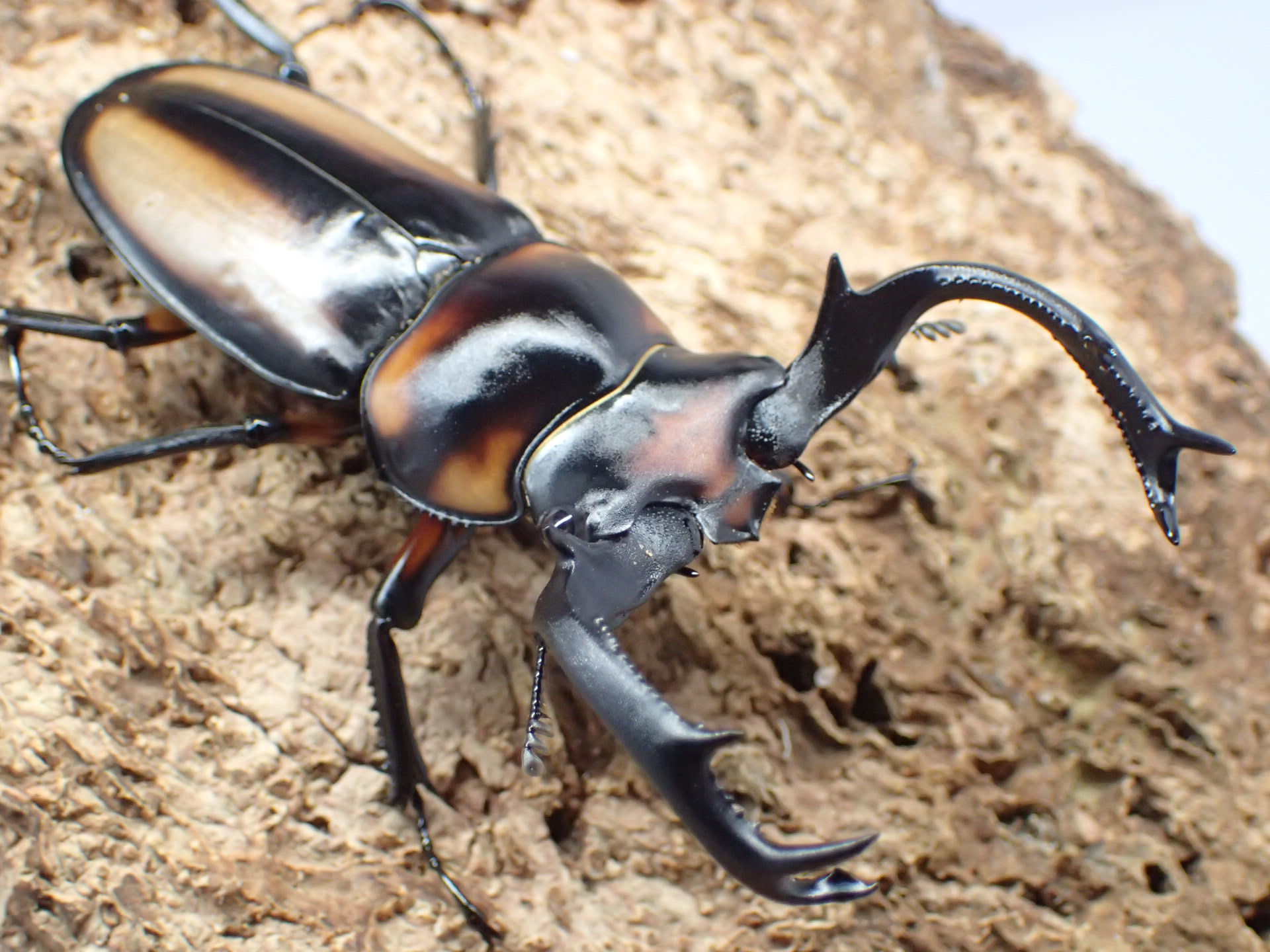 シカクワガタ(crenatus)の亜種の中で最も黄褐色の部分が多く、亜種名の「speciosus」(ラテン語で「美しい」という意味)の通り美麗なシカクワガタです。