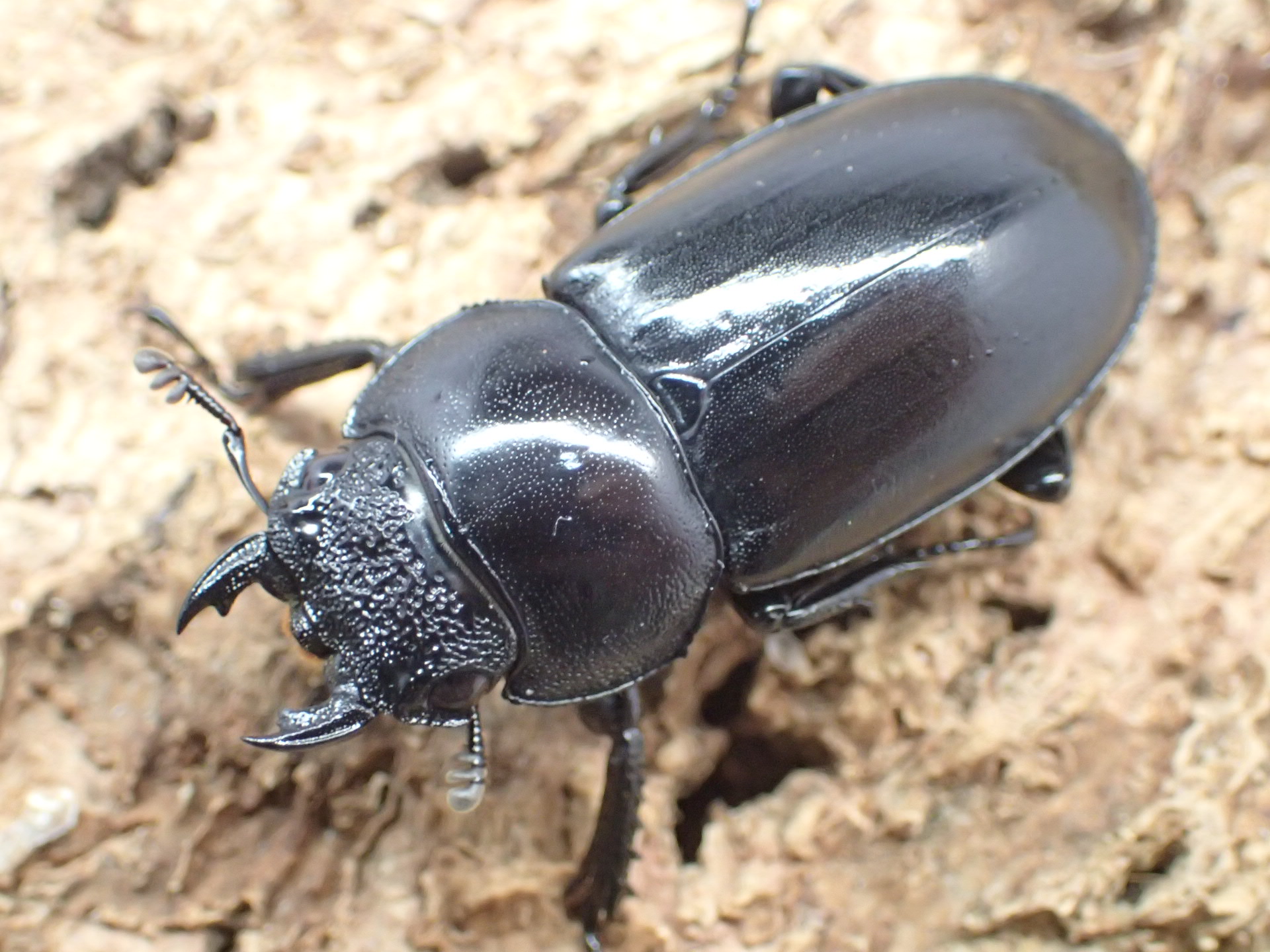 ボイレアウイシカクワガタに似ていますが、腹面から見た腿節は赤褐色で、後胸腹板にも明瞭な赤褐色紋があります。