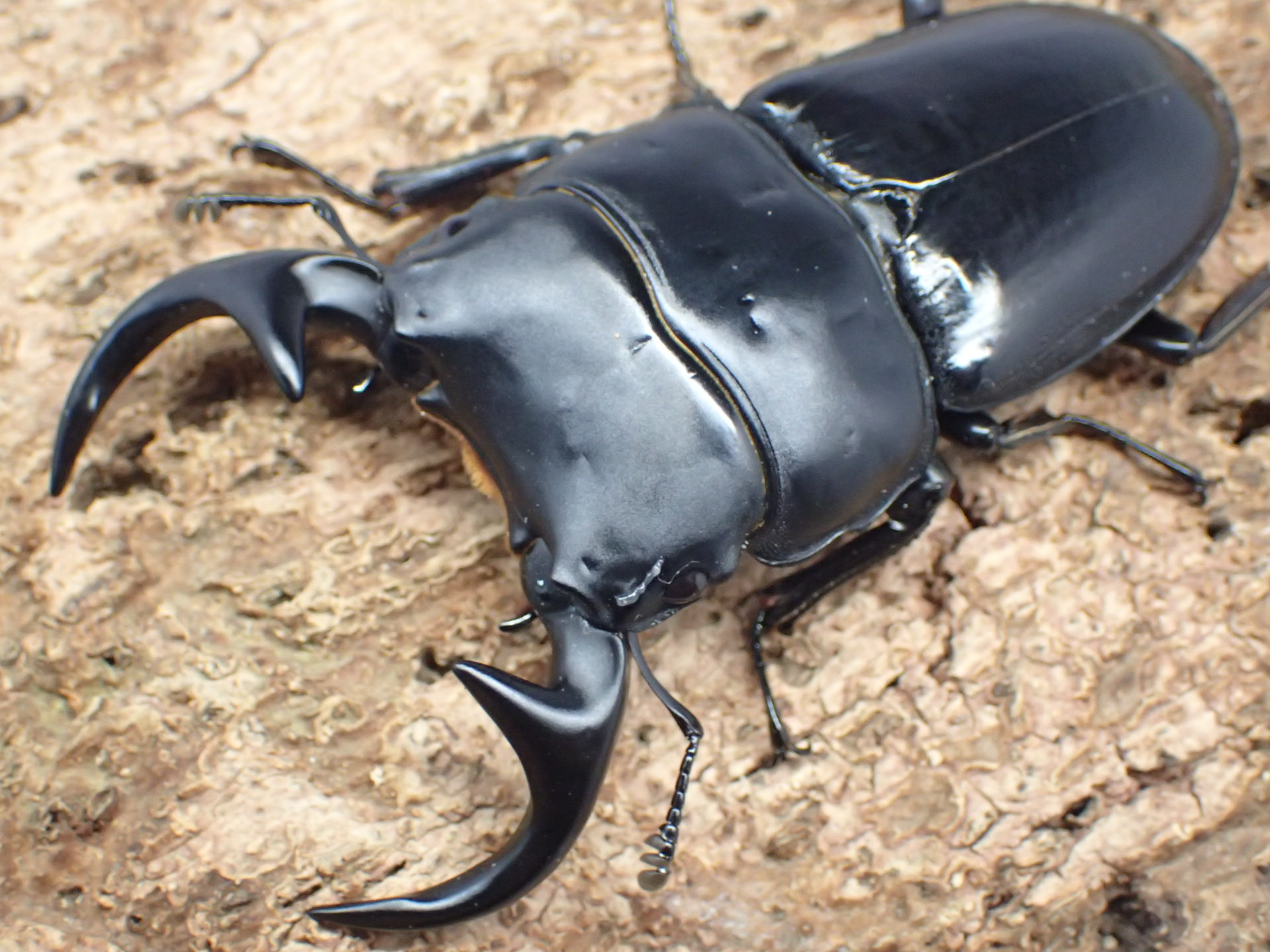 原名亜種に比べ大アゴはより細長く、強くC字状に湾曲して、基部付近に斜め後方を向いた大きい内歯が突出します。