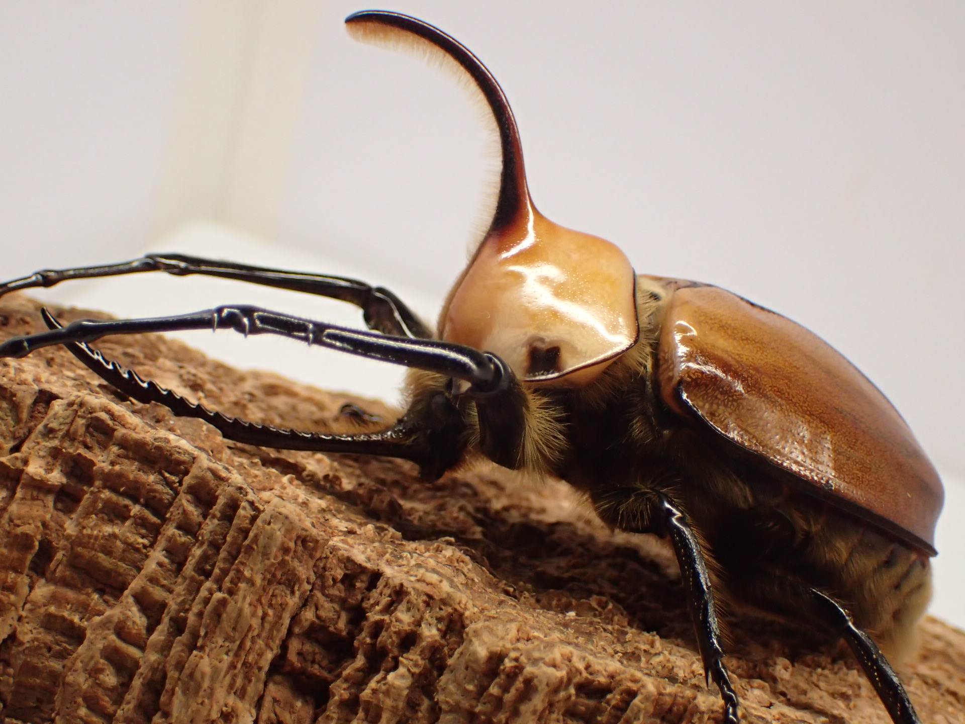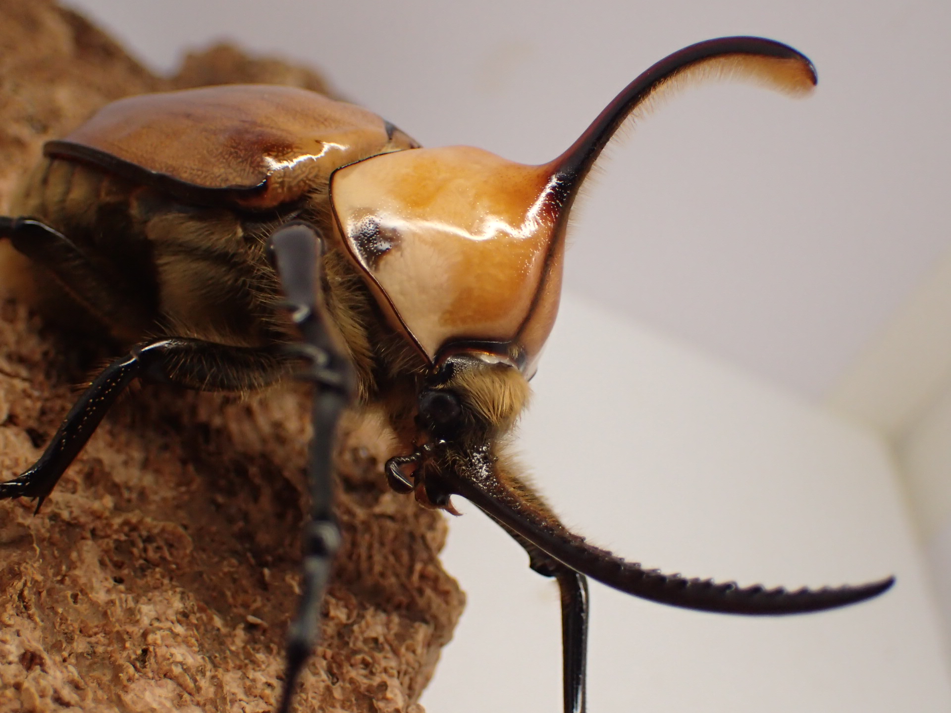 タテヅノカブト(ゴロファ)属の最大種で、前脚が極端に長く、頭角の内側に鋸歯状の細かい突起列が2列あり、「ノコギリタテヅノカブト」の和名を持ちます。