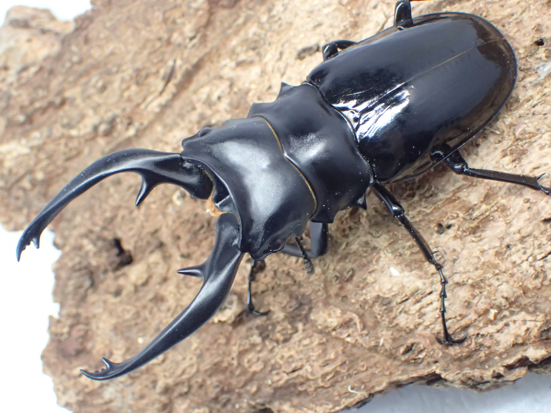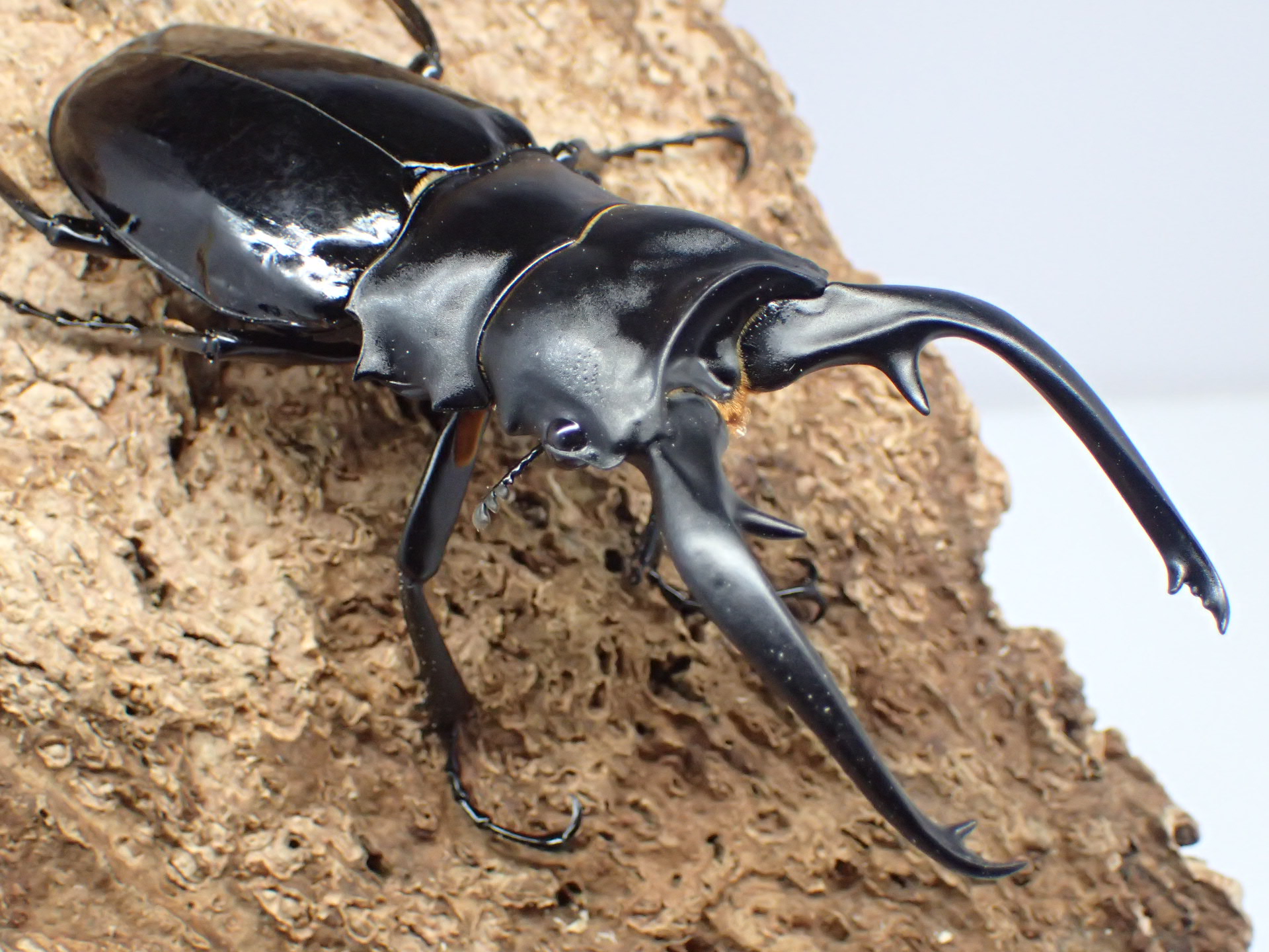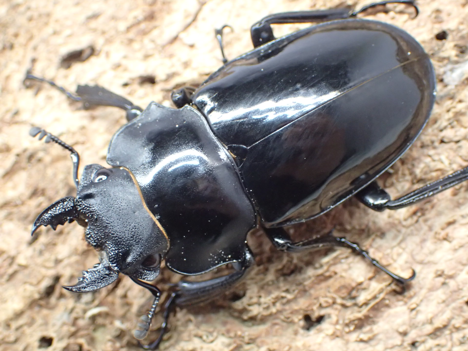 全身黒褐色~黒色で光沢の強いツヤクワガタです。