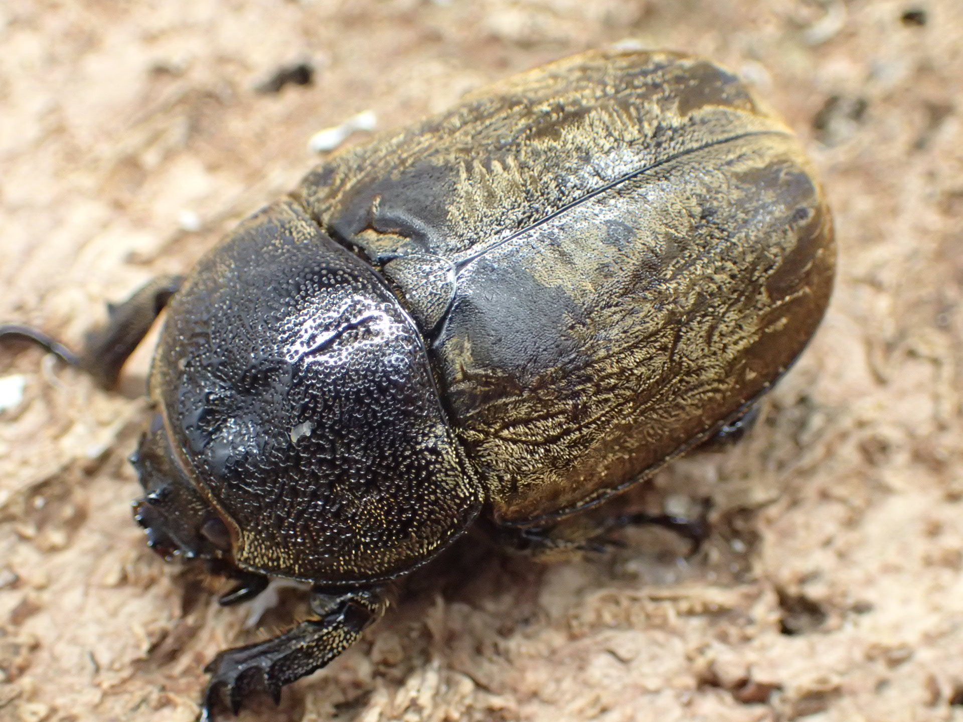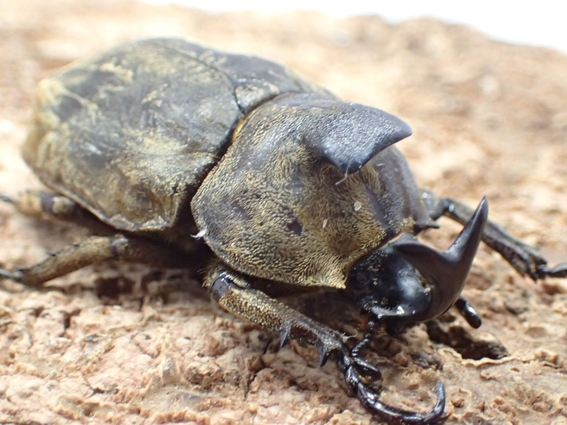 金色の微毛に覆われた小型カブトムシ。