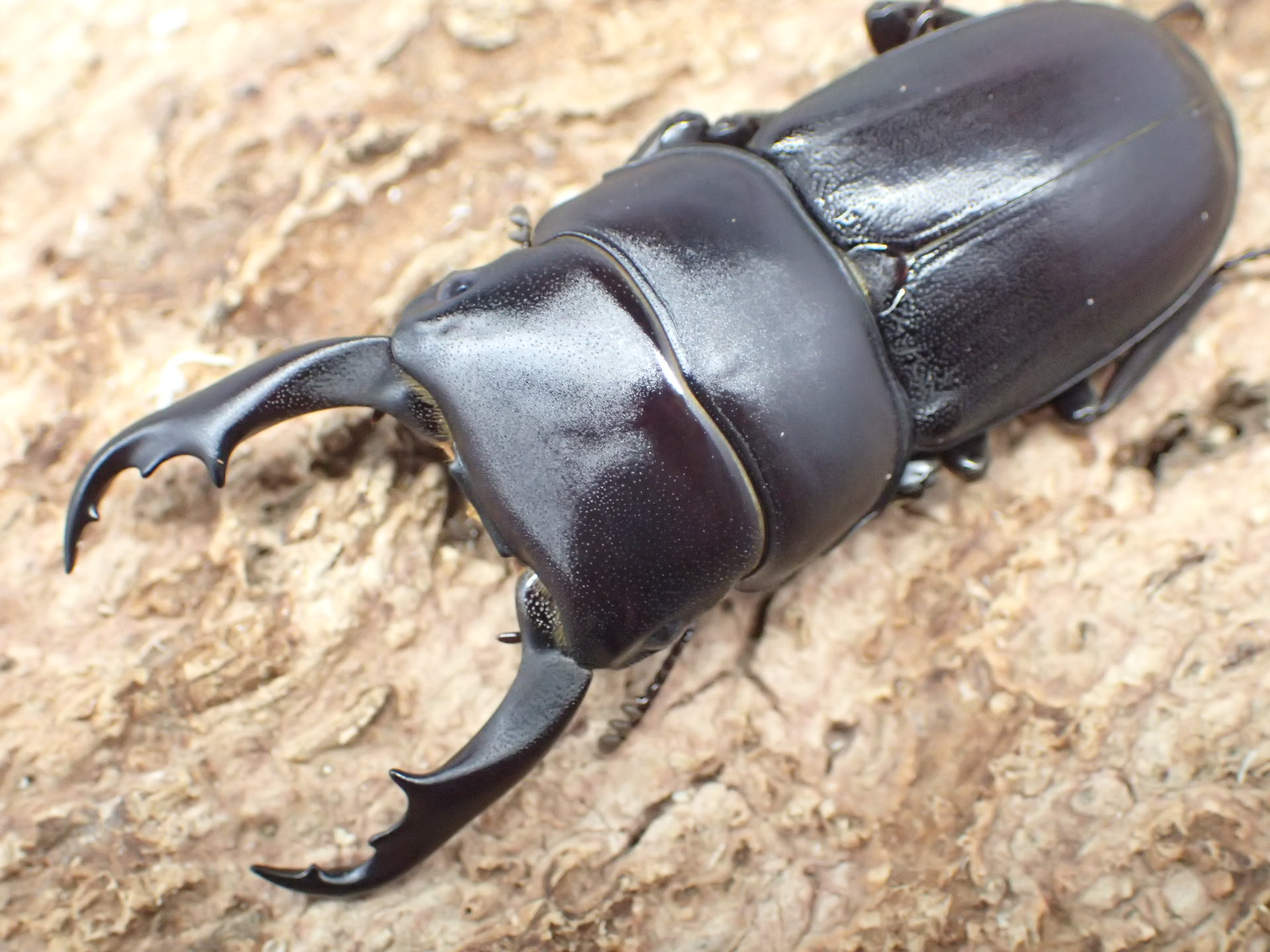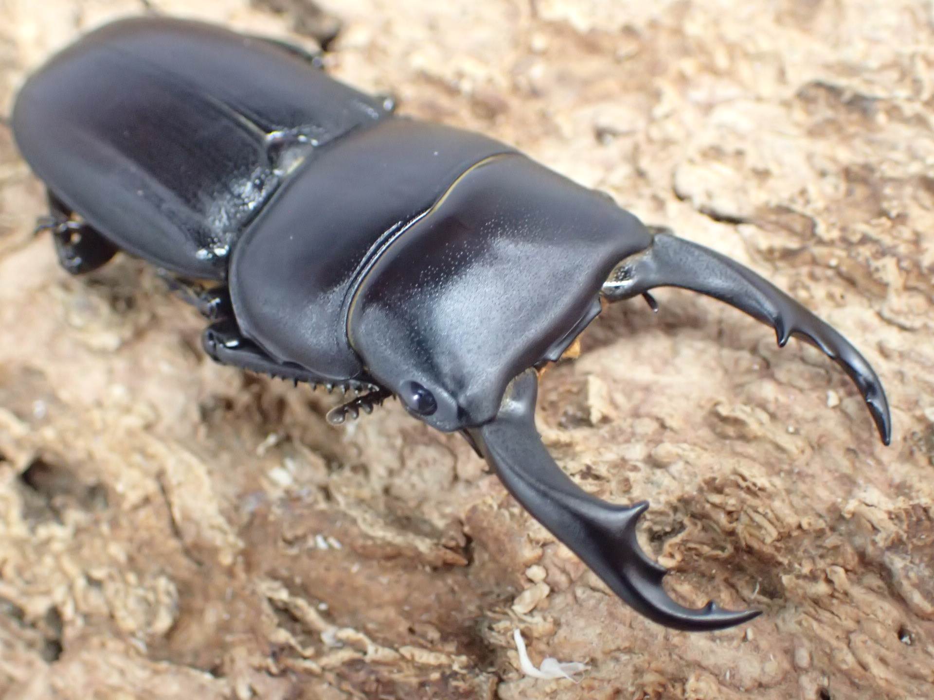ライヒヒラタよりややツヤ消しで、ハンステインヒラタクワガタに比べ光沢が強く、大アゴはライヒヒラタに比べて直線的で、先端はライヒヒラタより強く内側に湾曲します。