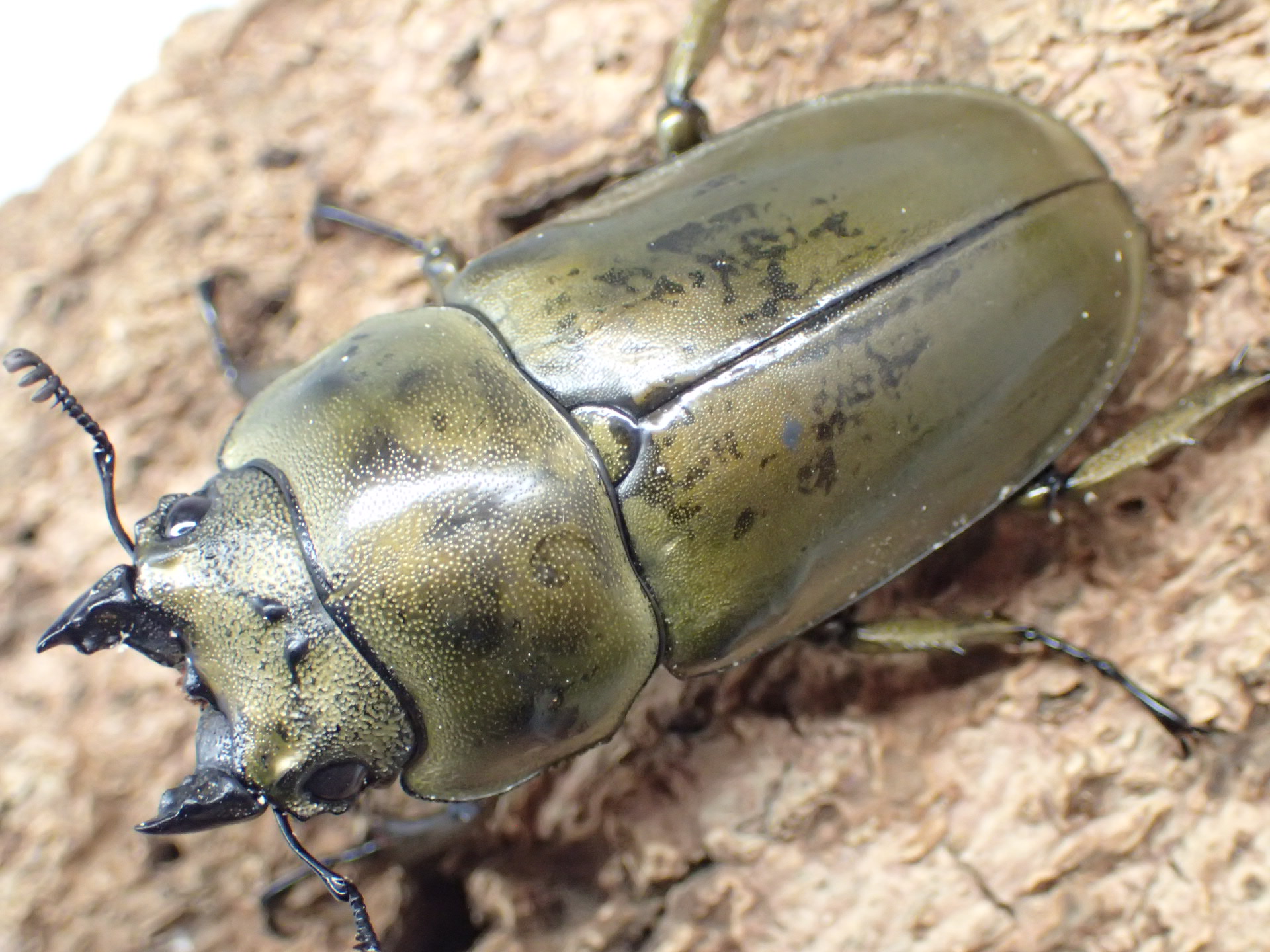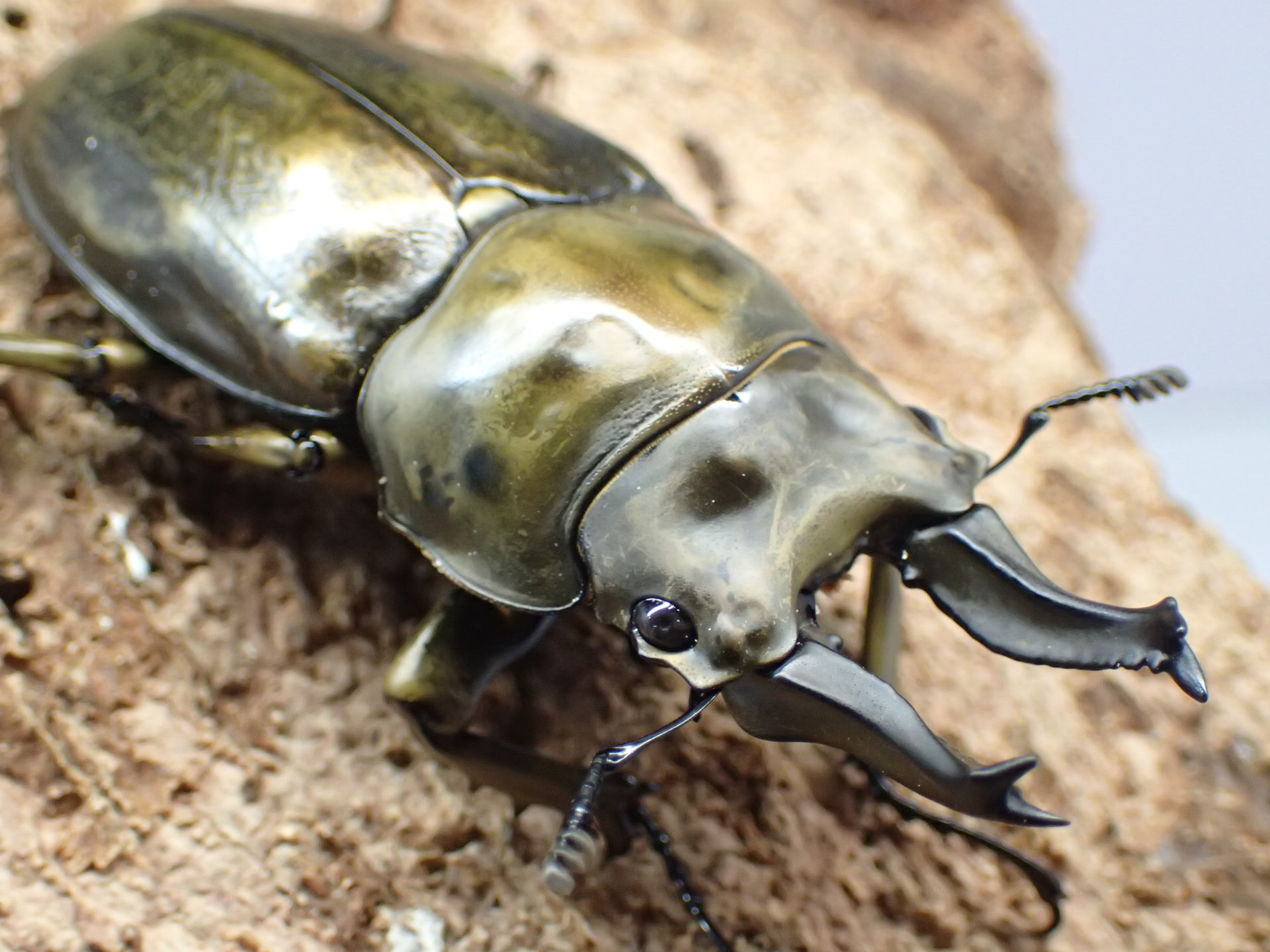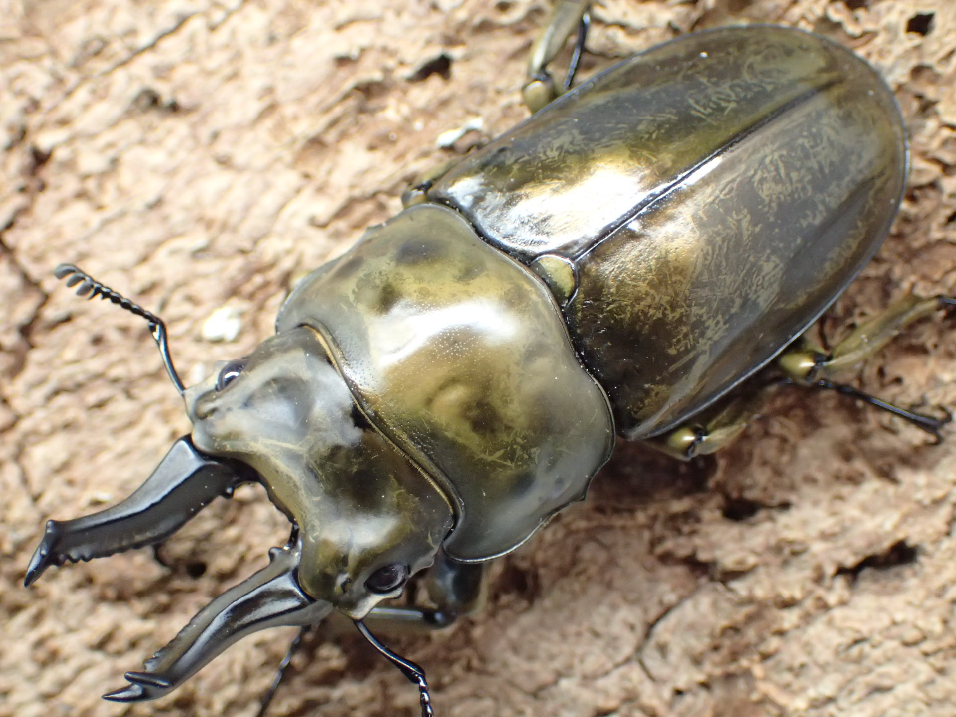 オウゴンオニクワガタの基準種で、名前の通り金色に輝く美しい姿をしています。
