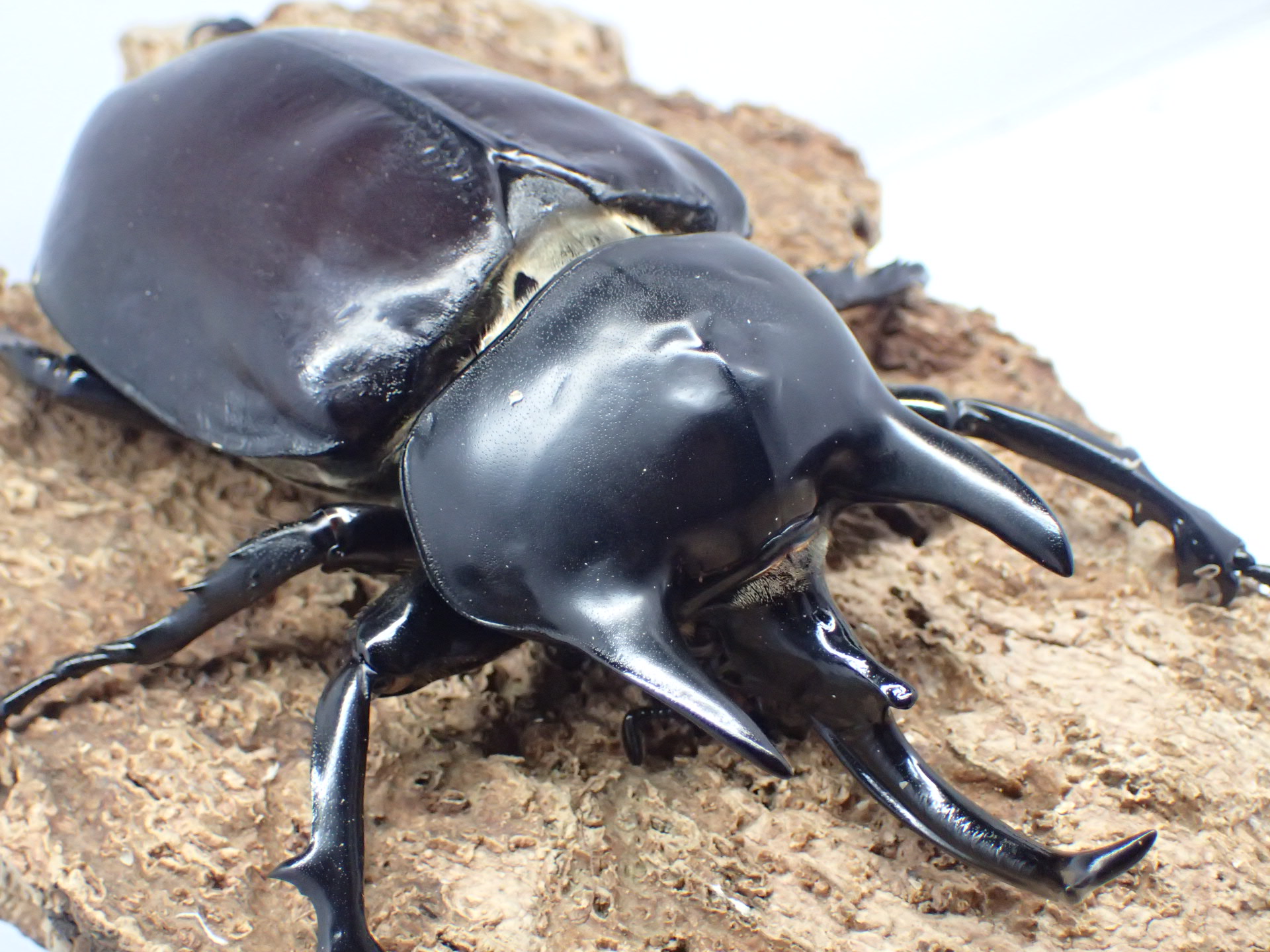 マルスゾウカブトに次ぐ体長で、「有毛のエレファス」・「無毛のアクティオン」と、ゾウカブトを二分する人気のカブトムシです。