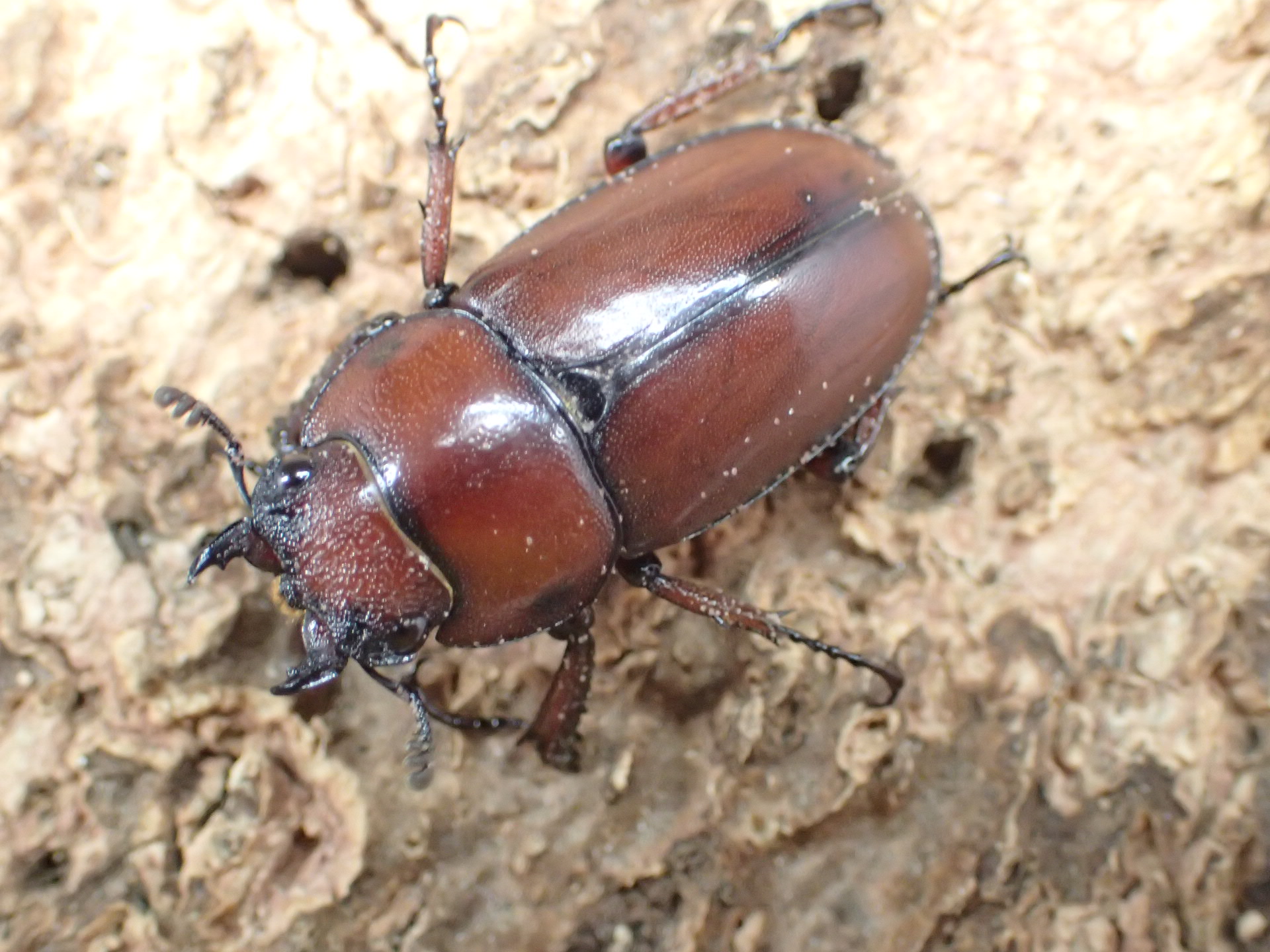 ミャンマー北部(カチン州・チン州)、中国西部(雲南省南部)、ラオス北部、ベトナム北部に分布する亜種fraternusは赤色味がかった褐色で、大アゴは基部で小さく湾曲してほぼ真っすぐ伸びて先端でやや湾曲します。