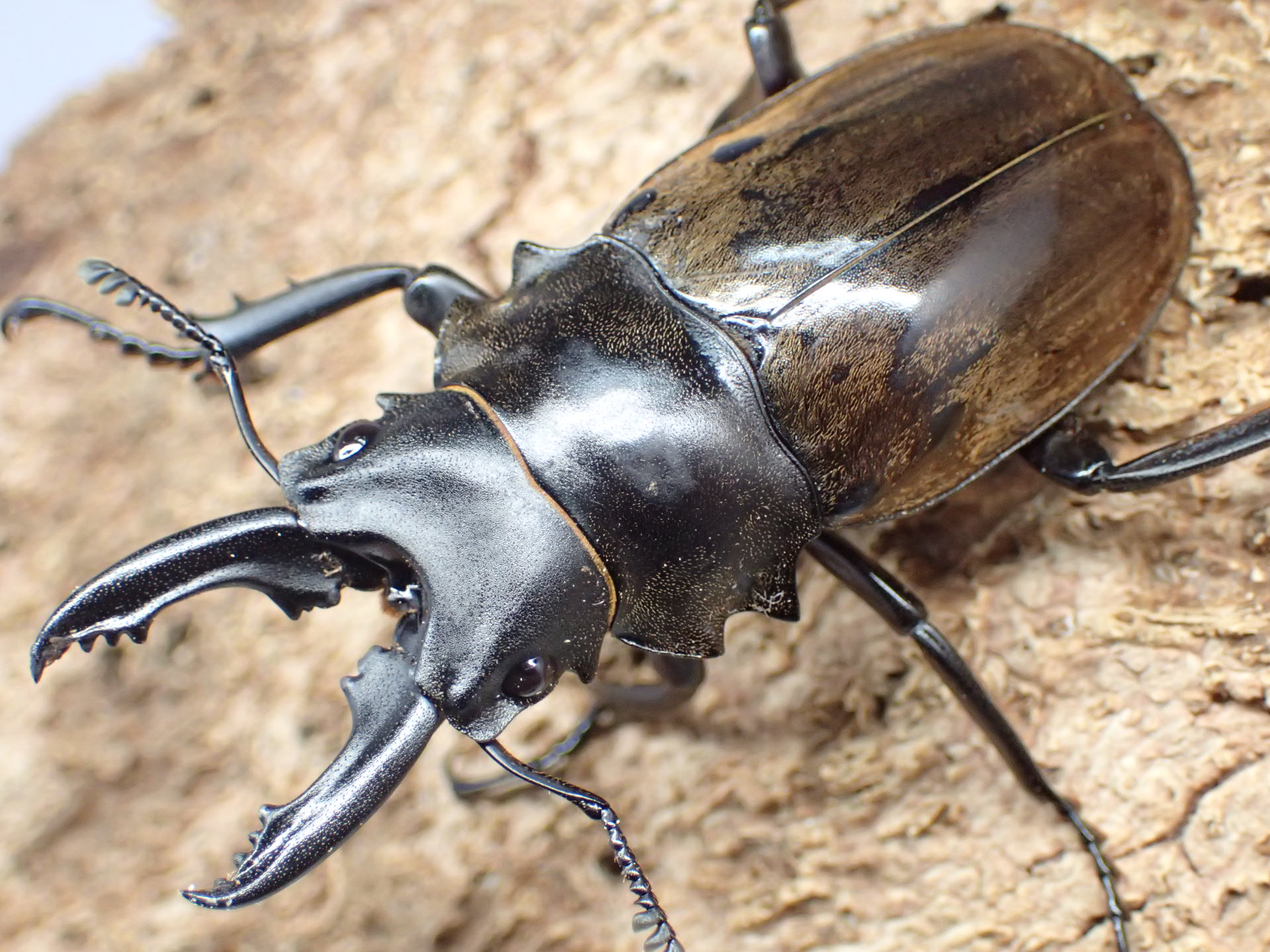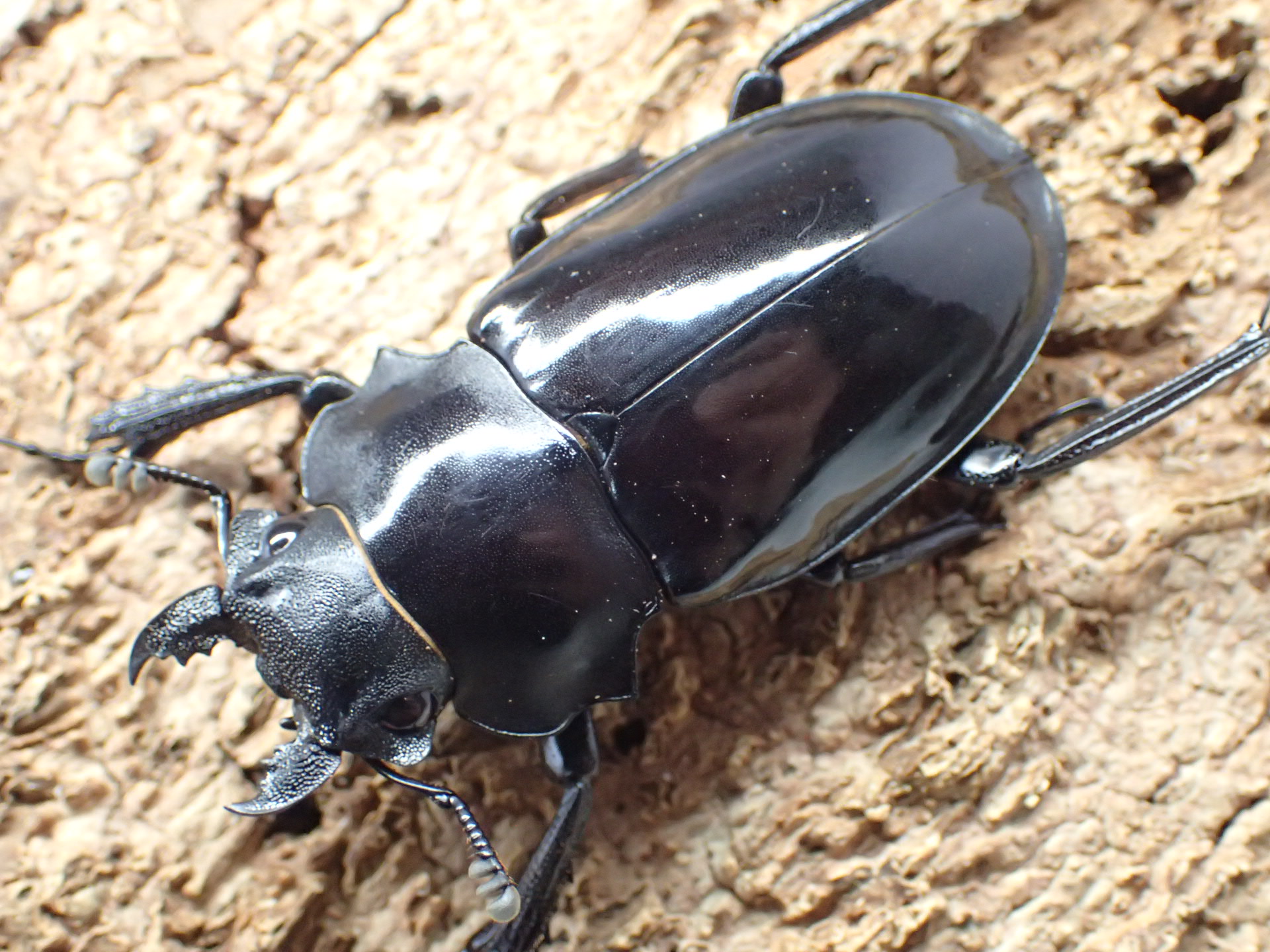 全身黒褐色~黒色で光沢の強いツヤクワガタです。
