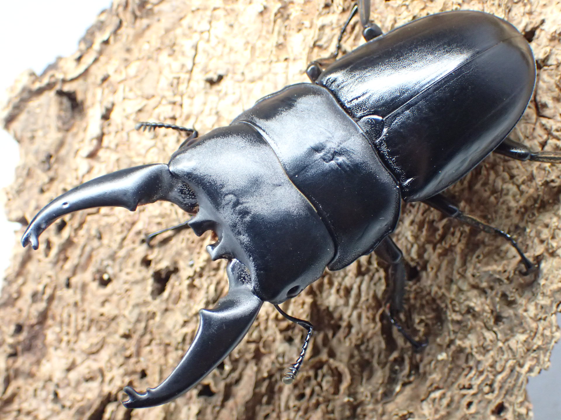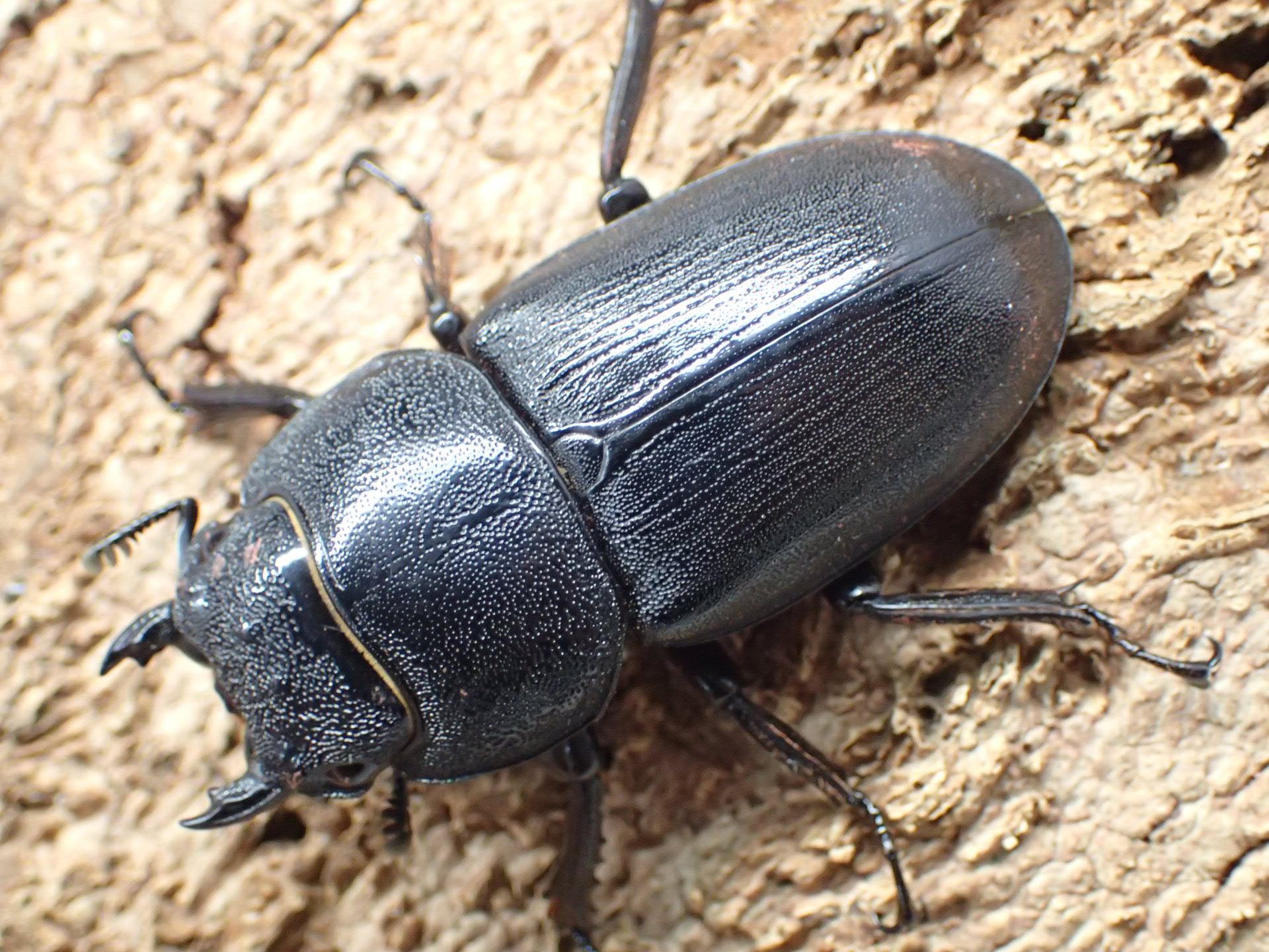 アルキデスヒラタクワガタに似ていますが、体の光沢はやや弱く、前胸背板はあまり幅広くなりません。