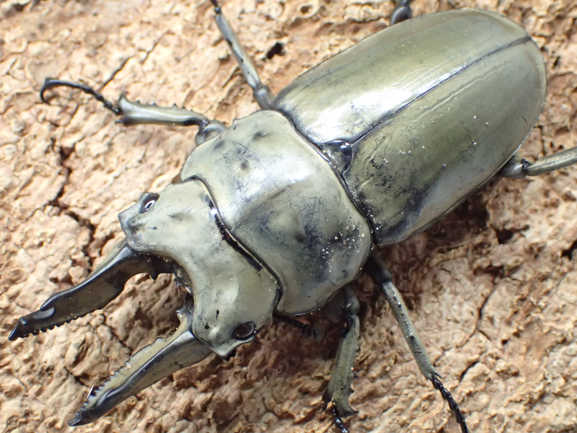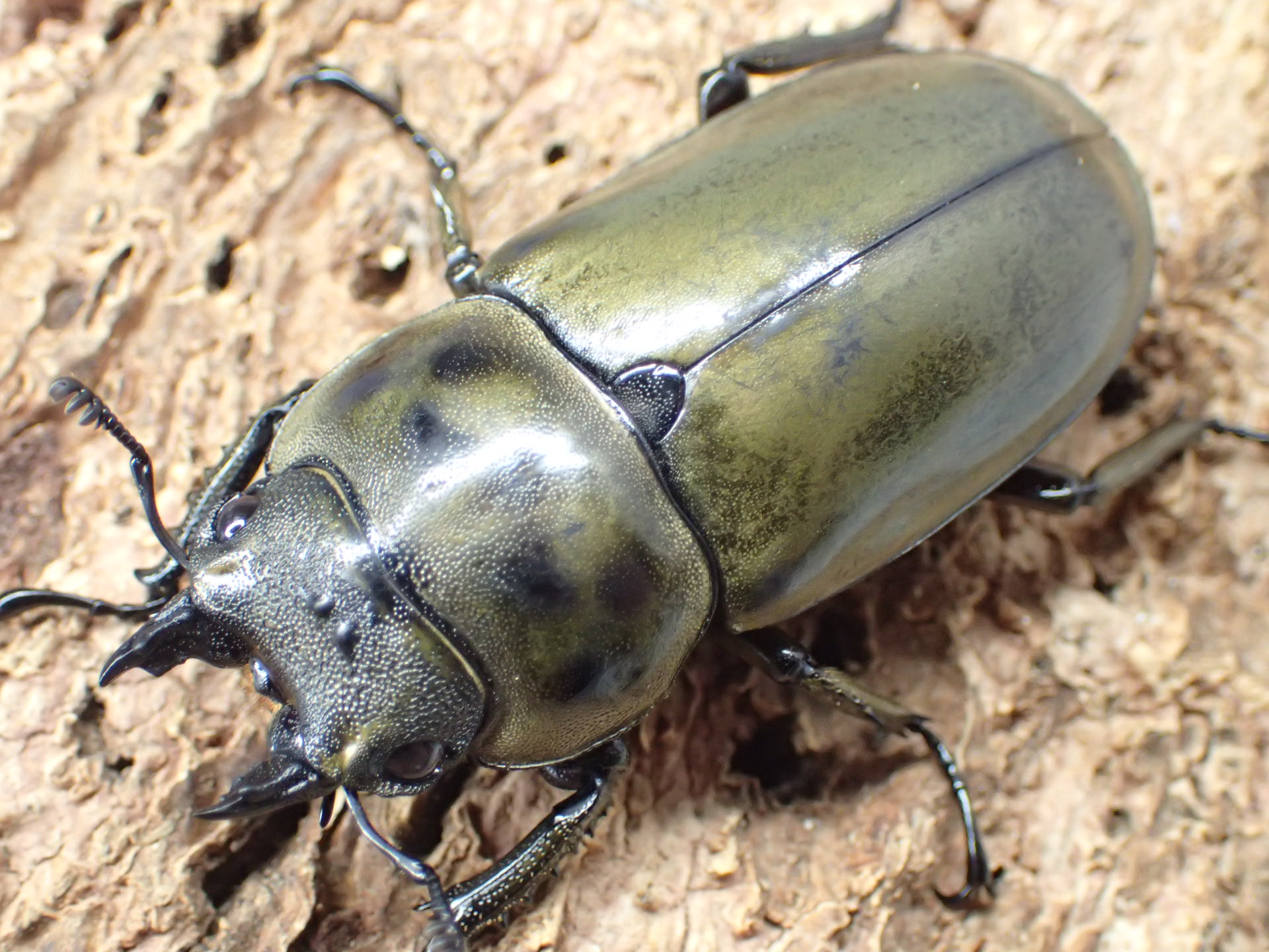 ローゼンベルグオウゴンオニクワガタに見られるような下唇基部の中央部のくぼみがありません。