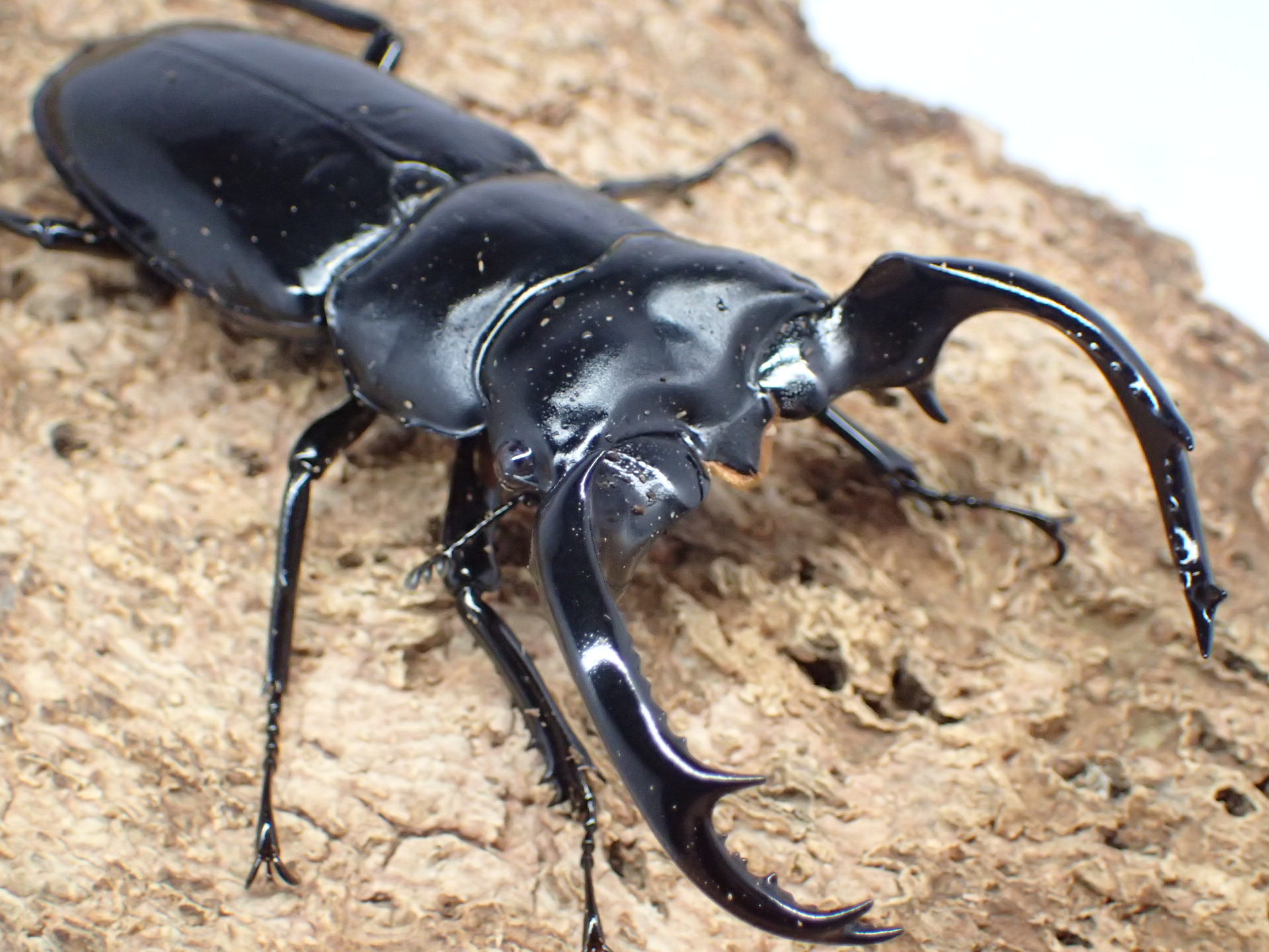 亜種カズミアエに比べ、大アゴが中央部で丸みを帯びて湾曲し、流線型が美しい姿をしています。
