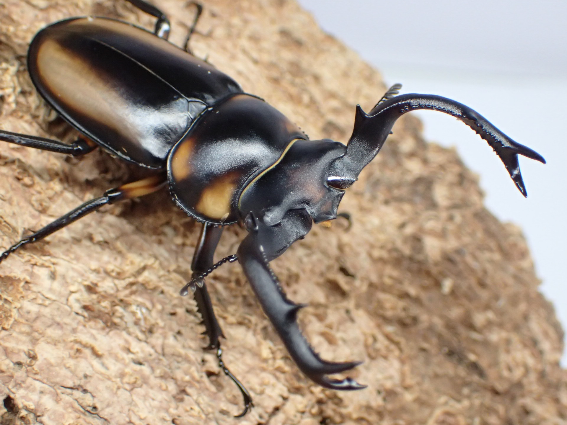 シカクワガタ(crenatus)の亜種の中で最も黄褐色の部分が多く、亜種名の「speciosus」(ラテン語で「美しい」という意味)の通り美麗なシカクワガタです。