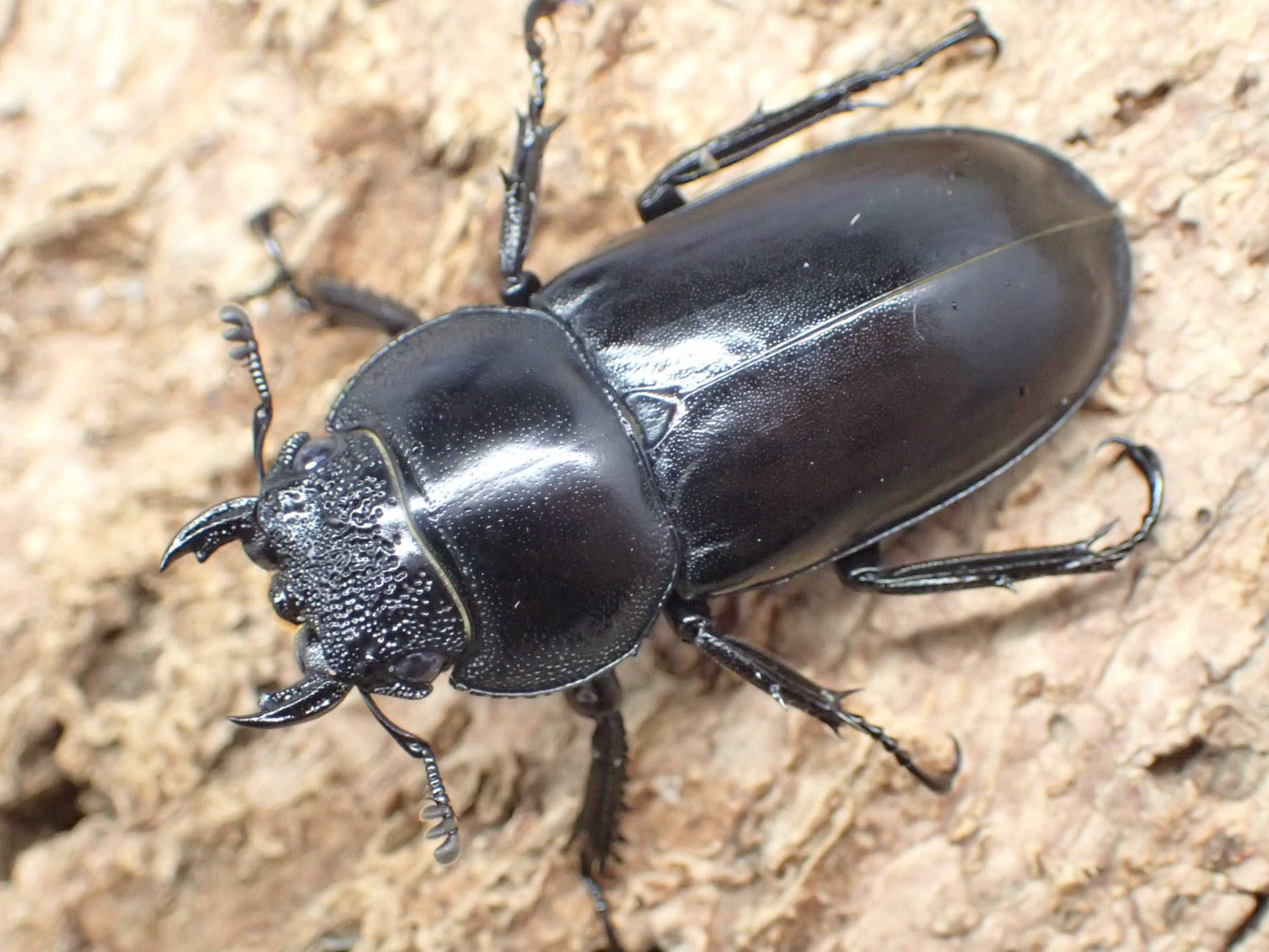 ボイレアウイシカクワガタに似ていますが、腹面から見た腿節は赤褐色で、後胸腹板にも明瞭な赤褐色紋があります。