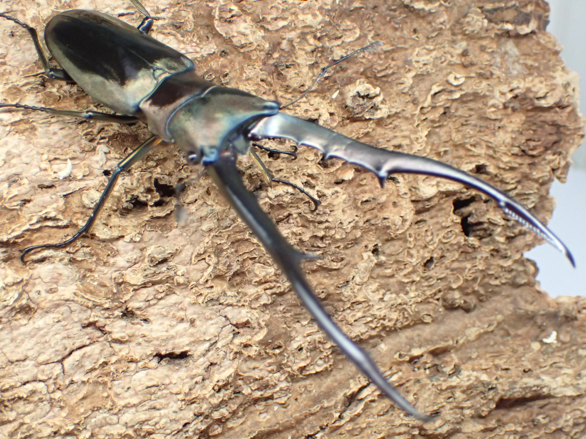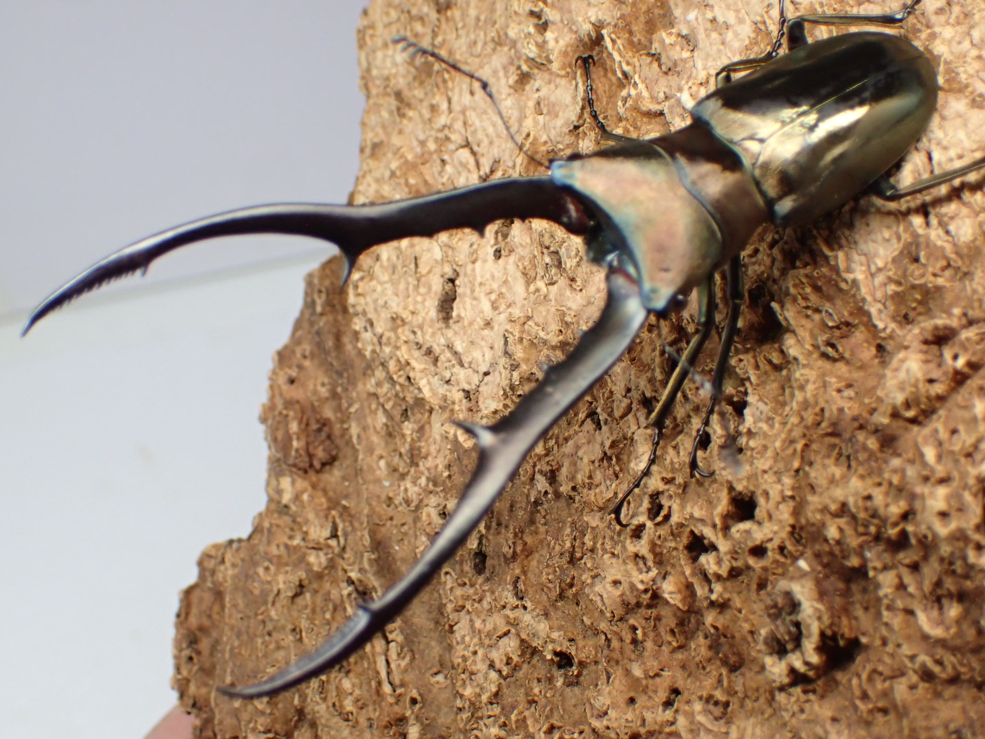 (大アゴが体より長くなる種類は世界のクワガタの中でもメタリフェルホソアカクワガタとコガシラクワガタの2種類のみと言われています。)