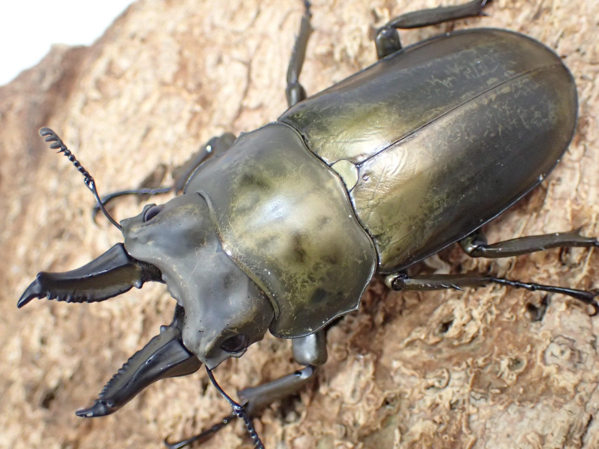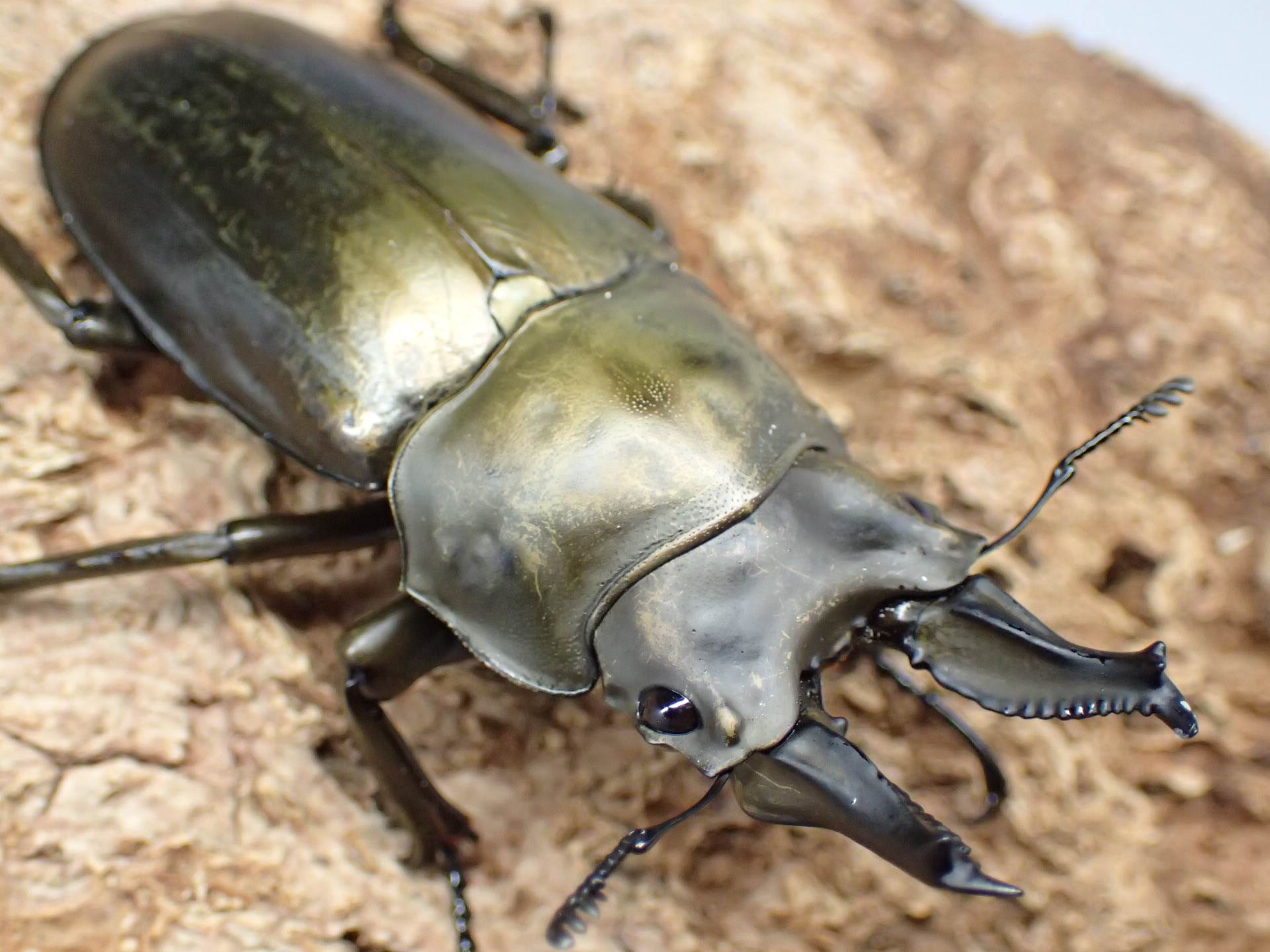 オウゴンオニクワガタの基準種で、名前の通り金色に輝く美しい姿をしています。