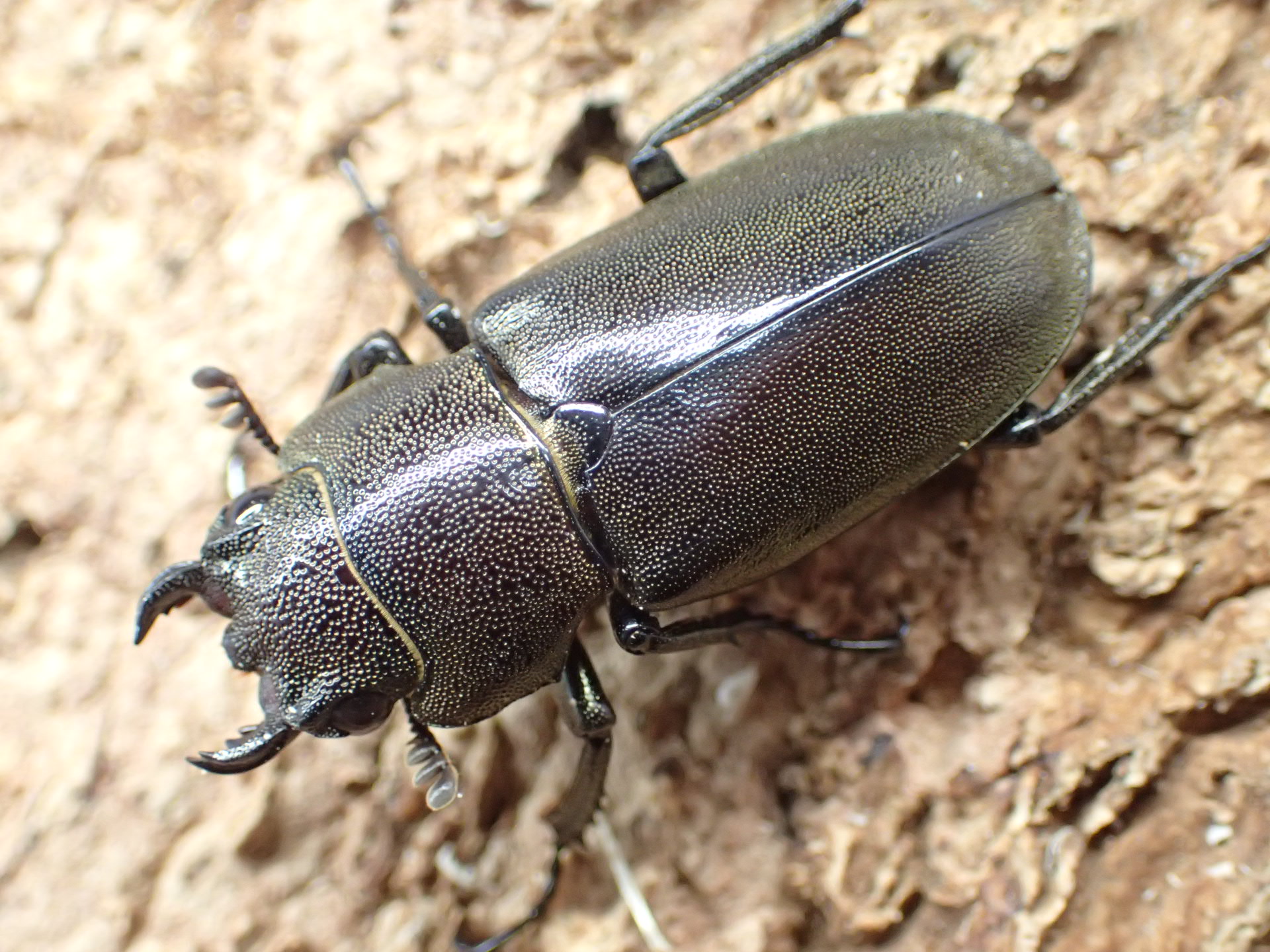 体は銅色で細長く、大アゴが極めて長く、体長を大きく上回る個体もいます。