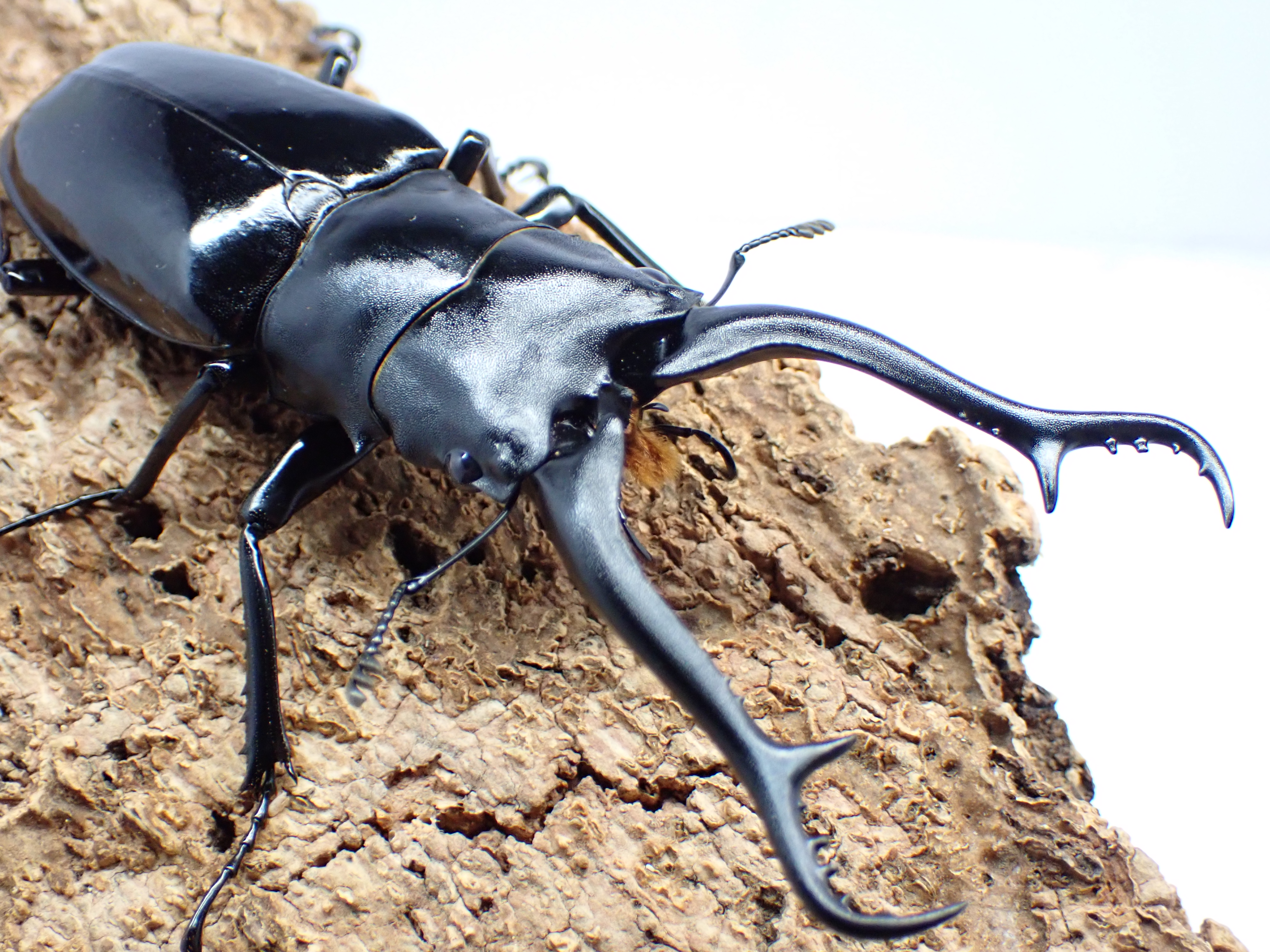 ギラファ(giraffa)とは「キリン(giraffe)」に由来し、長い大アゴが特徴的で、世界最大のクワガタとして知られる人気のノコギリクワガタです。