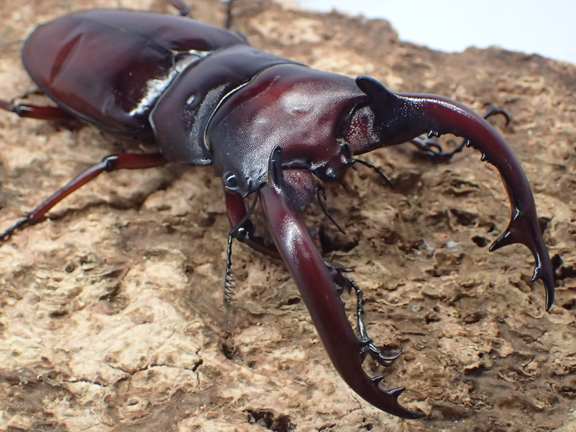 大型になると一層迫力が増し、人気の高いフタマタクワガタです。