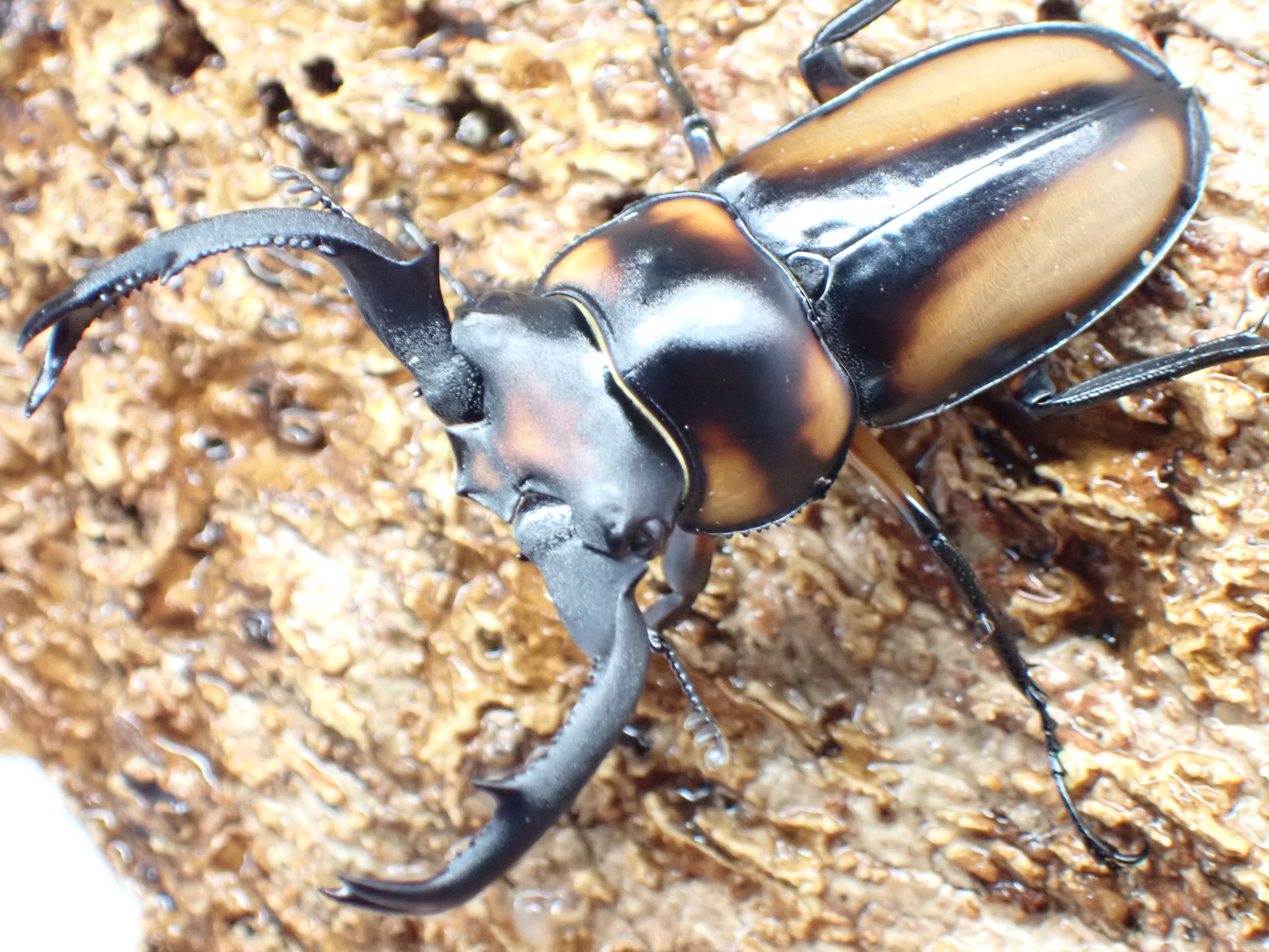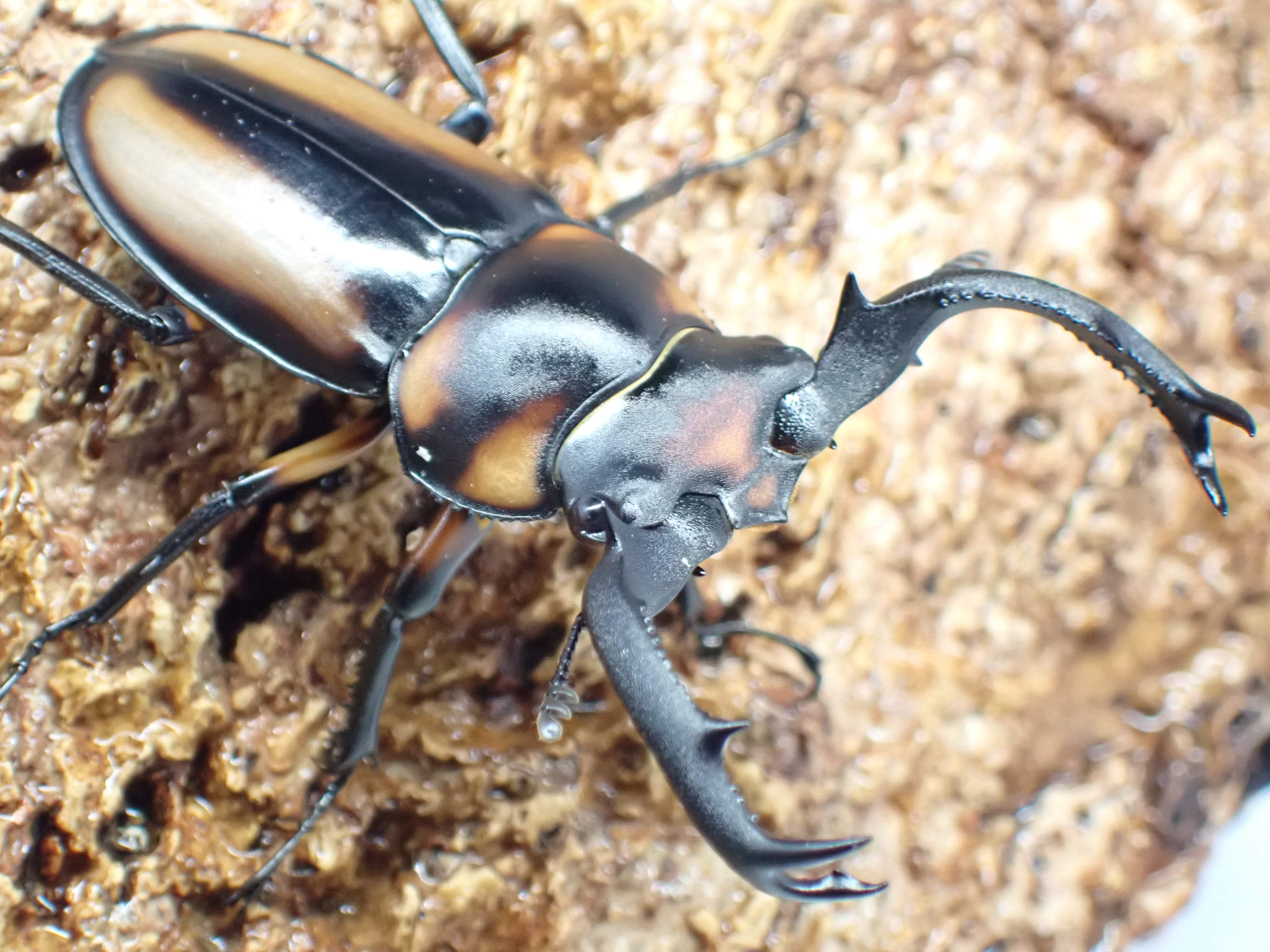 シカクワガタ(crenatus)の亜種の中で最も黄褐色の部分が多く、亜種名の「speciosus」(ラテン語で「美しい」という意味)の通り美麗なシカクワガタです。