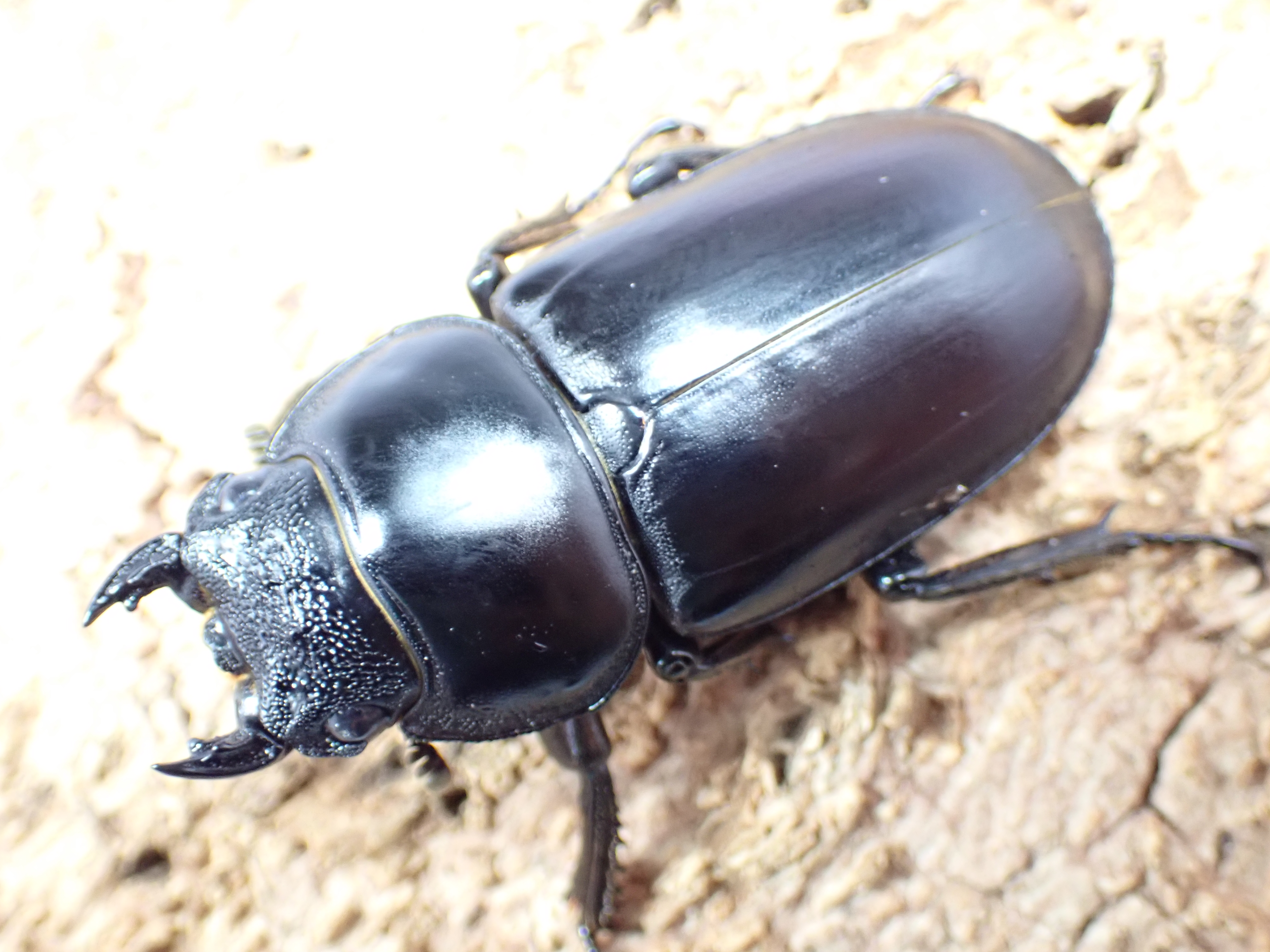 ミャンマー北東部、タイ北部、ラオス、ベトナム北部~中部、中国に分布する亜種miyashitaiは、原名亜種に比べ体と大アゴは太短く、光沢はややツヤ消し状で、大アゴ内歯がやや側方に向けて突出します。