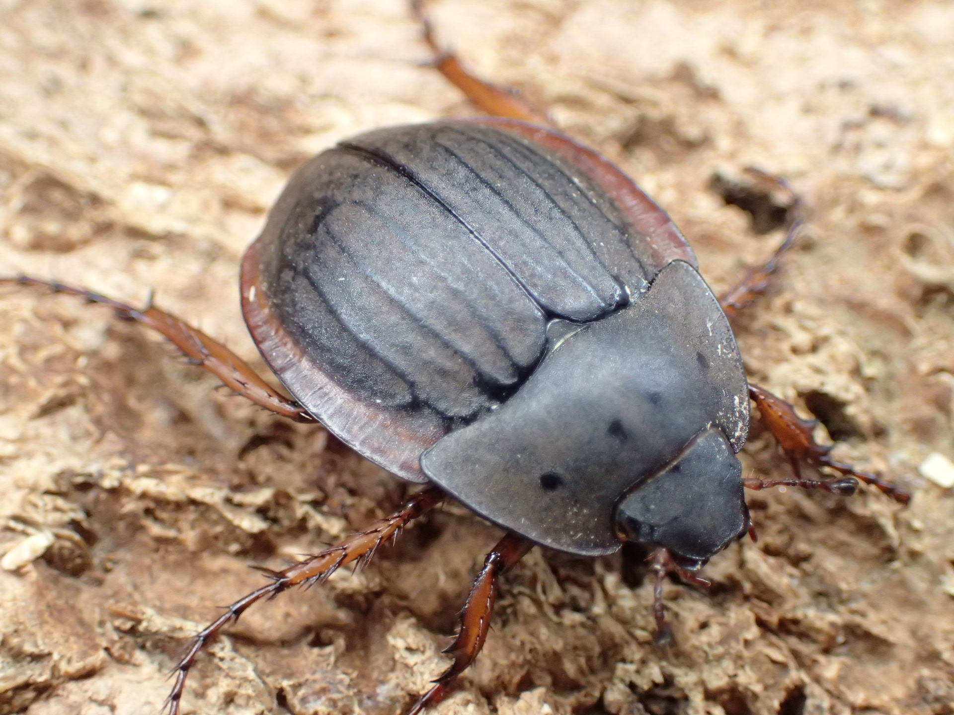 上翅の隆条と側縁の褐色紋が特徴的で、カブトムシらしからぬ姿をしています。