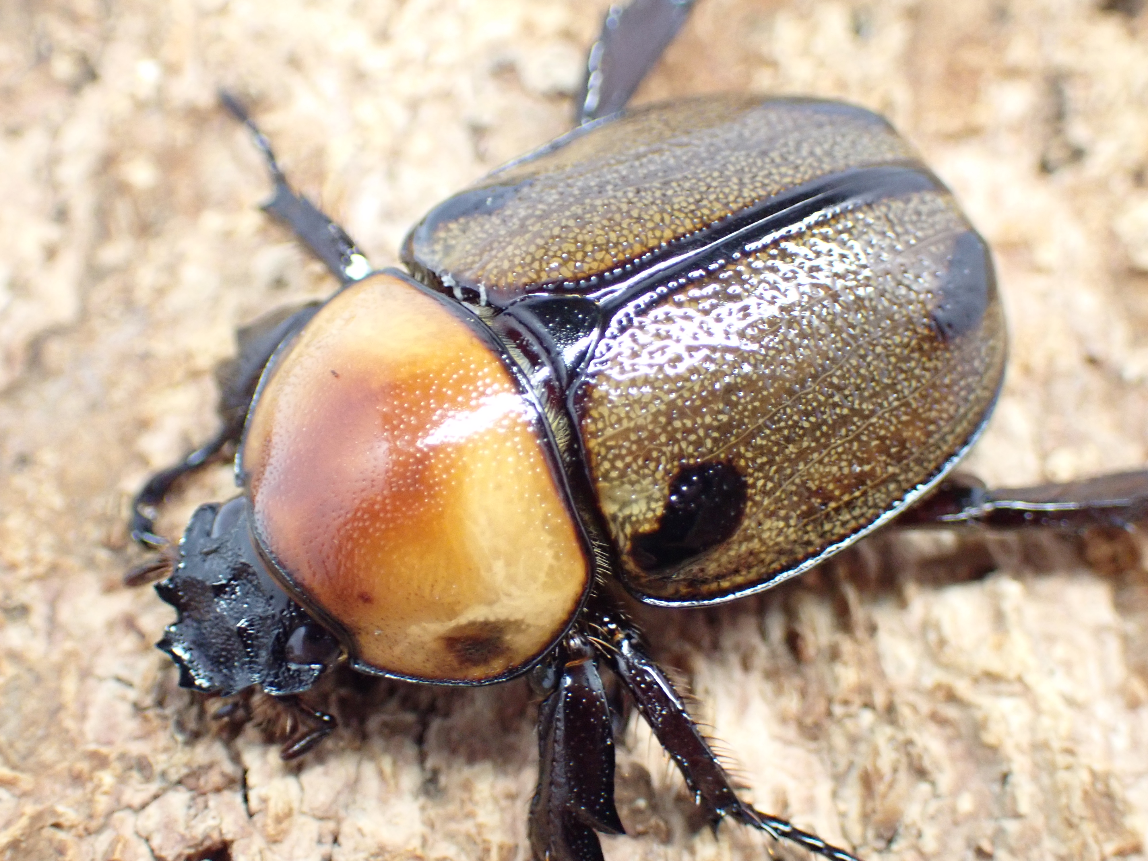 体は幅広く、前胸背は明るい褐色で、中央部に褐色の紋がでる個体や、メスでは前胸背の全体が黒化する個体もいます。