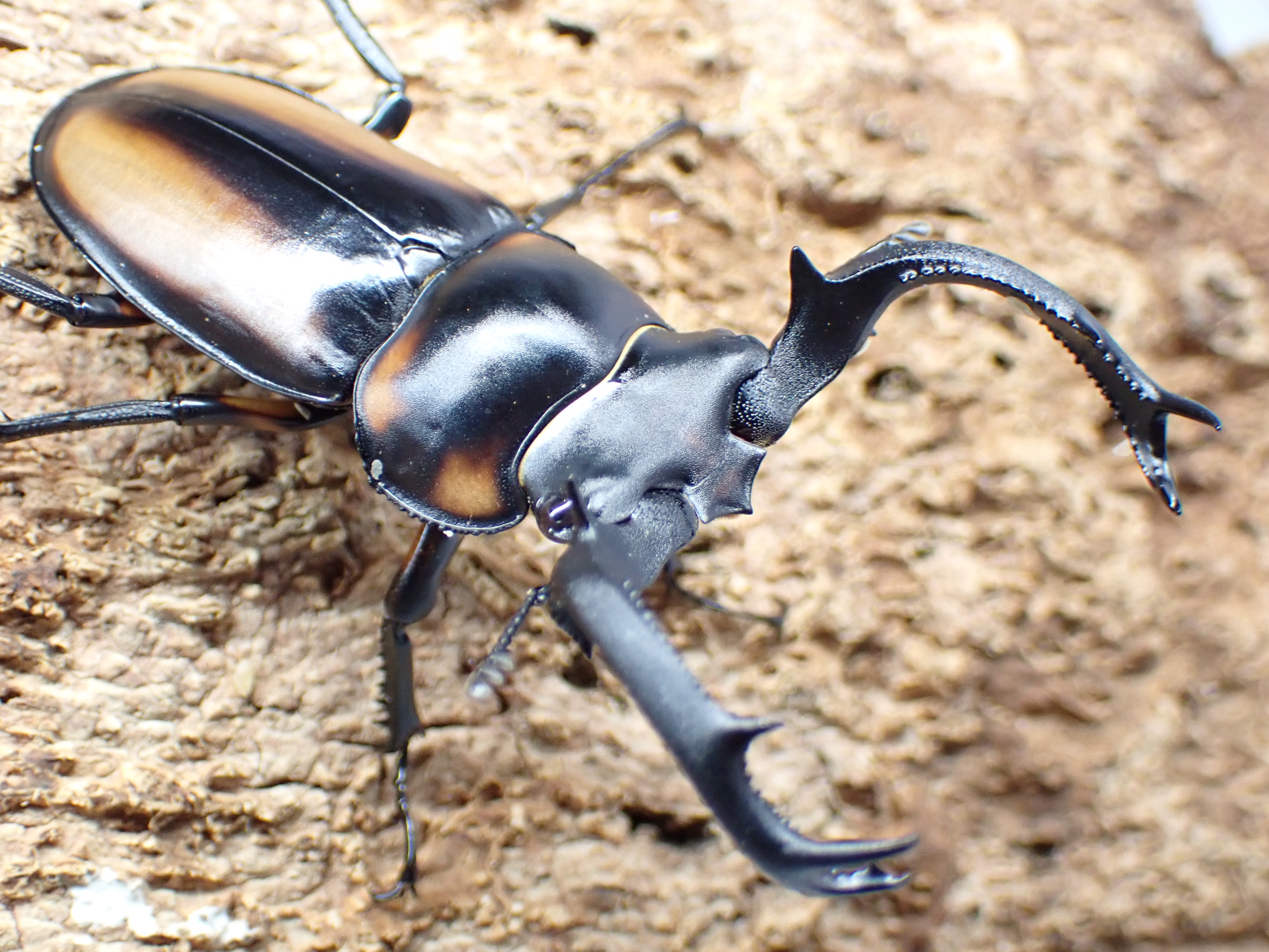 シカクワガタ(crenatus)の亜種の中で最も黄褐色の部分が多く、亜種名の「speciosus」(ラテン語で「美しい」という意味)の通り美麗なシカクワガタです。