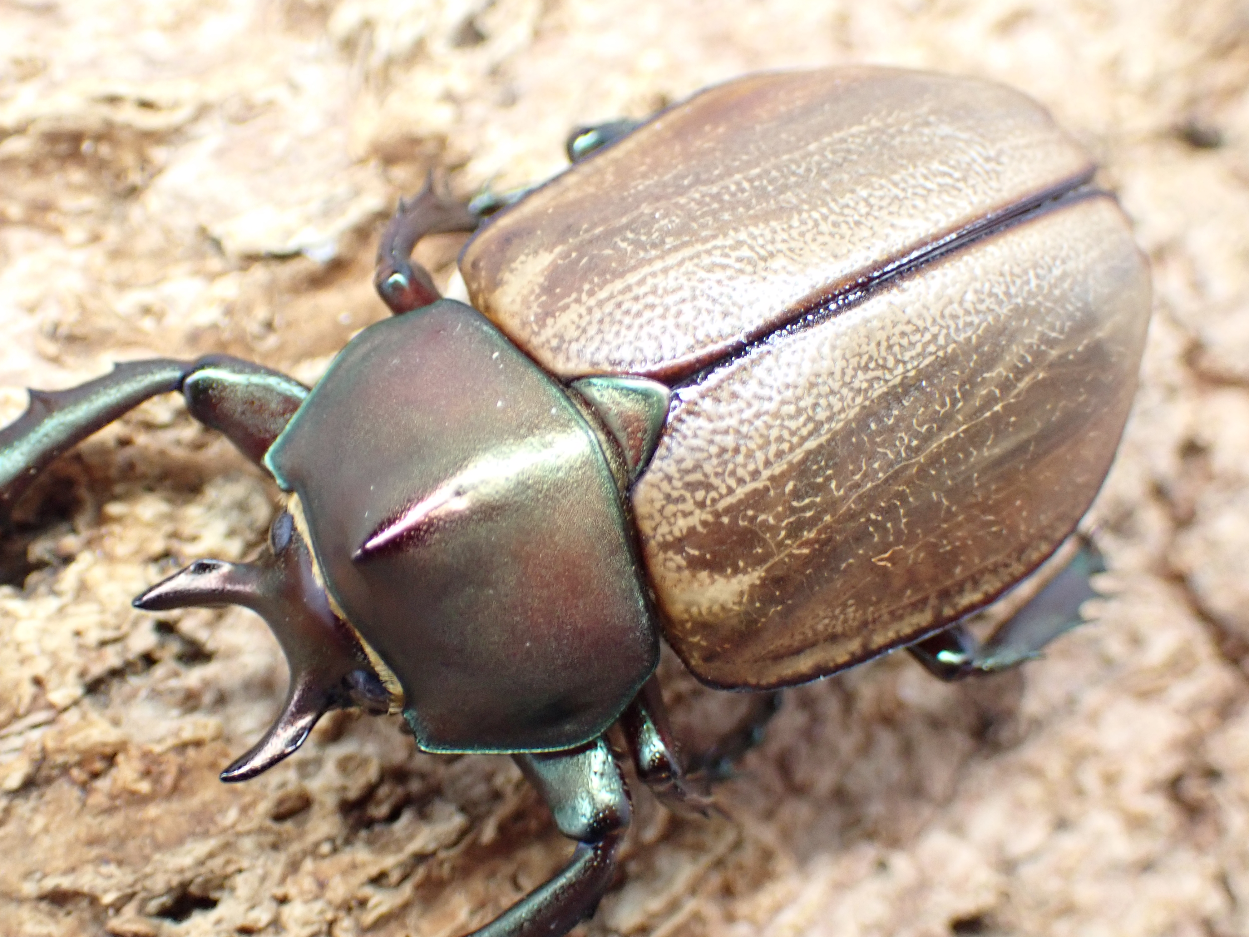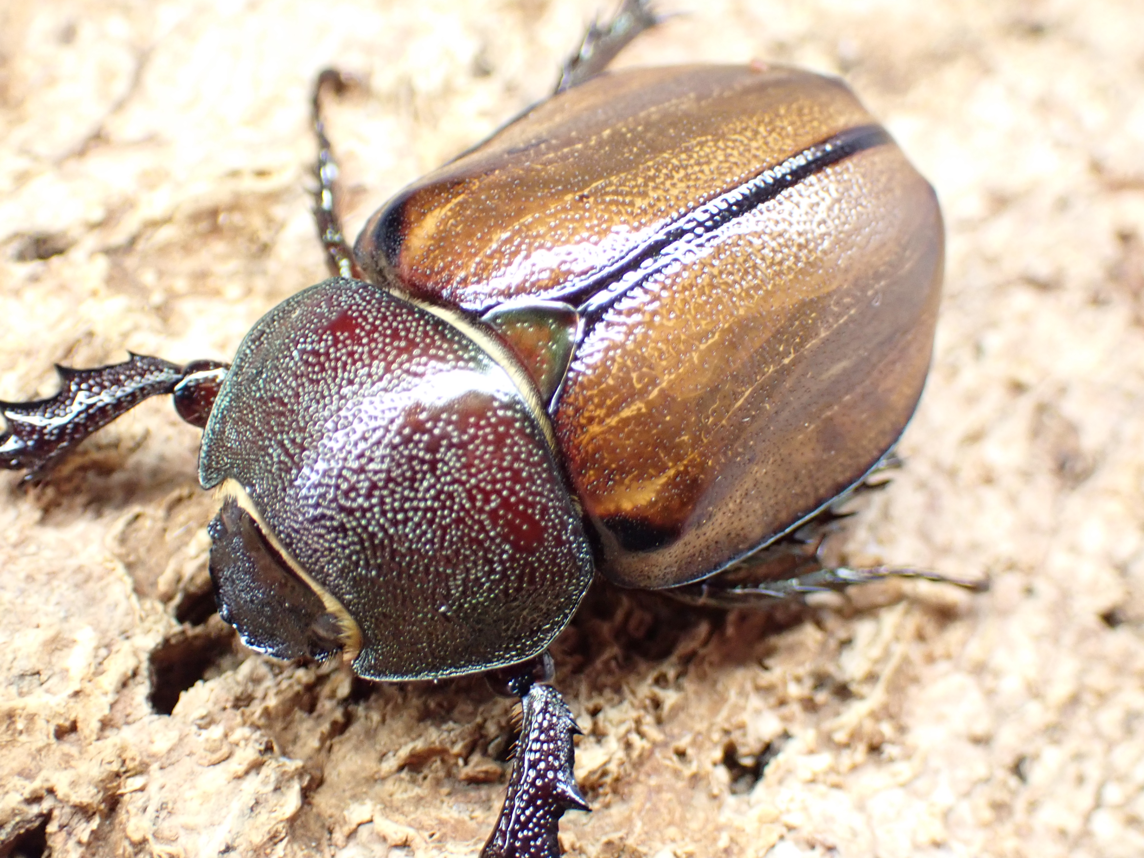 赤~緑色味をおびた金属光沢が美しいヒナカブトです。