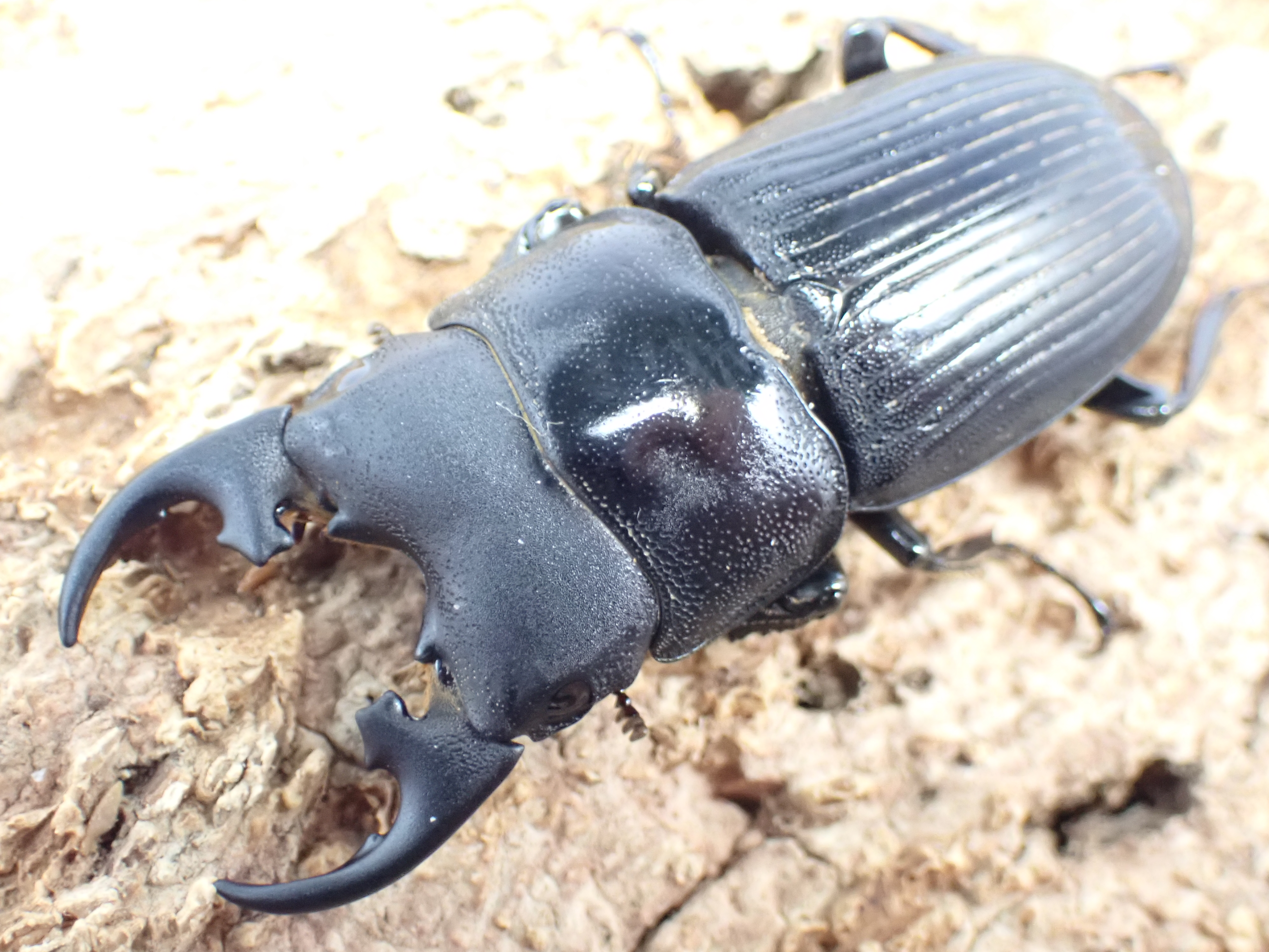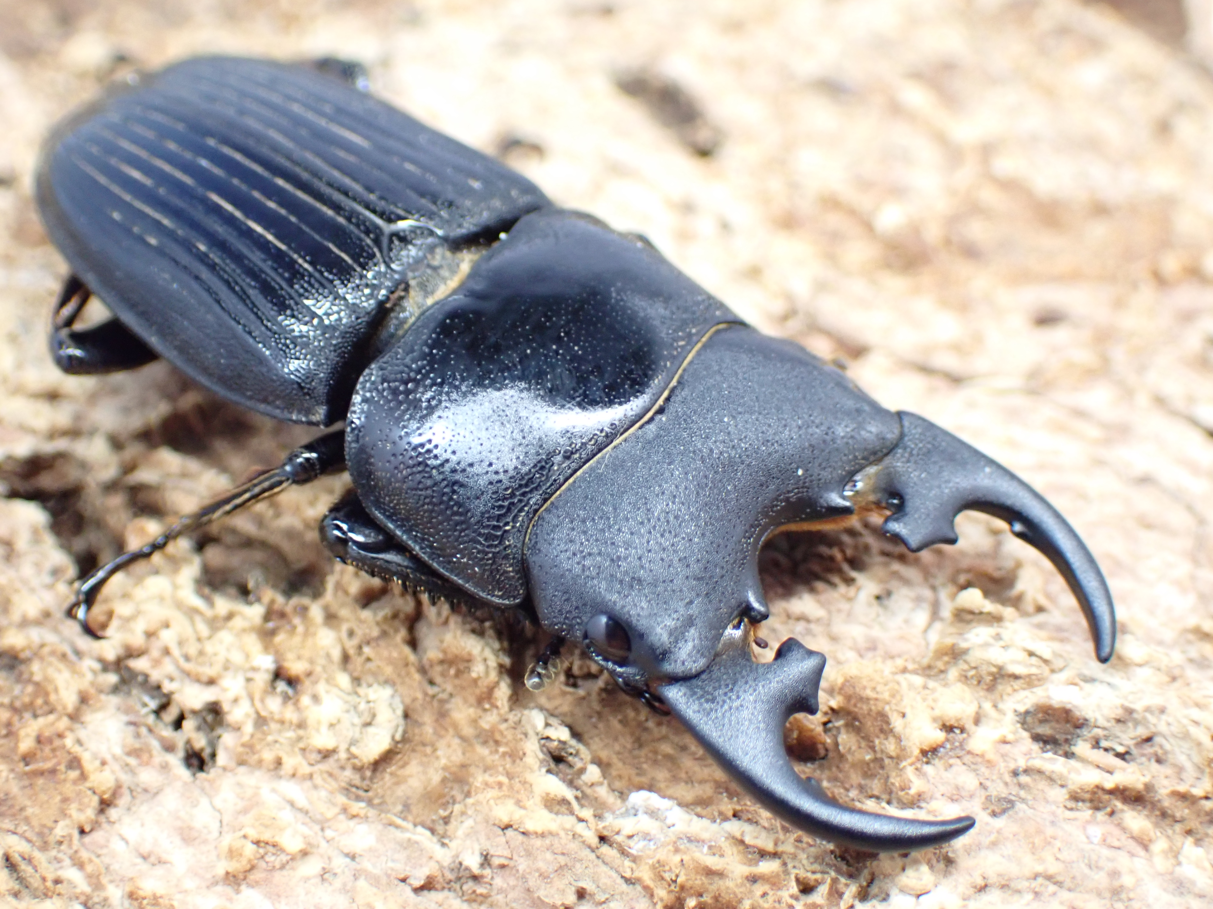 大型のネブトクワガタで、大アゴ基部にでる星形の内歯が斧状に見えることから「オノツキネブトクワガタ」という和名を持ちます。