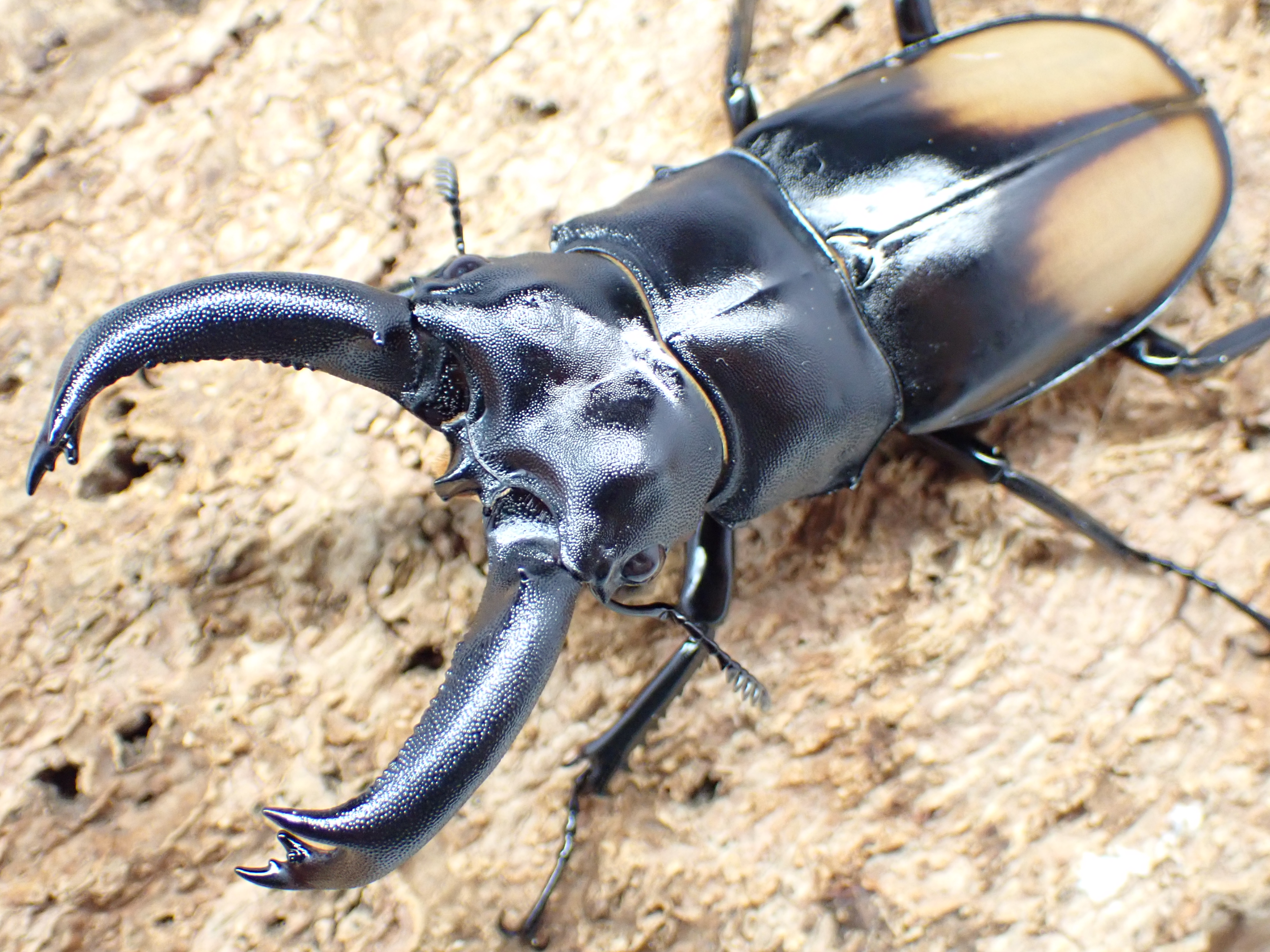 ミャンマー、タイ北部~西部、中国南西部、ラオス南部、カンボジア北東部に分布する亜種deyrolleiは大アゴが原名亜種より細長く、上翅は基部から1/3が黒褐色から黒色で、2/3が黄褐色になります。