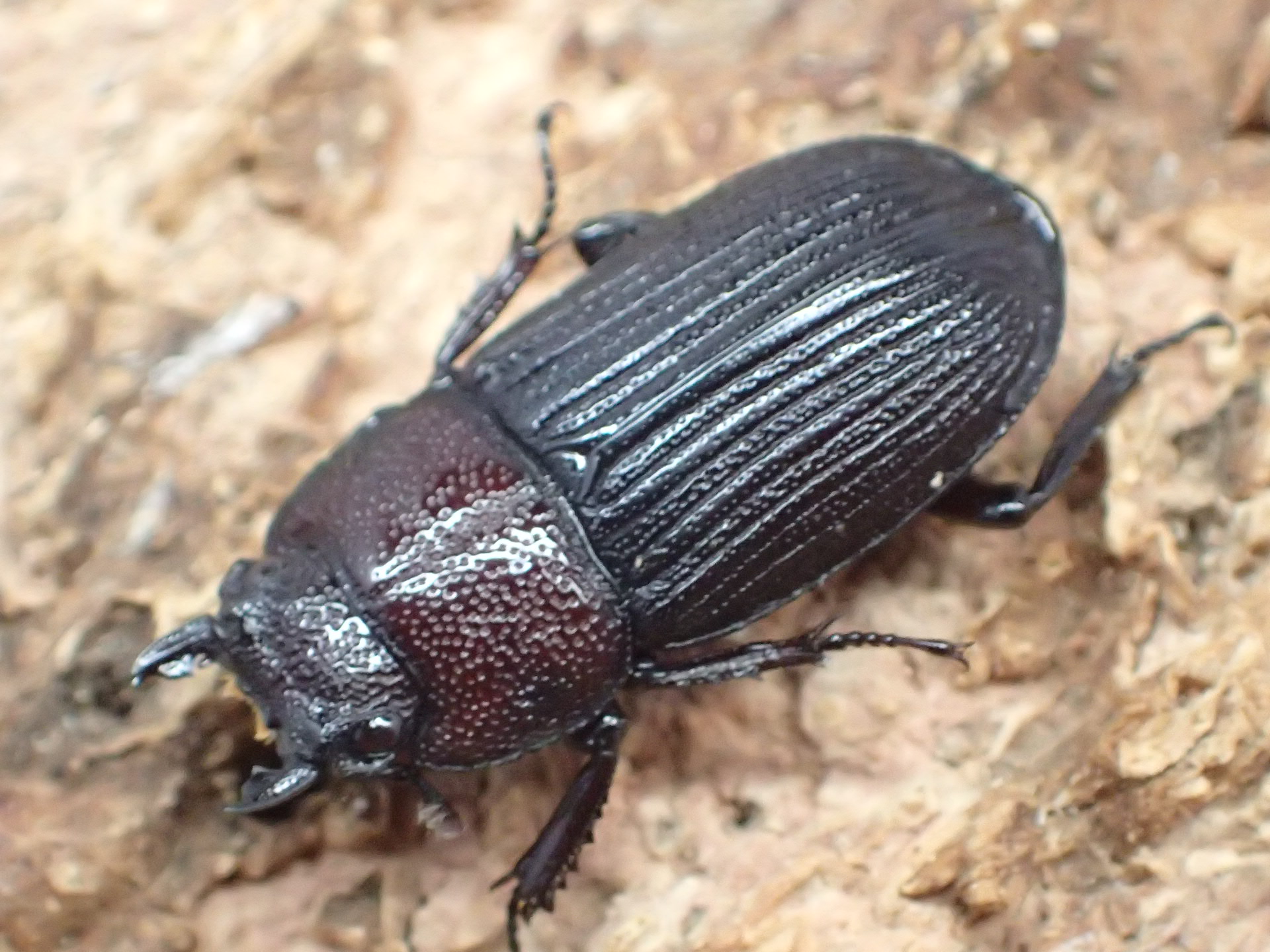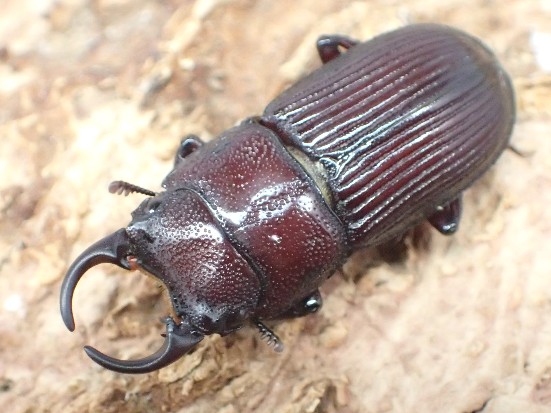 アマミネブトクワガタによく似ていますが軽微な差があり、特大個体では頭部の側方に尖った小さなコブ状突起があり、前胸背板中央部の点刻が大きくなります。